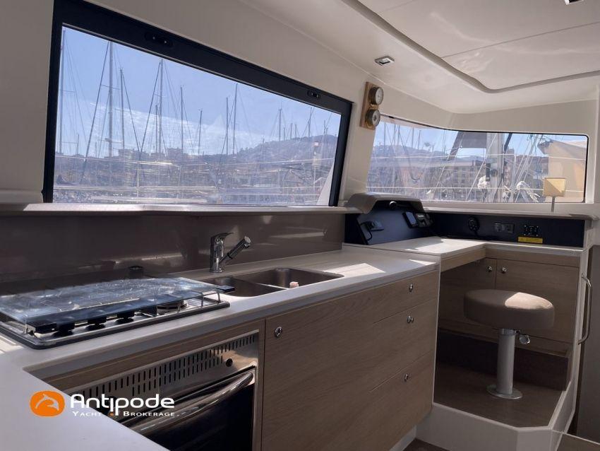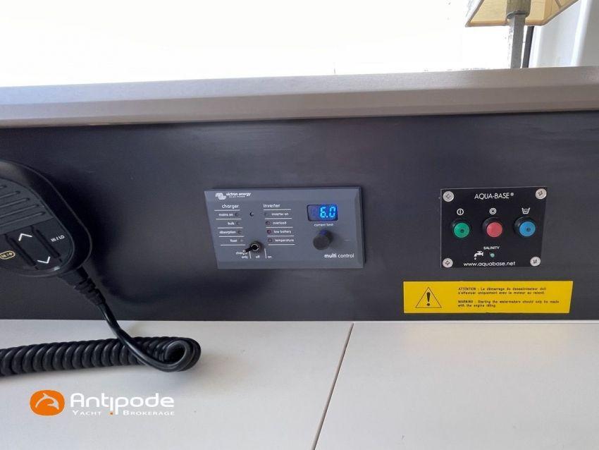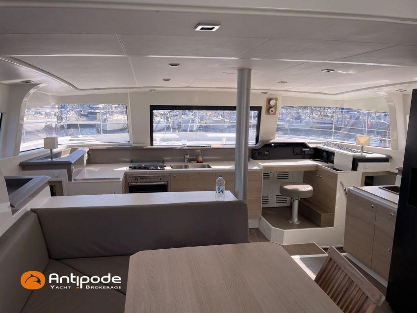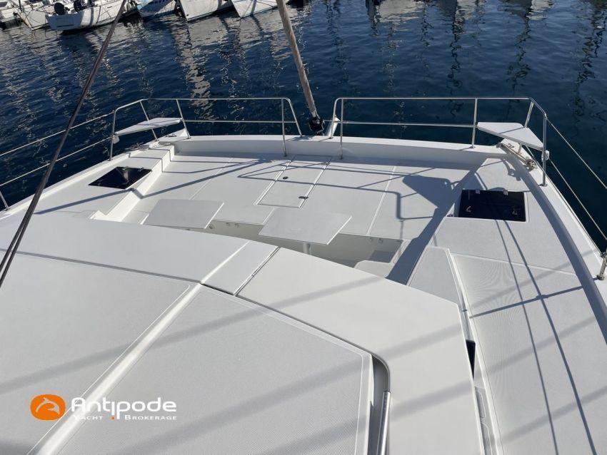 BALI 4.3, 2018, first hand, 2 X Volvo D2-60 F, 2 x 60 hp Version Excellence, Power aft cockpit opening door system, Separation sallon/ forward cockpit : Retractable window, Interior layout version 4 cabins, 3 heads (toilets + shower), Saloon table convertible in double bed, 1 electric manoeuvring winch, Cockpit extension with pivoting plateform, Davits for dinghy, Saloon and cockpit seats with storages, 2 forward cockpit removable tables, Plastic protection for aft transom hulls, 2 extra mooring cleats, Electric windlass - 1000 W, Flying bridge bimini top, Full enclosure for helmman station, Forward cockpit sun bathing mastresses, Flying bridge sun bathing mastresses, Full batten main sail - Dacron, Furling jib - Dacron, Raymarine in board autopilot - P 70 S, Navigation system - Raymarine Multi I 70 S, GPS and chartplotter (helmman station) - Raymarine AXIOM 7, Electronic navigation charts, VHF at chart table - Raymarine, FUSION sound system + 4 speakers, Distress beacon, Fridge unit and freezer (front opening door) - 615 l, Battery charger & Inverter - VICTRON 70 amp - 2000 W, 2 extra service batteries 110 amp, 5 X 12 v sockets, cabins and chart table, Battery controller, Watermaker 12 V - 60 l/ h AQUABASE, Electric toilets X 4 (fresh water), 6 cabins vents, Hot and cold cockpit shower, Sea water foot pump, Leds navigation lights, Courtesy lights forward cockpit, Liferaft 12 man, Dinghy - PLASTIMO 270 V, Outboard engine 5 hp, Located Mediterranean. Price VAT PAID. For more information or to make an appointment for a visit, contact : Jérôme Le Joubioux +33 6 07 45 71 73 - jerome@antipode-yachts.com