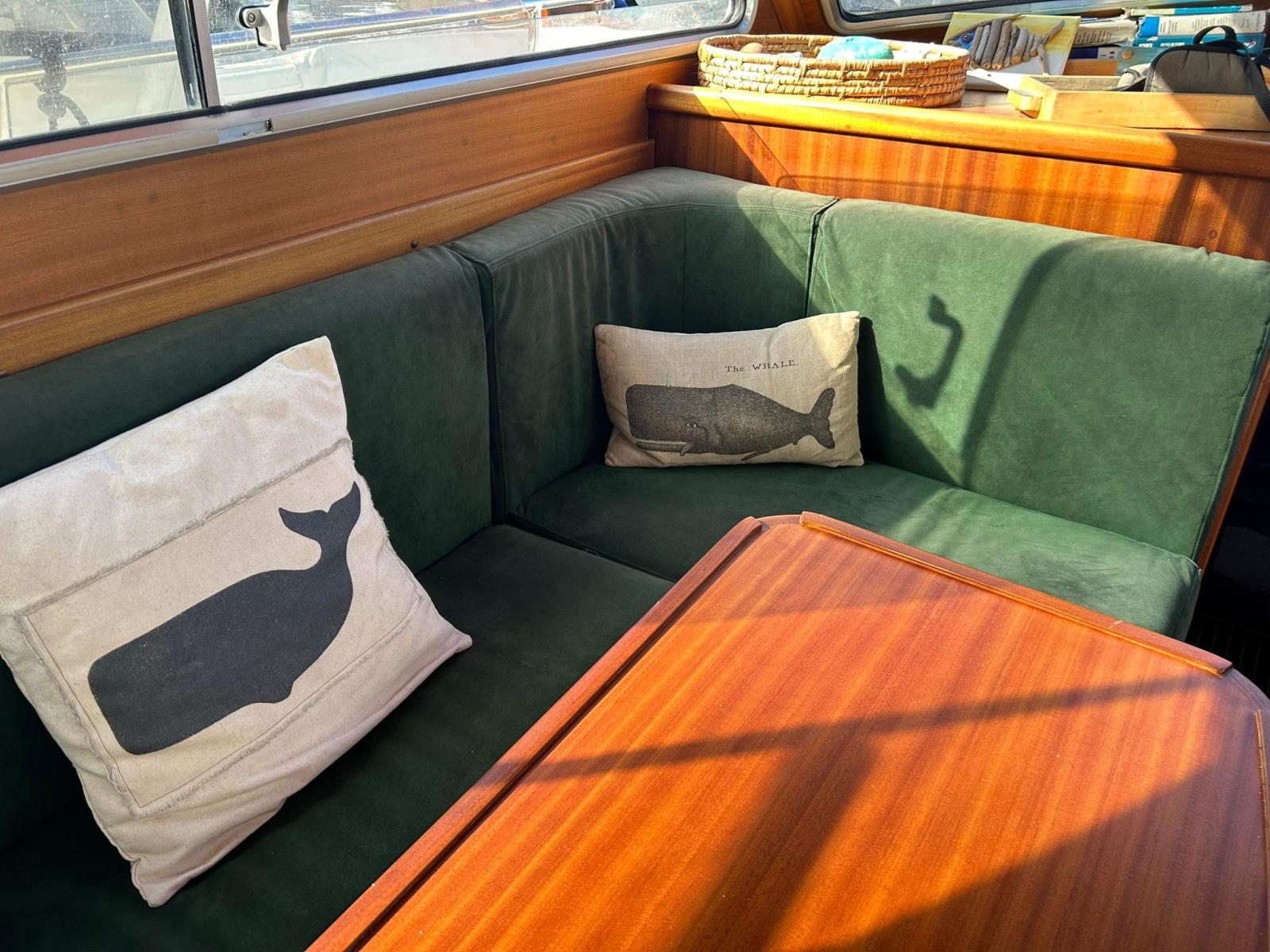 The Sciallino 34′ Cabin gozzo is a classic, stable, powerful and functional gozzo. The hull is built in hand-stratified P.R.F.V. fiberglass with structural stiffeners (bulkheads, spars and floorboards). The deck is made of hand-stratified sandwich P.R.F.V. fiberglass. The load-bearing bulkheads are structurally connected to the hull and deck. The interior fittings are in marine plywood "Okume" essence.