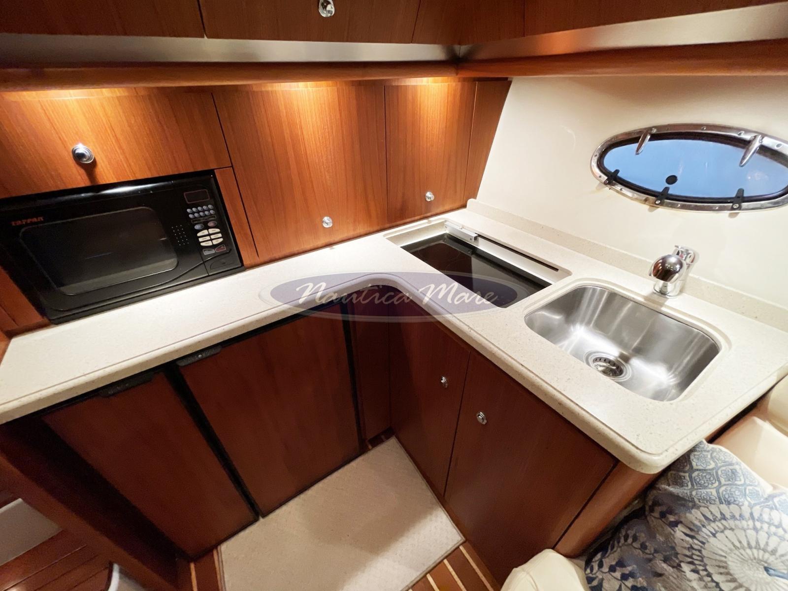 Fume/Gas Detector, Engine Alarm, Bilge Alarm, Electric Engine Compartment Opening, Water pressure pump, Draining System, Deck Shower, Headlights fixed on the stem, Hydraulic Flaps, Hard top, Fire Extinguishing System, Anchor Chain Washdown, Washbasin in the cockpit, Courtesy Lights, Gangway (carbonio manuale), Platform, Automatic Bilge Pump, Shorepower connector (con avvolgicavo elettrico), Water harbor connector system, Rollbar, Electric Windlass, swimming ladder, cockpit table, Living Room Foldable Table, Tender (2,65 mt. chiglia gonfiabile + Mercury 3,5 hp), Horn, Bow Winches.