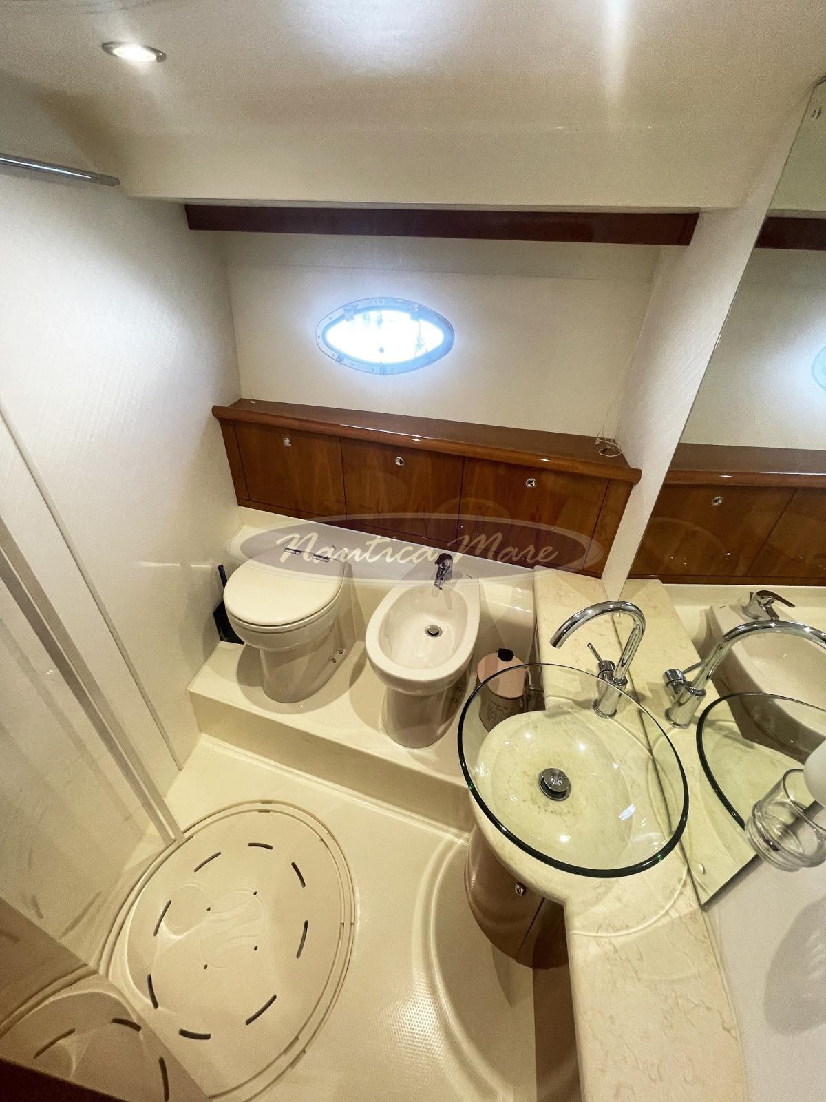 Warm Water, Air Conditioning (in ogni locale), BBQ/Grill (sul fly), Warm Water System, Inverter Air Conditioning (in ogni ambiente), Waste Water Plant, Fuel Tank Indicator, Water Tank Meter, Waste Water Tank Meter, Engine oil pressure gauge, Engine temperature gauge, Interior wooden floor, 12V Outlets, 220V Outlets, Black Water Tank, Water System (imbarco acqua da banchina), Voltmeter, 2 Electric Toilet (con bidet e doccia separata).