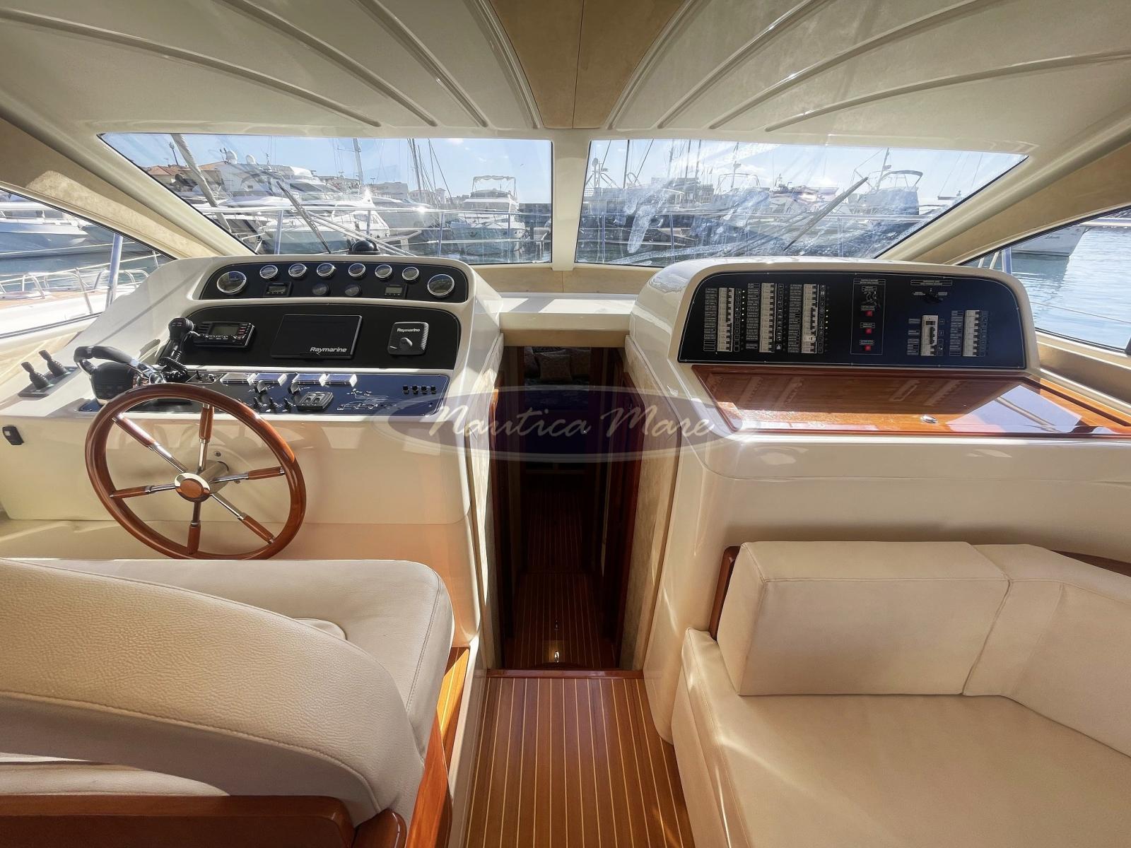 Rudder angle indicator, Radar Antenna, Electronic engine control, On-Board Computer, Chain counter (MZ Electronic), DSC vhf, Depth Sounder (Raymarine), GPS (Raymarine Axiom 12 + Axiom 9), Autopilot (Raymarine), Plotter with GPS antenna, Radar (Raymarine 48 nm), VHF Radio (fisso Standard Horizon), Co-pilot seat, Engine Measuring Instruments.