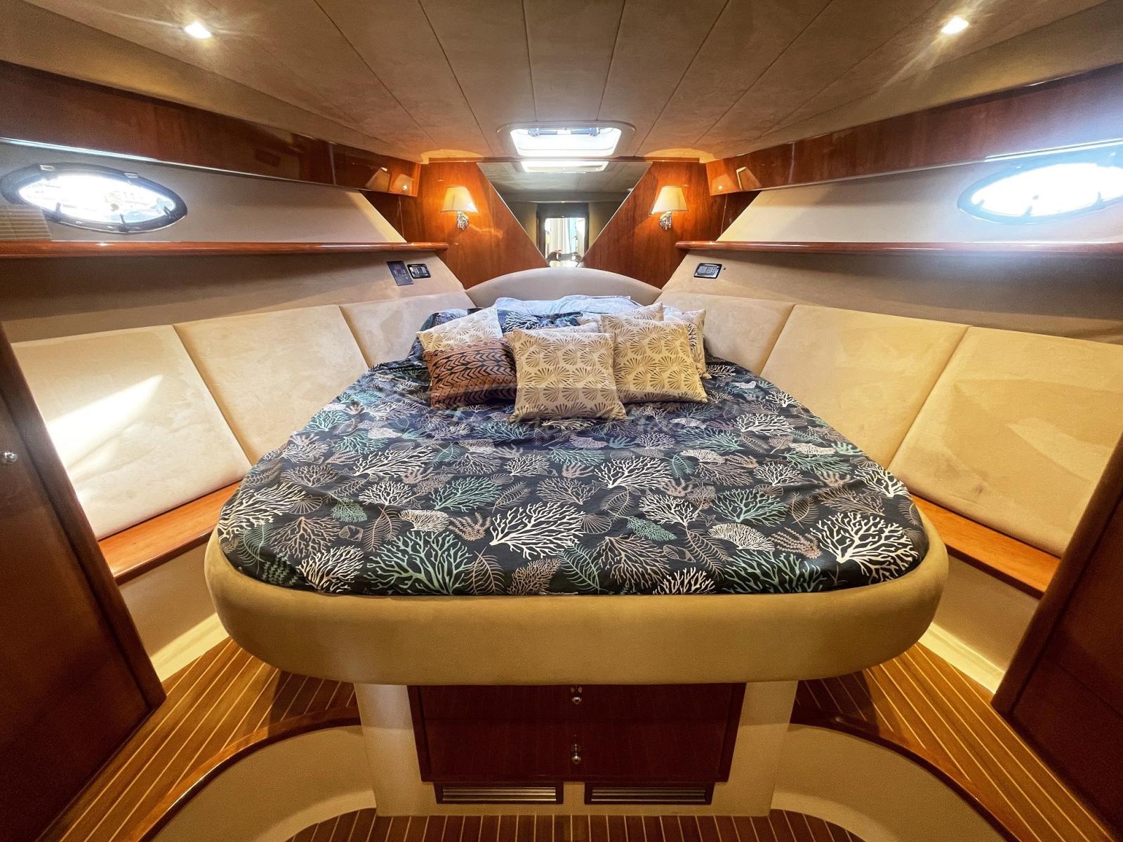 Cushions, Stern Cushions, Bow Cushions (ampio prendisole), Fly Bridge Cuscions (ampio prendisole e divano), Cockpit Cushions, Mattresses (nei letti delle cabine), Blackout Curtains, Window Cover, Instrument Cover (sul fly), Seat Cover (sul fly), 2 Sunshade (doppio parasole sul fly), Curtains (interne).