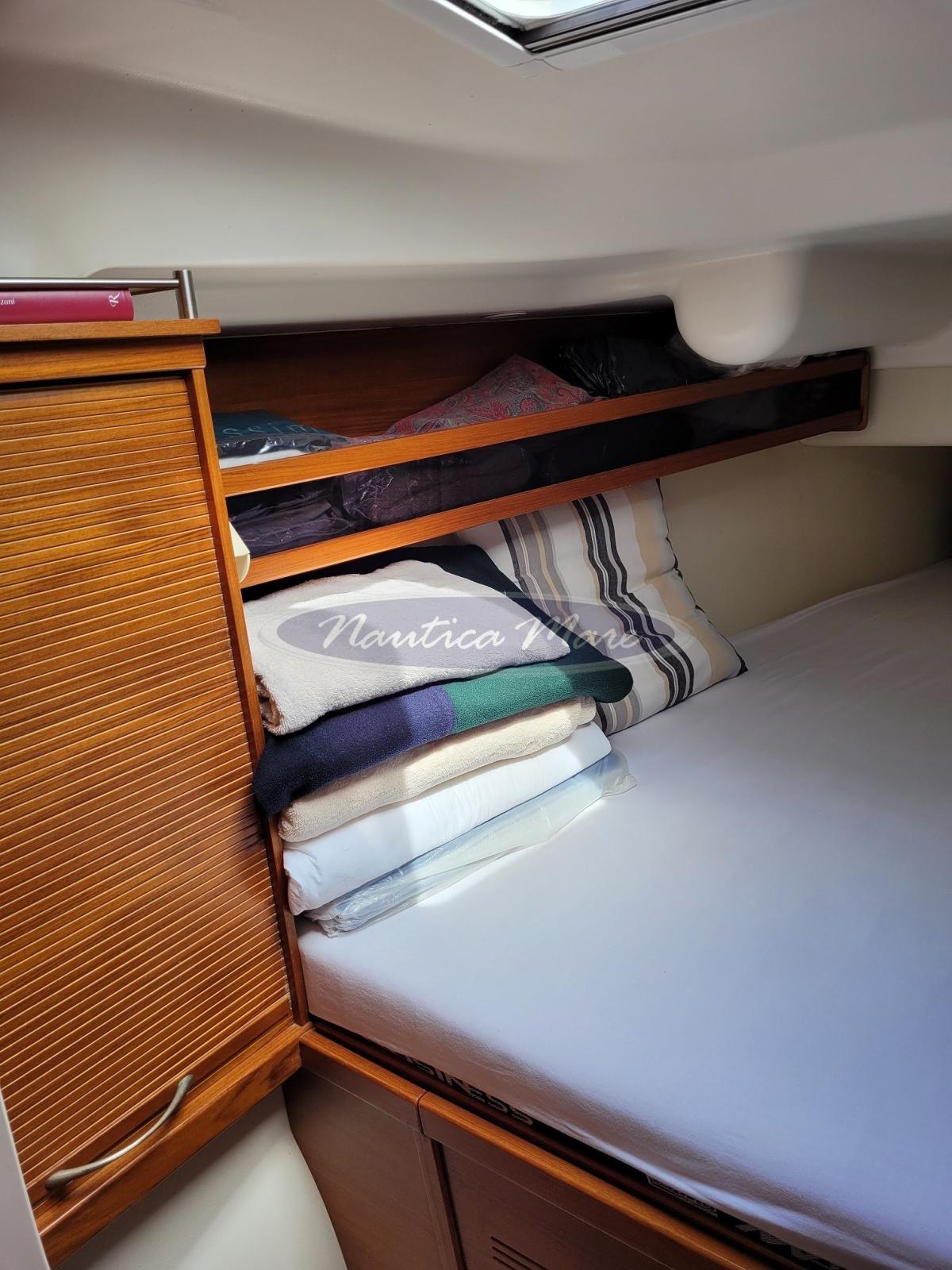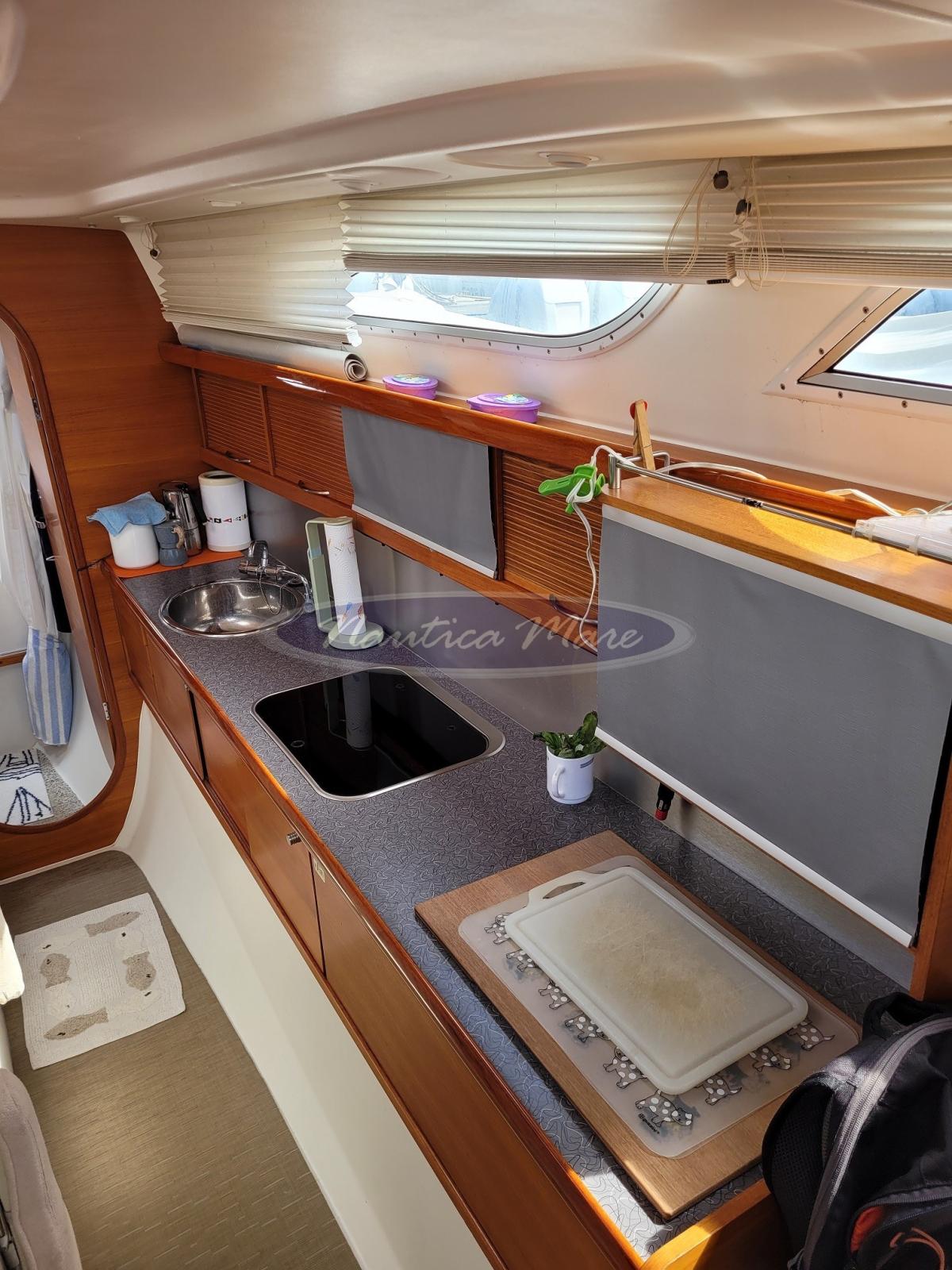 2 Anchor (Spade 7 kg. in alluminio con 13 kg. di catena da 8 mm. calibrata e 37 mt. di cima. Grappino Malingri inox smontabile 12 kg), Water pressure pump, 4 Batteries (70 Ah AGM), Battery charger (Mastervolt), Deck Shower, Bow Thruster (4 kW a scomparsa), Outboard engine for tender (2,5 hp), 3 Solar panels (Solbian 2 x 100 W + 1 x 56 W con regolatore), Shorepower connector, Electric Windlass (Quick 1000 W), Strand rigging (in Dyform originale (sostituito strallo di prua)), swimming ladder, Tender (con motore fuoribordo Honda 2,5 hp), 4 Winch (2 Andersen da 36 self tailing per fiocco, 2 per trasto randa da 30 self tailing), Winch Electric (Andersen da 46).