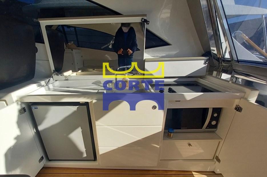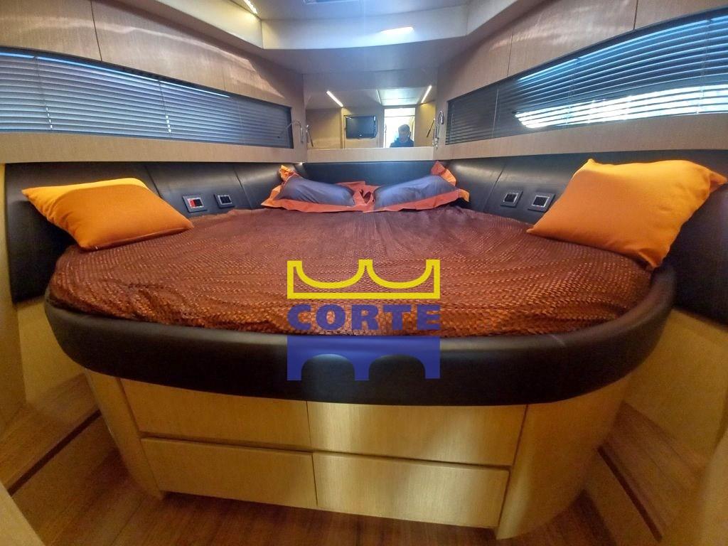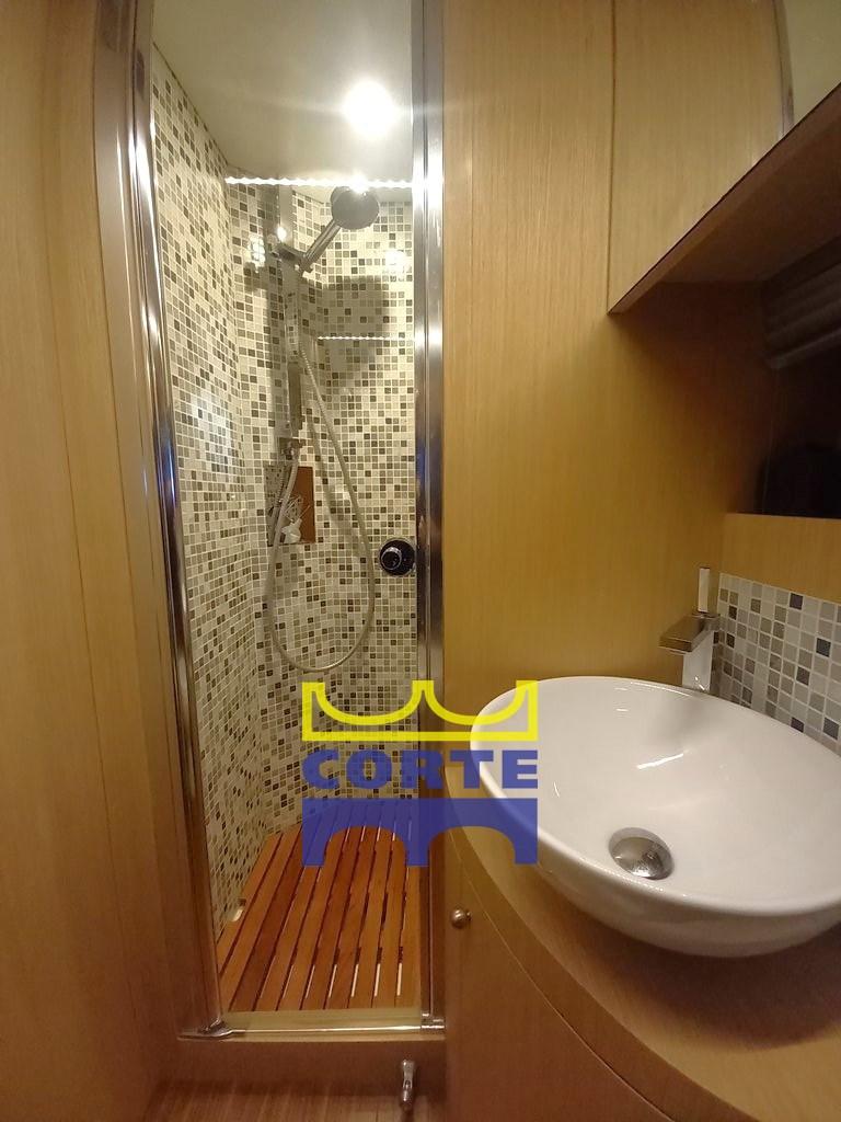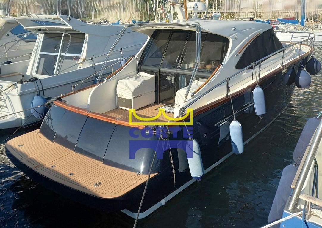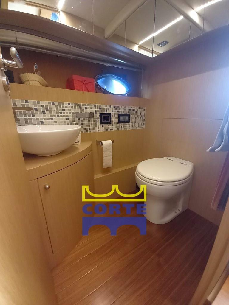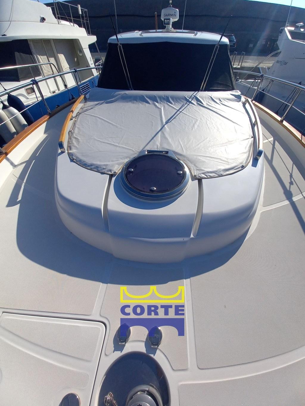 Engine Alarm, Bilge Alarm, Water pressure pump, Deck Shower, Directional Spotlight, Hydraulic Flaps, Hard top, Fire Extinguishing System, Gangway (elettroidraulica a scomparsa), Platform (ampia in teak), Automatic Bilge Pump, Entry door, Teak Cockpit, Shorepower connector, Water harbor connector system, Electric Windlass, swimming ladder, Living Room Foldable Table (lift), Horn, Bow Winches.