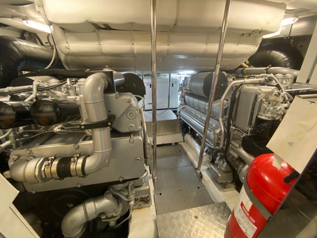 Engine Alarm, Bilge Alarm, Alternator, Water pressure pump, 8 Batteries, Teak Side Decks, Deck Shower, Hydraulic Flaps, Tender Garage, Fire Extinguishing System, Flaps Indicators, Courtesy Lights, Underwater lights, Fenders, Gangway, Platform, Automatic Bilge Pump, Manual Bilge Pump, Teak deck, Entry door, Teak Cockpit, Shorepower connector, Water harbor connector system, Hydraulic Windlass, swimming ladder, 2 Stabilizers (SEAKEEPER), Tender, Horn, Stern Winches, Bow Winches.
