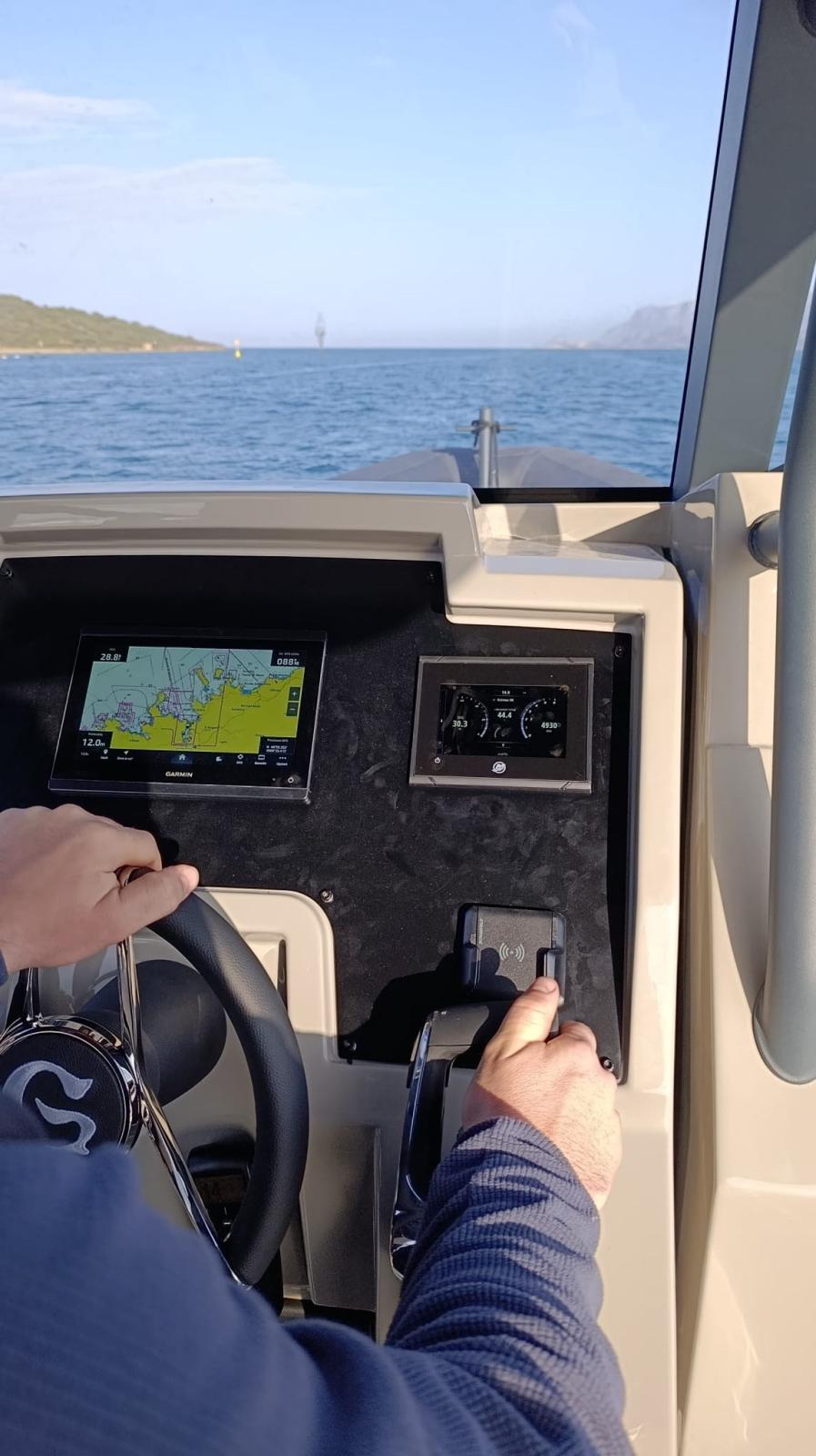 The boat is configured almost fully optional and offers everything you need to spend a pleasant day at sea. Among the equipment we find the electric windlass, the refrigerator integrated in the cockpit and the non-slip bands on the tubes, designed to increase safety and prevent slipping during boarding or movement on board.