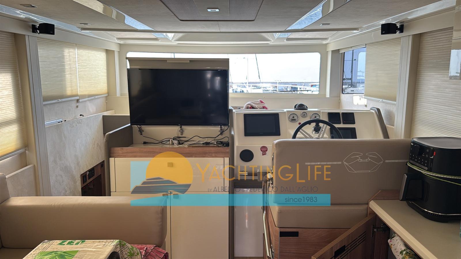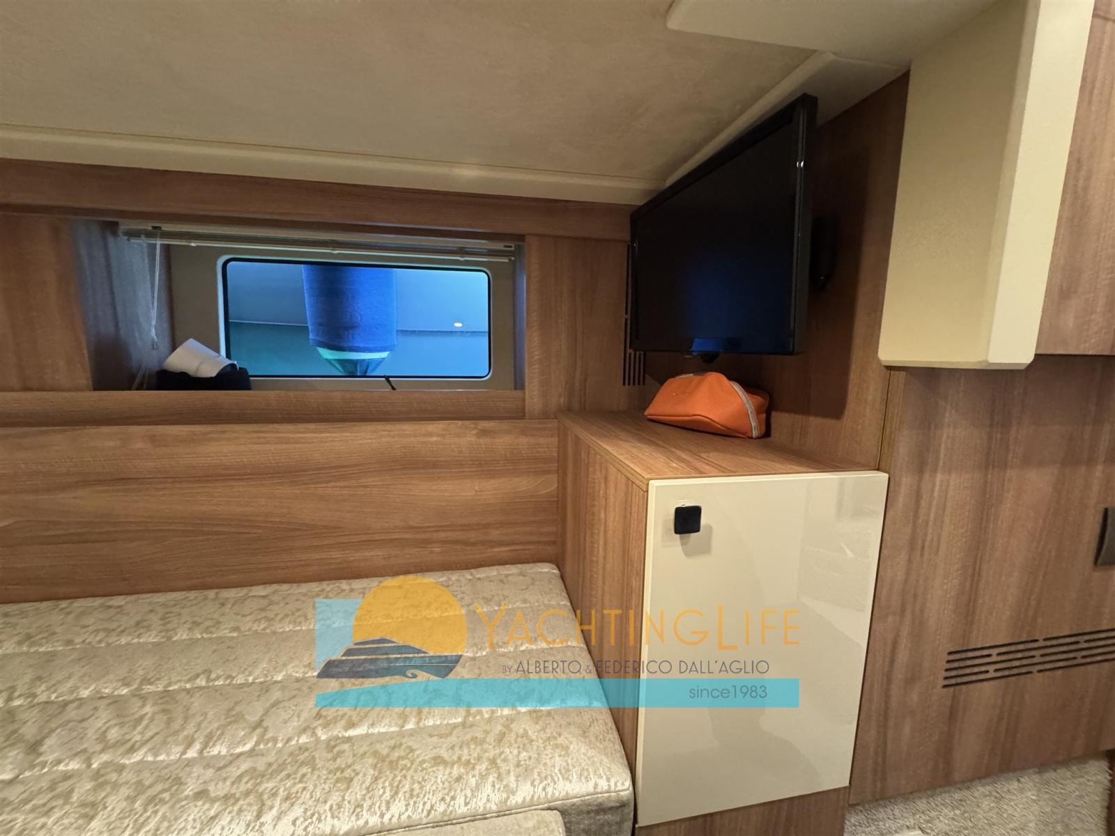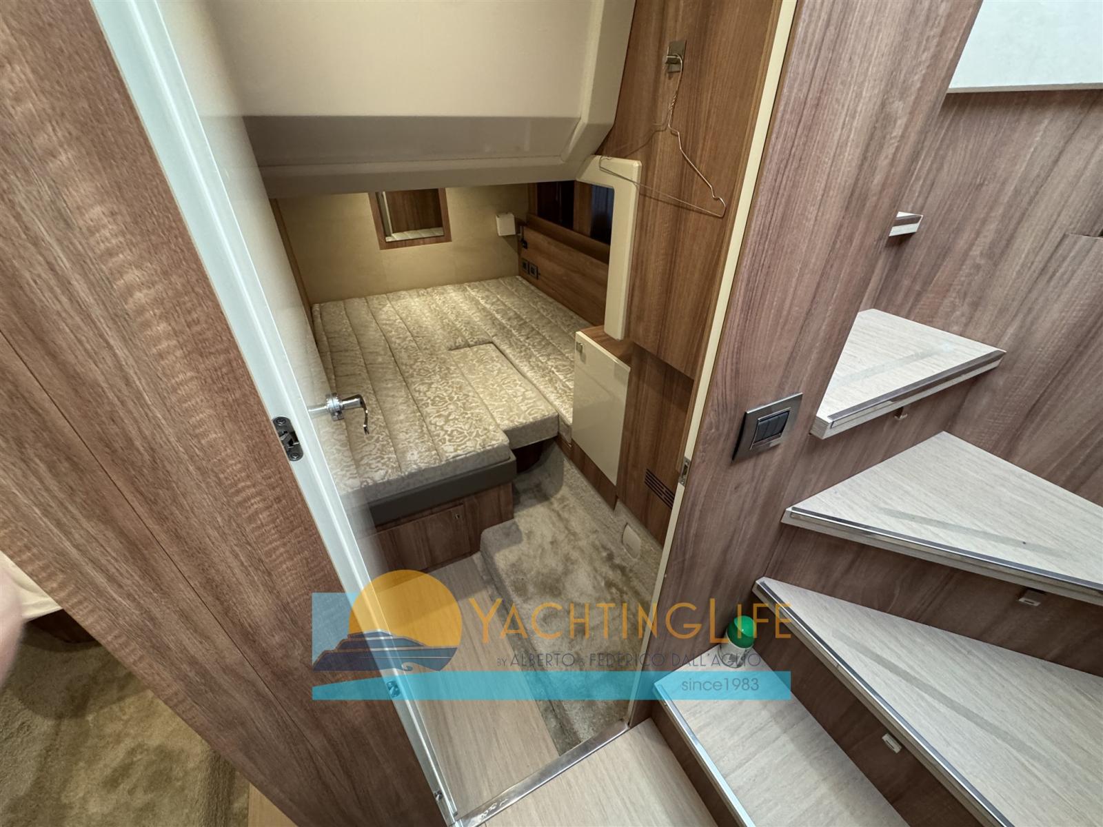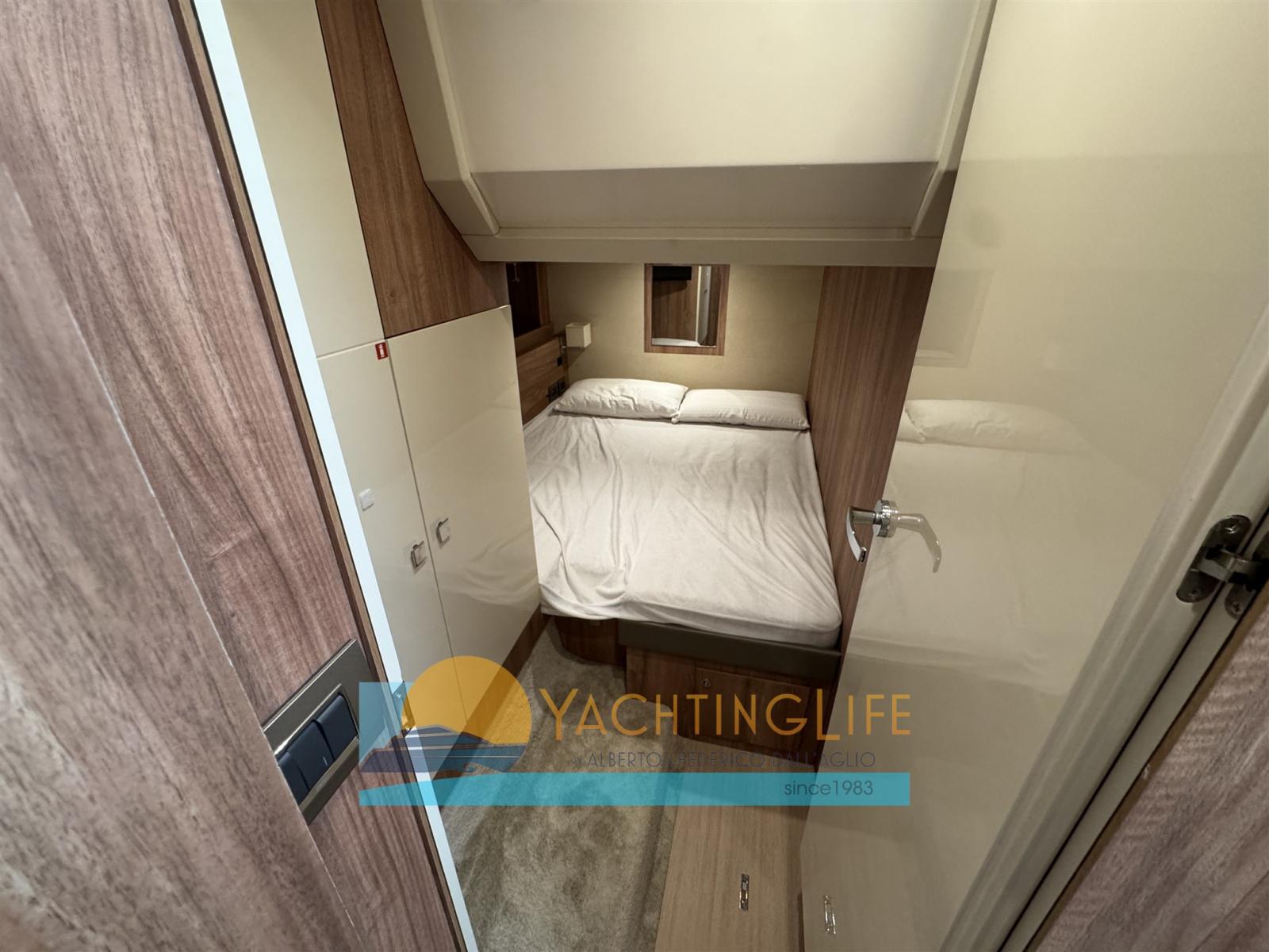 Leasing in progress, expiring 2030, instalment of € 2800 including reduced VAT - Launched and registered 2020 - Garmin electronics - Glossy lacquered interior furniture - Backlit stainless steel crab aft - Cranchi set, crockery, cutlery, glasses for six people - Fender covers - Sunbathing cushions with covers - Radio, bluetooth/USB, owner's cabin; 2x 24" TV guest cabins; 32" TV plus DVD player and home theater in the saloon - Safe - Genuine leather interior sofas - Interior furnishings in warm colors - Engine and stern cameras - Bow lights and underwater lights Solar panels for recharging batteries 20Amp-400w - Tender lift platform - Humphree trim corrector - 30 meters extra calibrated chain - Stainless steel poles and bow shading - 12 volt USB mobile phone charging in all rooms - Cabinet and fly washing machine - Split input for shore power for air conditioning - Inverter 2 kw in direct current pure wave - Split input for current for inverter - Split input for water for air conditioning - Additional service battery - Modified fly table (divided into 2) with electric leg - Shade cloth for fly sun bed - Ultraanchor anchor - Stainless steel protections in all bollards to avoid scratches due to the ropes - Garmin anti-collision front-vu sonar - Antifouling film - Parallel in the room Machines between battery generator and battery services -
