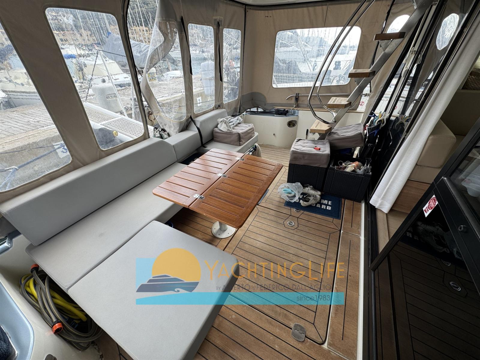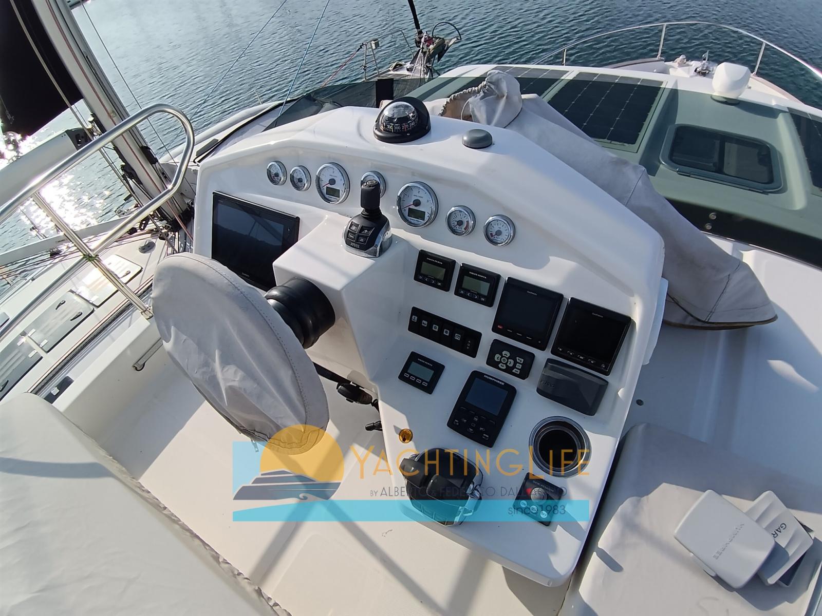 Engine Alarm, Auto Dynamic Trim Interceptor, Water pressure pump, Deck Shower, Twin Steering, Hydraulic Flaps, Fire Extinguishing System, Flaps Indicators, Courtesy Lights, Underwater lights, Solar panels (per ricarica batterie 20Amp-400w), Gangway (idraulica), Platform (idraulica), Automatic Bilge Pump, Manual Bilge Pump, Entry door, Teak Cockpit, Shorepower connector, Electric Windlass, swimming ladder, cockpit table, Horn.