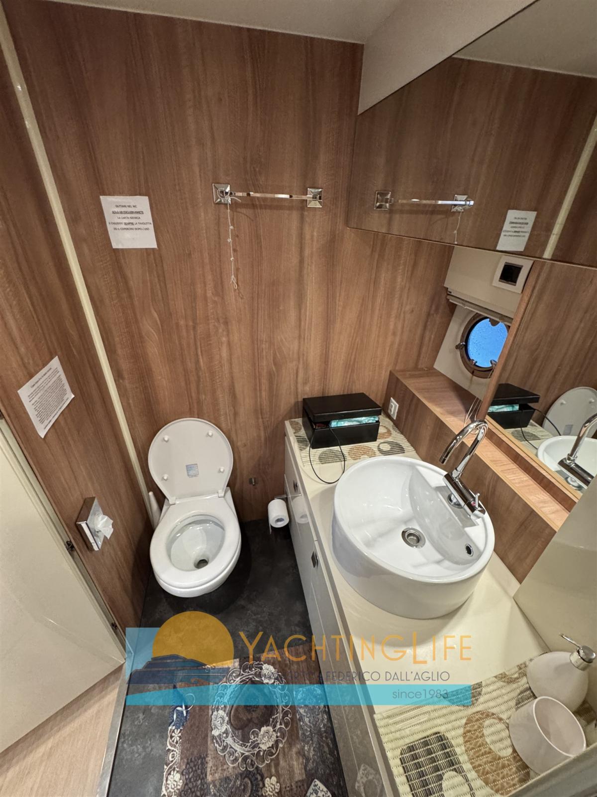 Air Conditioning (48000 BTU), BBQ/Grill (sul fly), Warm Water System, Watermaker (120 lt/h), Waste Water Plant, 12V Outlets, 220V Outlets, Video camera (in sala macchine), 2 Electric Toilet.