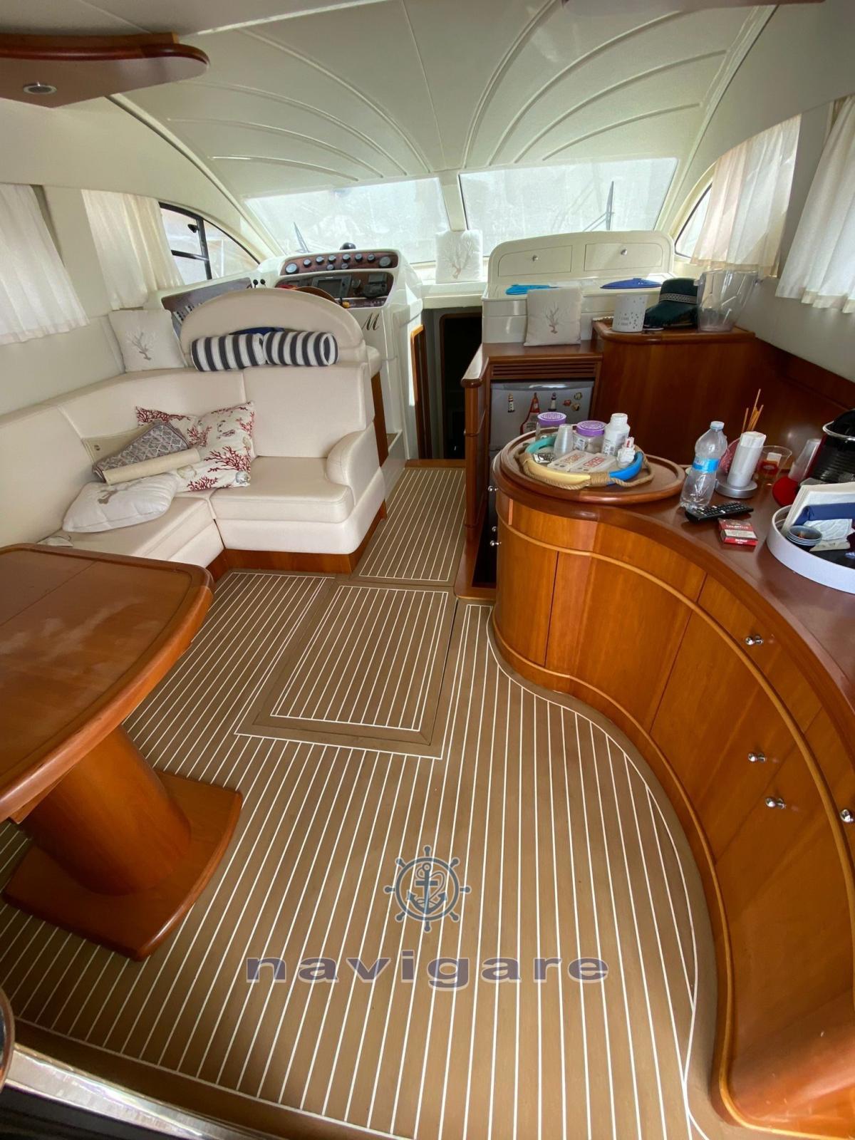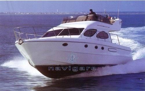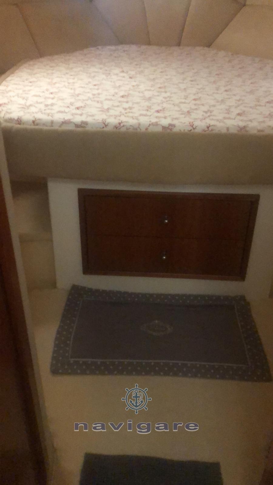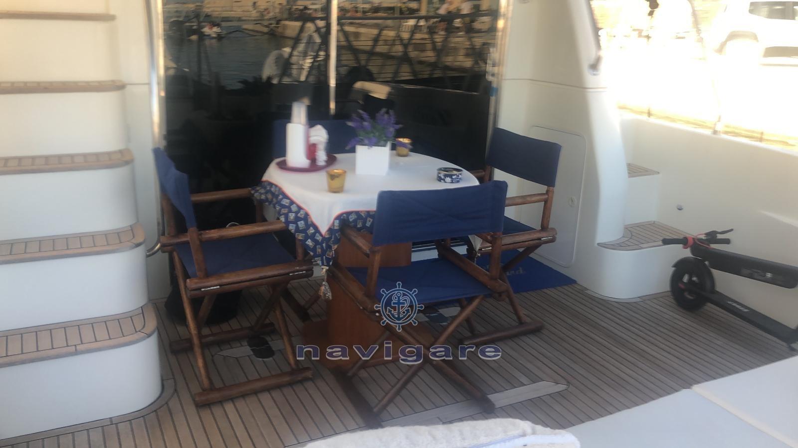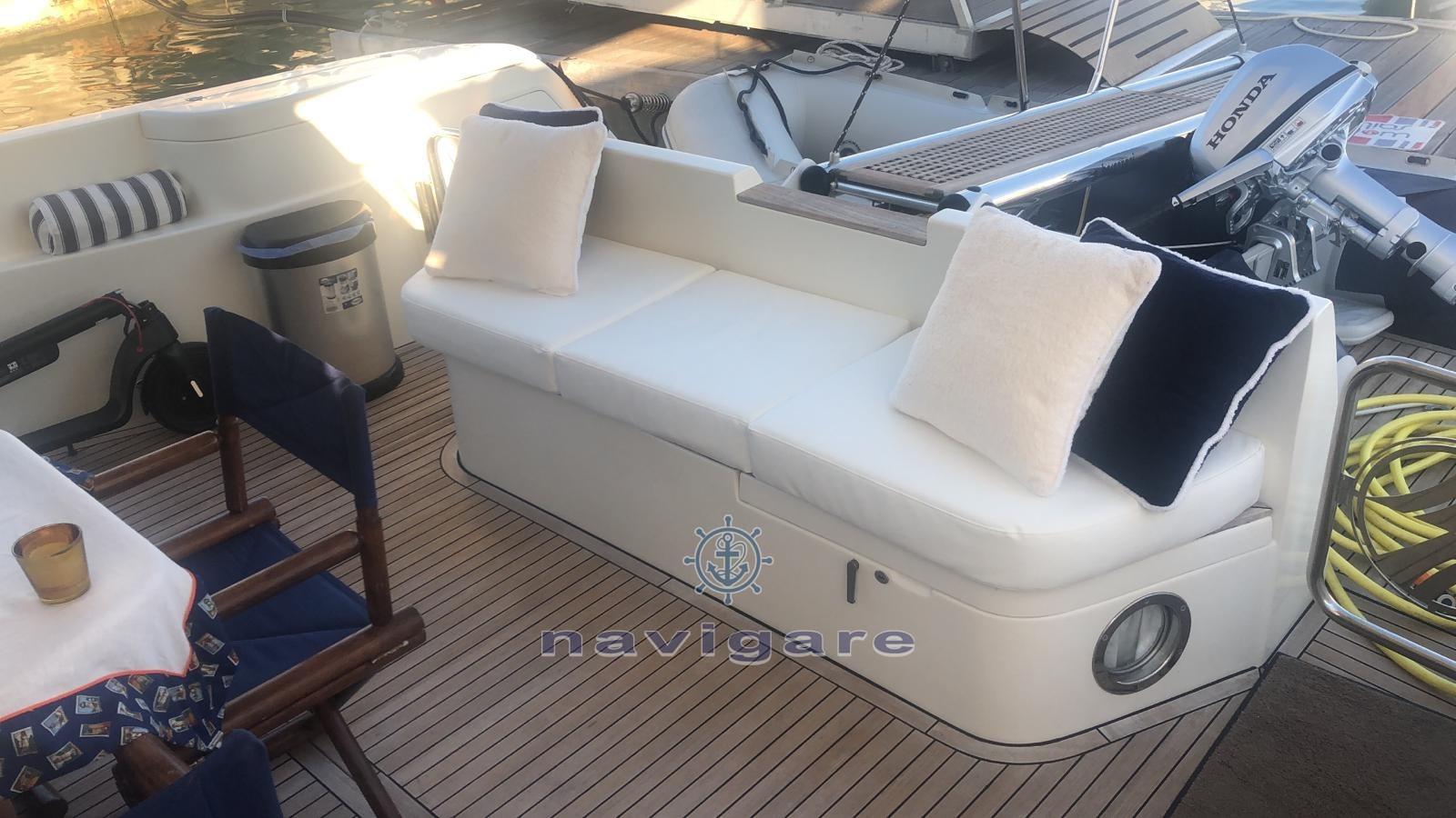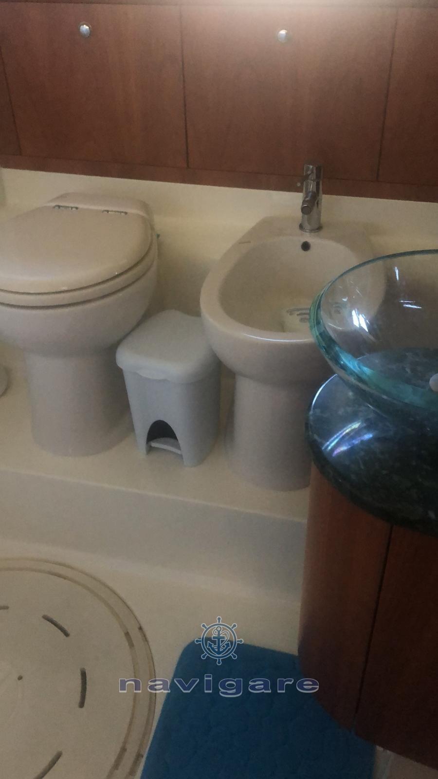 Engine Alarm, Bilge Alarm, Water pressure pump, Deck Shower, Twin Steering, Directional Spotlight, Hydraulic Flaps, Courtesy Lights, Underwater lights (NUOVE), Gangway, Platform, Automatic Bilge Pump, Entry door, Teak Cockpit, Shorepower connector, Water harbor connector system, Rollbar, Electric Windlass, swimming ladder, Tender, Stern Winches.