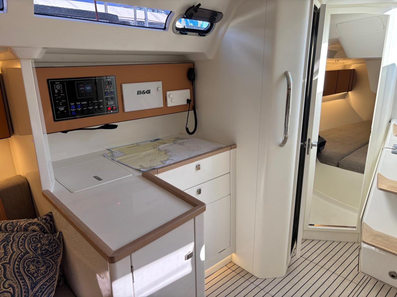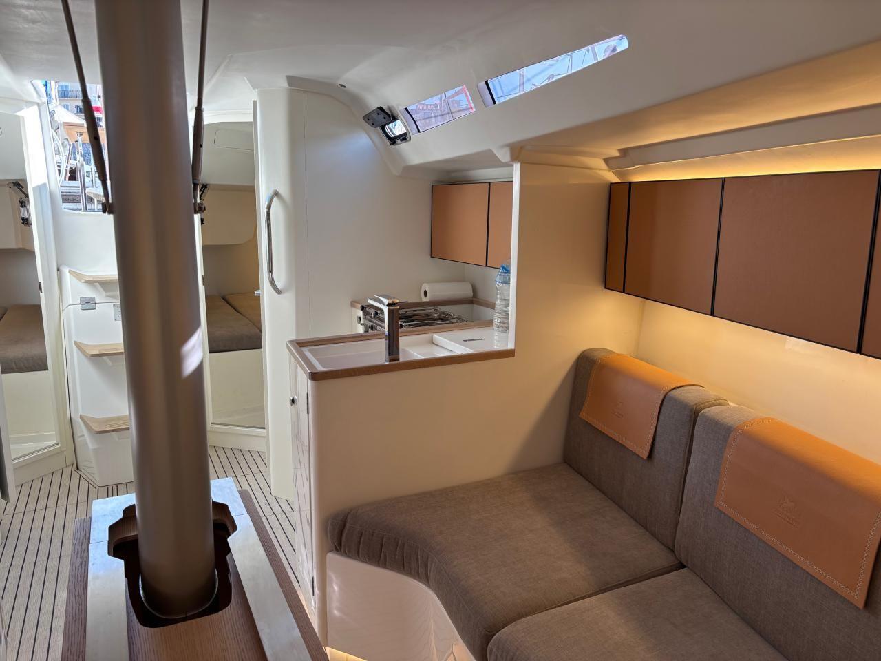 The Italia Yachts 11.98 is an impressive sailing yacht that offers a perfect balance between speed, comfort and design – a true cruiser – racer for participating at the top IRC and ORC races in the Mediterranean, occasional club regattas and fast cruising or day sailing with the family or friends. With its clean lines and advanced construction, this yacht offers excellent sailing performance and is an outstanding beauty – outside and inside. The Italia Yachts 11.98 has proven its superior qualities by winning several sailing races, among them four times the ORC world championship. These victories are a testament to the outstanding sailing characteristics and competitiveness of the Italia Yachts 11.98. Explore the world of sailing at an unrivalled level of speed and success with the Italia Yachts 11.98. French flag, VAT paid, available in France, Antibes Port Vauban, Mooring C5. 10
