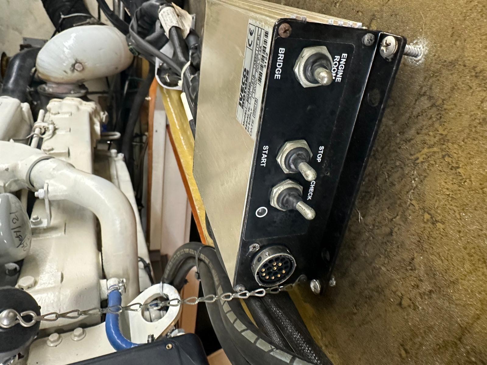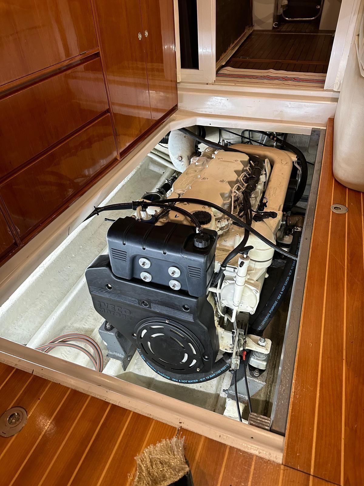Engine Alarm, Water pressure pump, Batteries (nuove), Deck Shower, Directional Spotlight, Hydraulic Flaps, Crane, Gangway (idraulica con telecomndo), Platform, Entry door, Teak Cockpit, Shorepower connector, Water harbor connector system, Voltage Rectifier, Rollbar, Electric Windlass, swimming ladder, cockpit table, Horn.