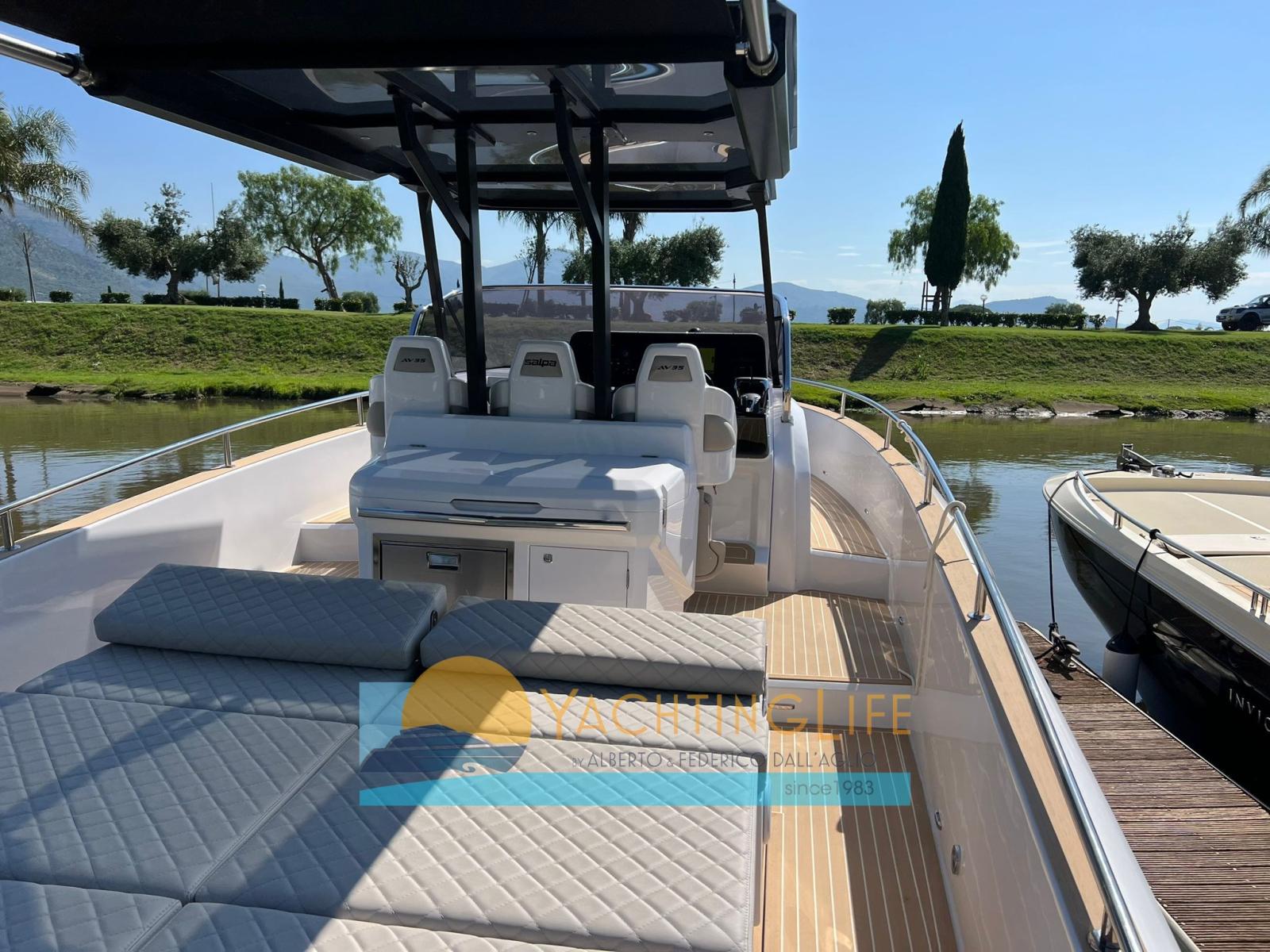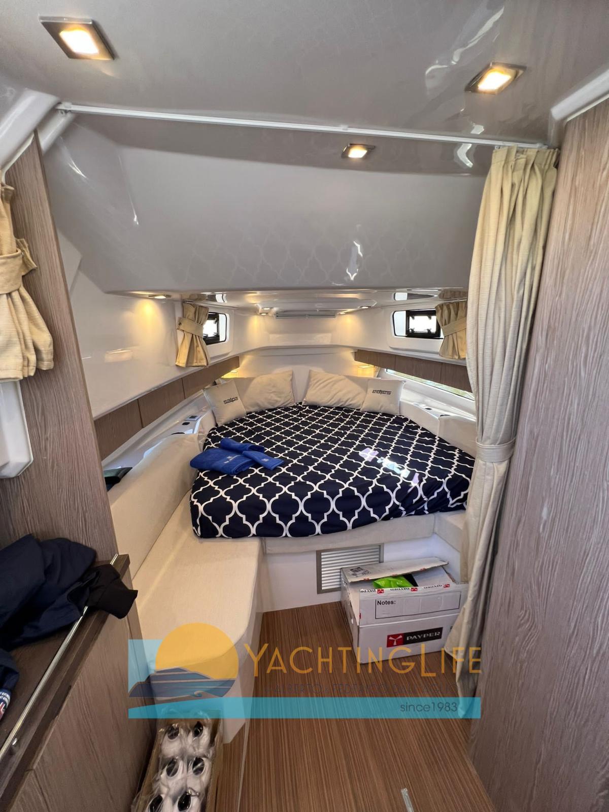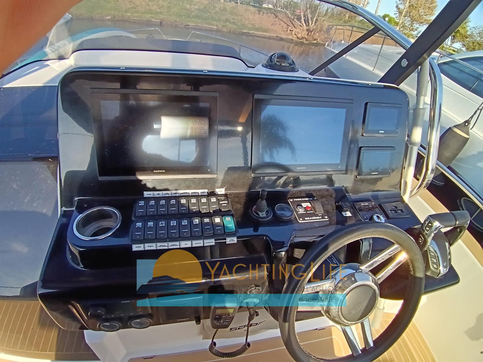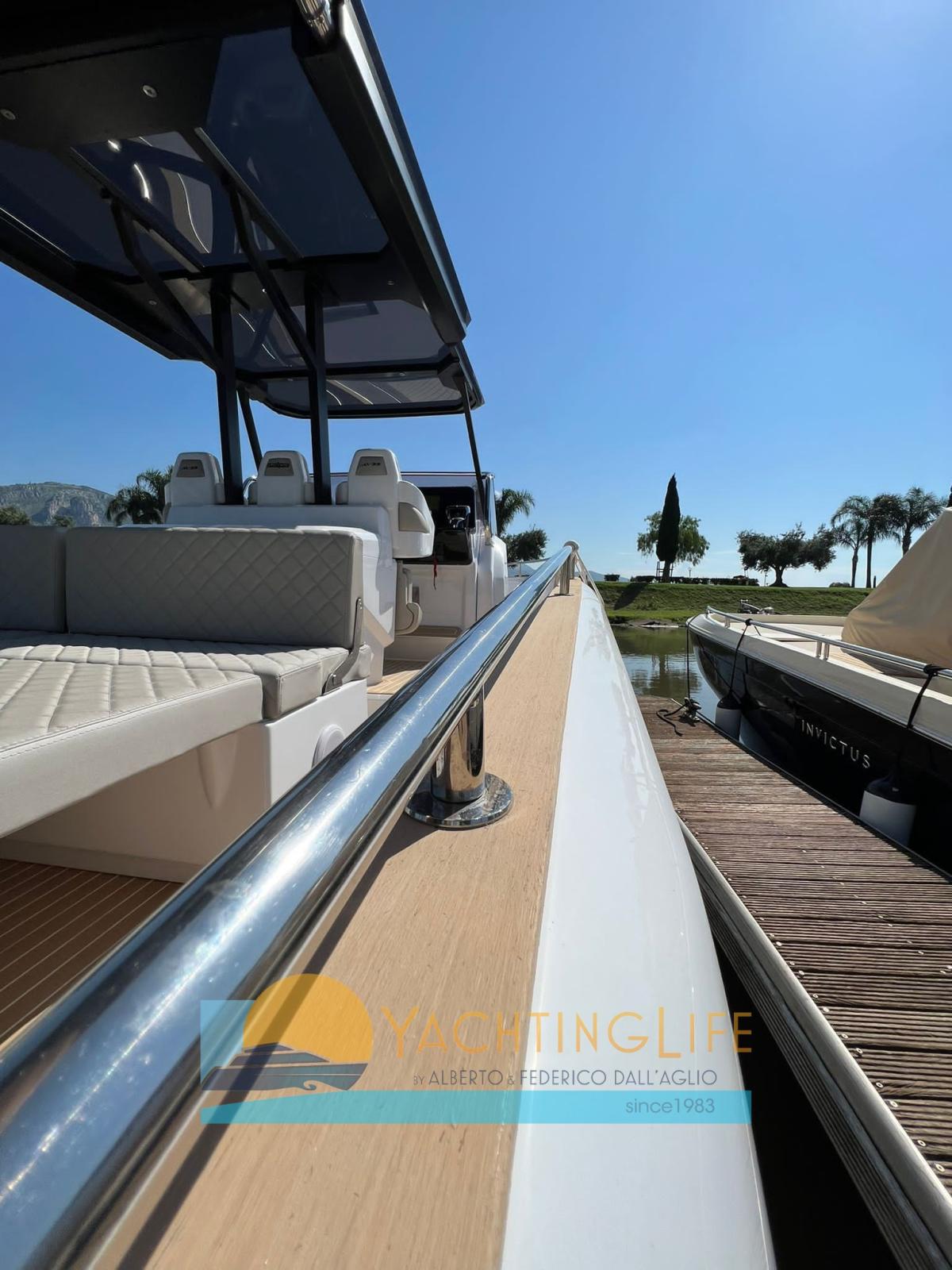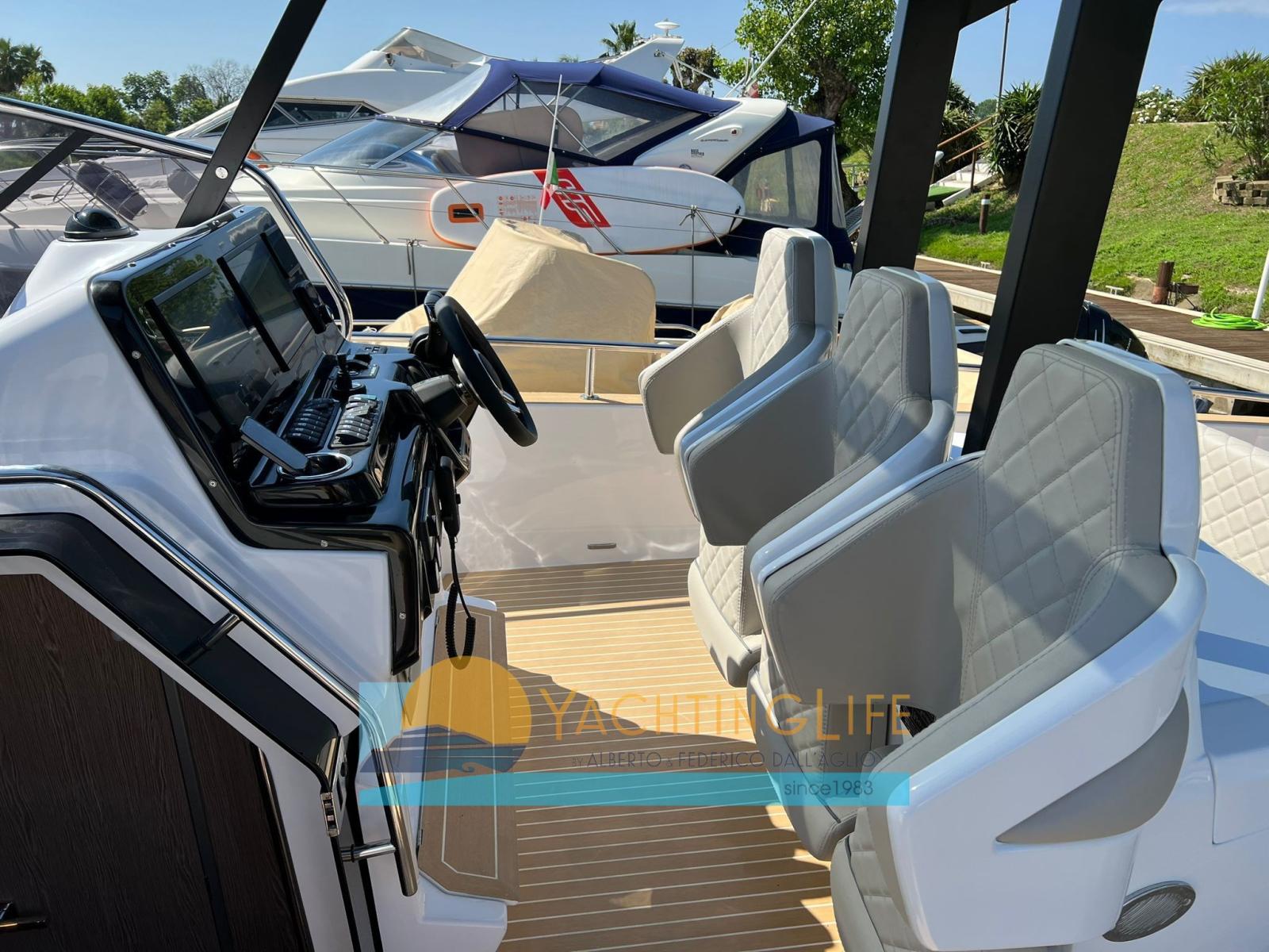 Water pressure pump, 2 Deck Shower, Electric Flaps (Zip Wake), Flaps Indicators, Washbasin in the cockpit, Automatic Bilge Pump, Teak Cockpit (sintetico), Shorepower connector, Electric Windlass, 2 swimming ladder, cockpit table (elettrico), Horn.