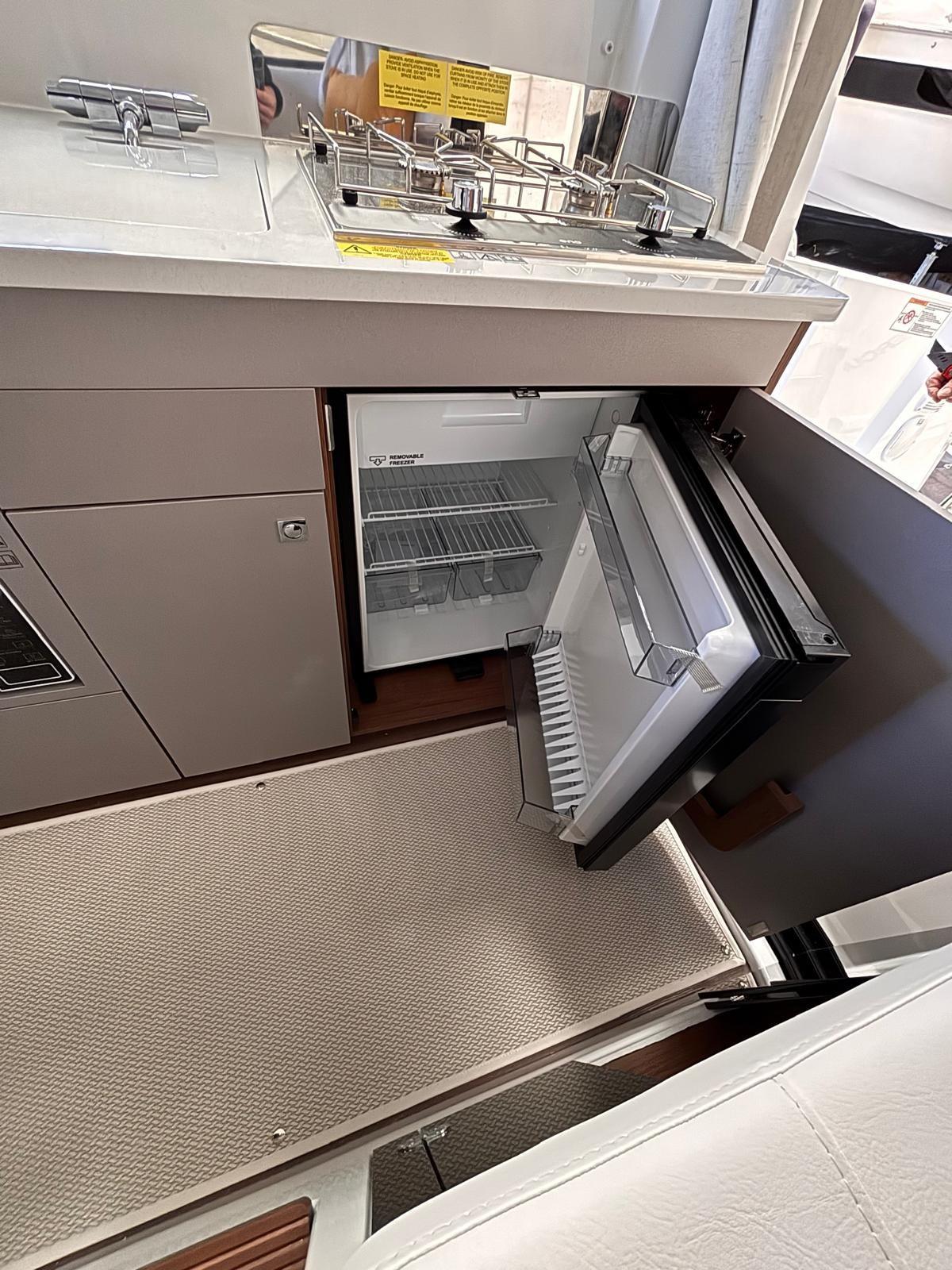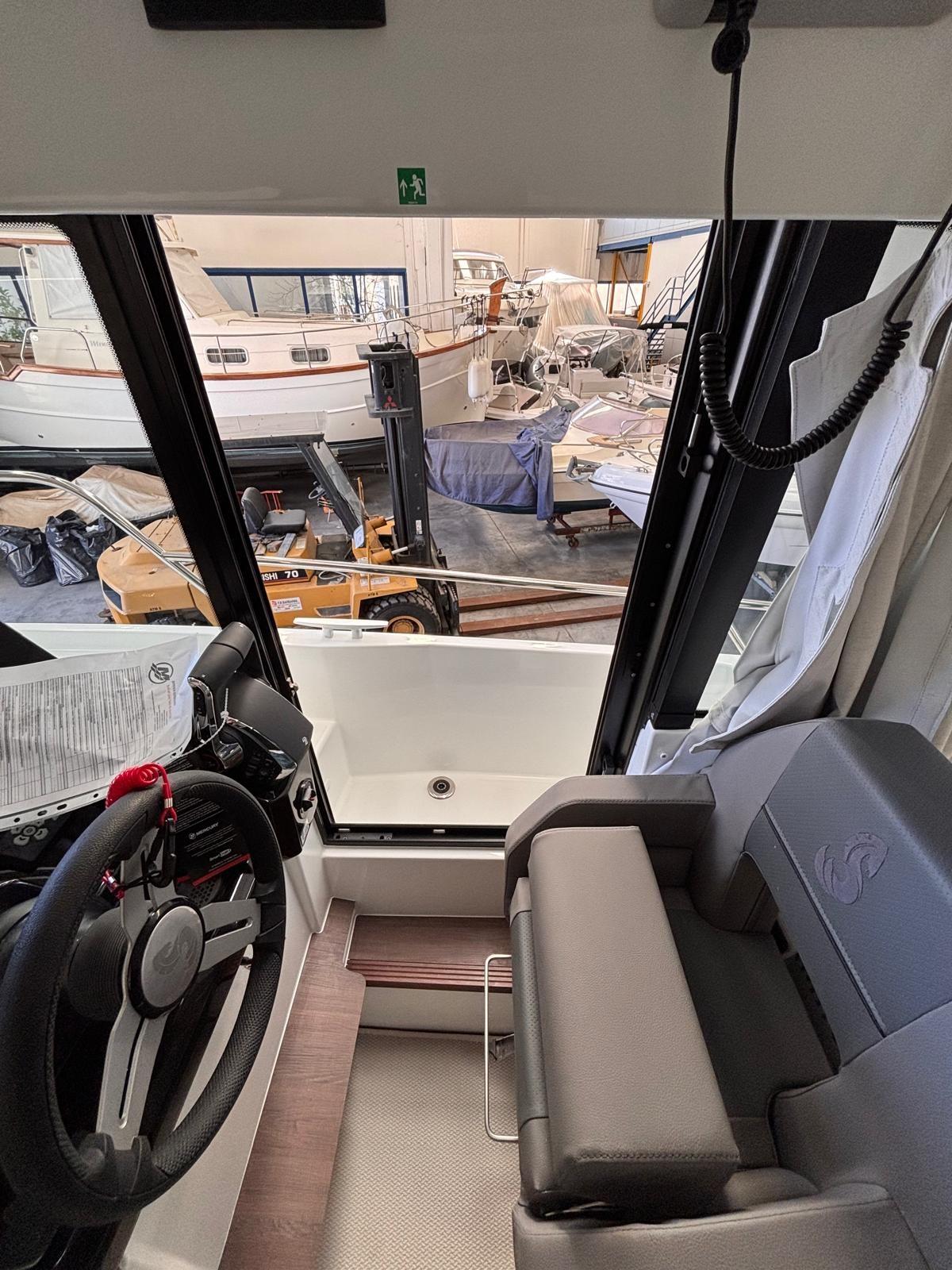 Fume/Gas Detector, Engine Alarm, Bilge Alarm, Water pressure pump, Deck Shower, Hydraulic Flaps, Hard top, Fire Extinguishing System, Courtesy Lights, Entry door, Side door, Shorepower connector, Electric Windlass, cockpit table, Living Room Foldable Table.