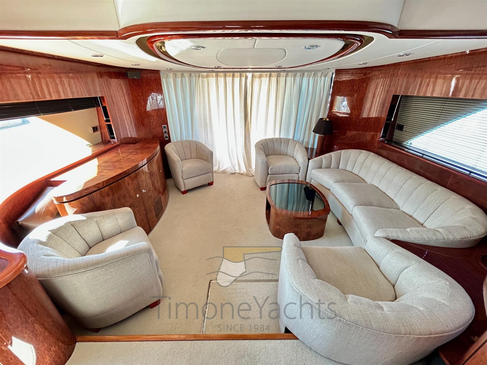 Alternator, Water pressure pump, Teak Side Decks, Shore power cable, Deck Shower, Twin Steering, Directional Spotlight, Hydraulic Flaps (N°2), Tender Garage ((see descriptions)), Fire Extinguishing System, Flaps Indicators, Anchor Chain Washdown, Underwater lights, Gangway, Platform, Waste Water Tank Drain Pump, Automatic Bilge Pump, Deck Wash Pump, Teak deck, Side door, Shorepower connector, Electric Windlass, swimming ladder, Horn, Stern Winches, Bow Winches.