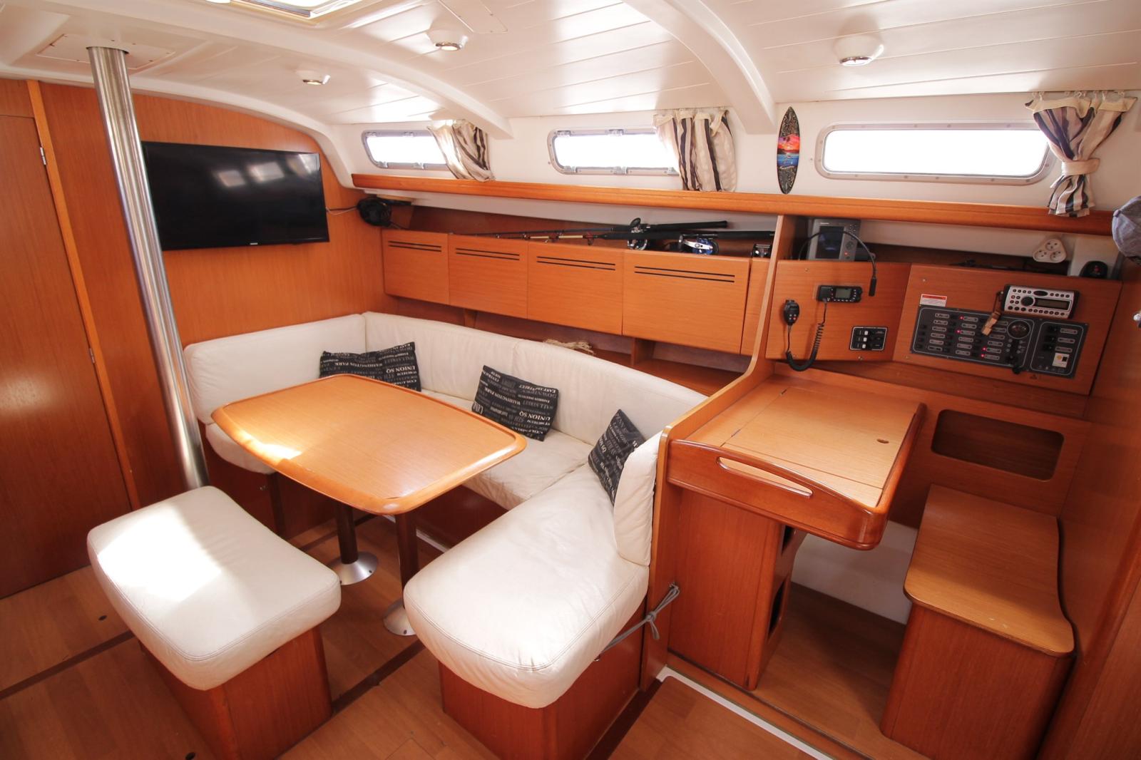 The company PHILIPPE PLAISANCE – 100 % used sailboats is pleased to offer you a BENETEAU CYCLADES 43.3 in a 3 cabin / 3 bathroom version. This sailboat has never been rented and has made its owners happy for 9 years. Bulky, very solid and offering a lot of storage, this CYCLADES is properly followed and well equipped: Code 0, FLEXOFOLD propeller, full-batten mainsail, NMEA 2000 network with Garmin GPS, AIS (transmit/receive), 750 Ah of AGM batteries, new roof top, EPIRB, inflatable floor dinghy, water and refrigeration unit replaced, fully tracked engine, 100% of thru-hulls replaced in 2022. It will seduce you with its volumes, comfort and ease of use. Handling and port space possible.