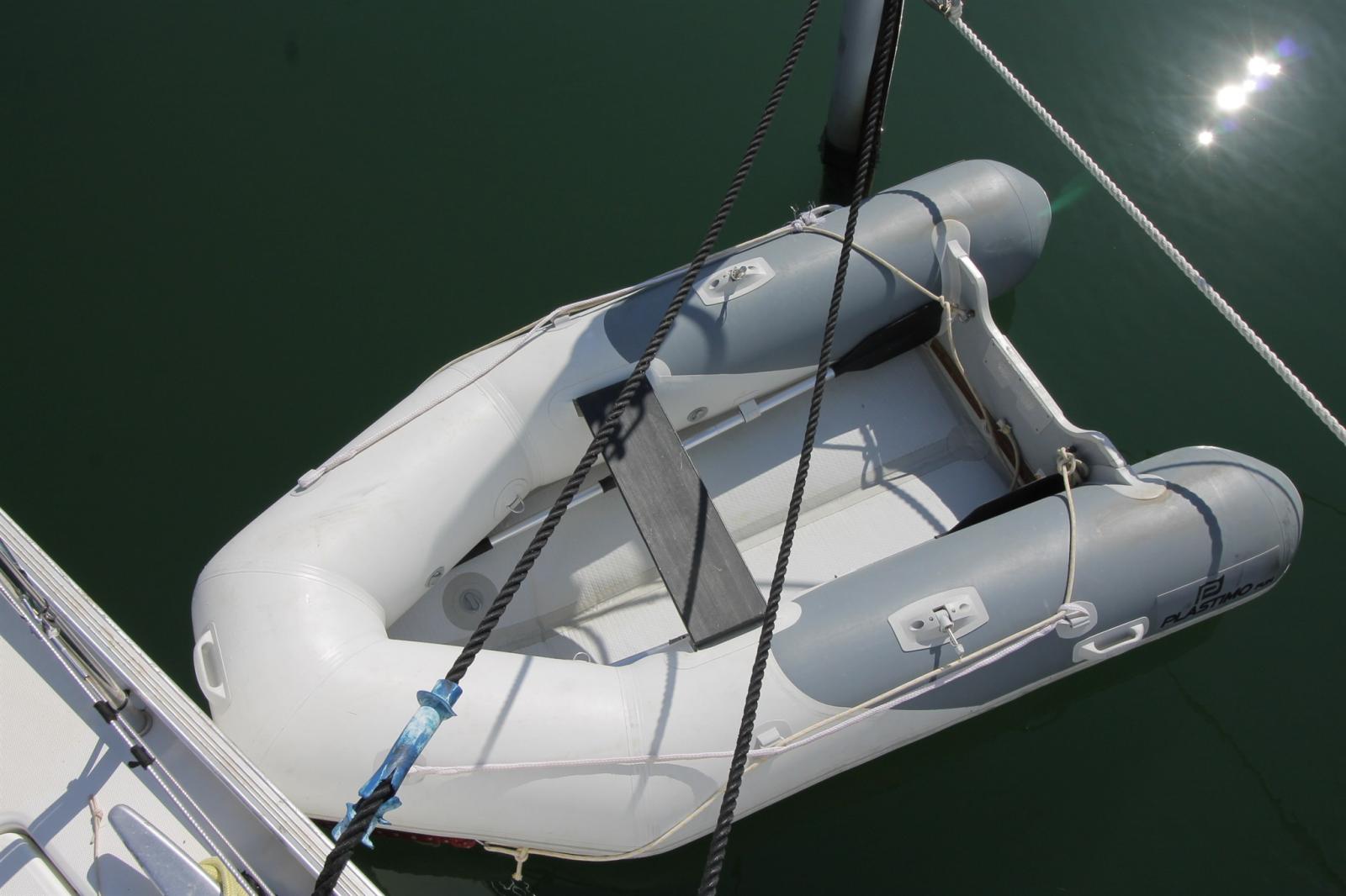 Engine Alarm, Anchor (type Charrue), 4 Selftailing winch, Water pressure pump (groupe remplacé en 2024), 3 Batteries (x 250ah AGM de 2024 + batterie moteur remplacé en 2024), Shore power cable (remplacé par câble de puissance en 3x3,5), Deck Shower, Twin Steering, Secondary Propeller, Auxiliary Engine (6cv 4t), Solar panels (x100w), Platform, Manual Bilge Pump, Voltage Rectifier, Electric Windlass (1000w), swimming ladder, Outboard Engine Support Bracket, cockpit table, Tender (4 personnes plancher gonflables).