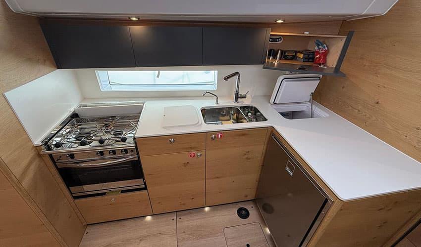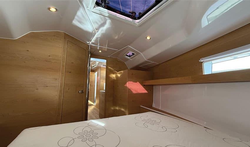The Elan I43 (2024) is a performance and elegant sailboat, ideal for demanding sailors.With its 3 cabins, 2 bathrooms, and a spacious cockpit, it offers comfort and functionality.Equipped with an electric windlass, a large bathing platform, and customization options such as abow thruster or a roller mast, it adapts to all your needs. Between sailing pleasure and high-end comfort, the Elan I43 redefines the experience at sea.