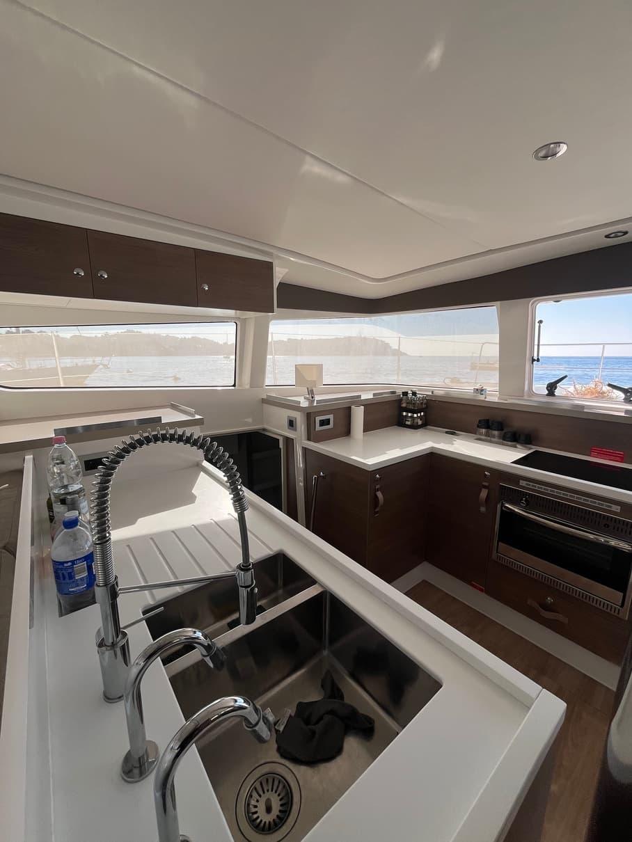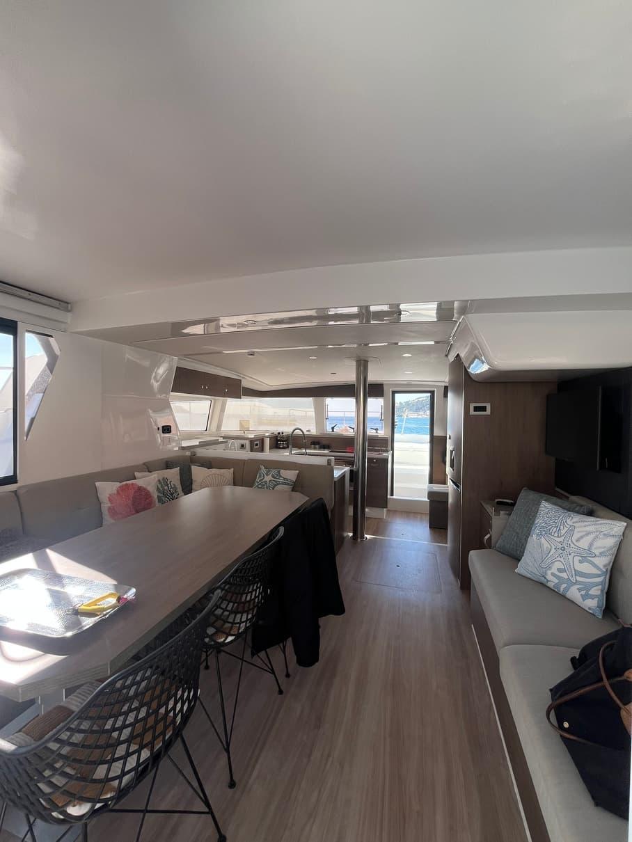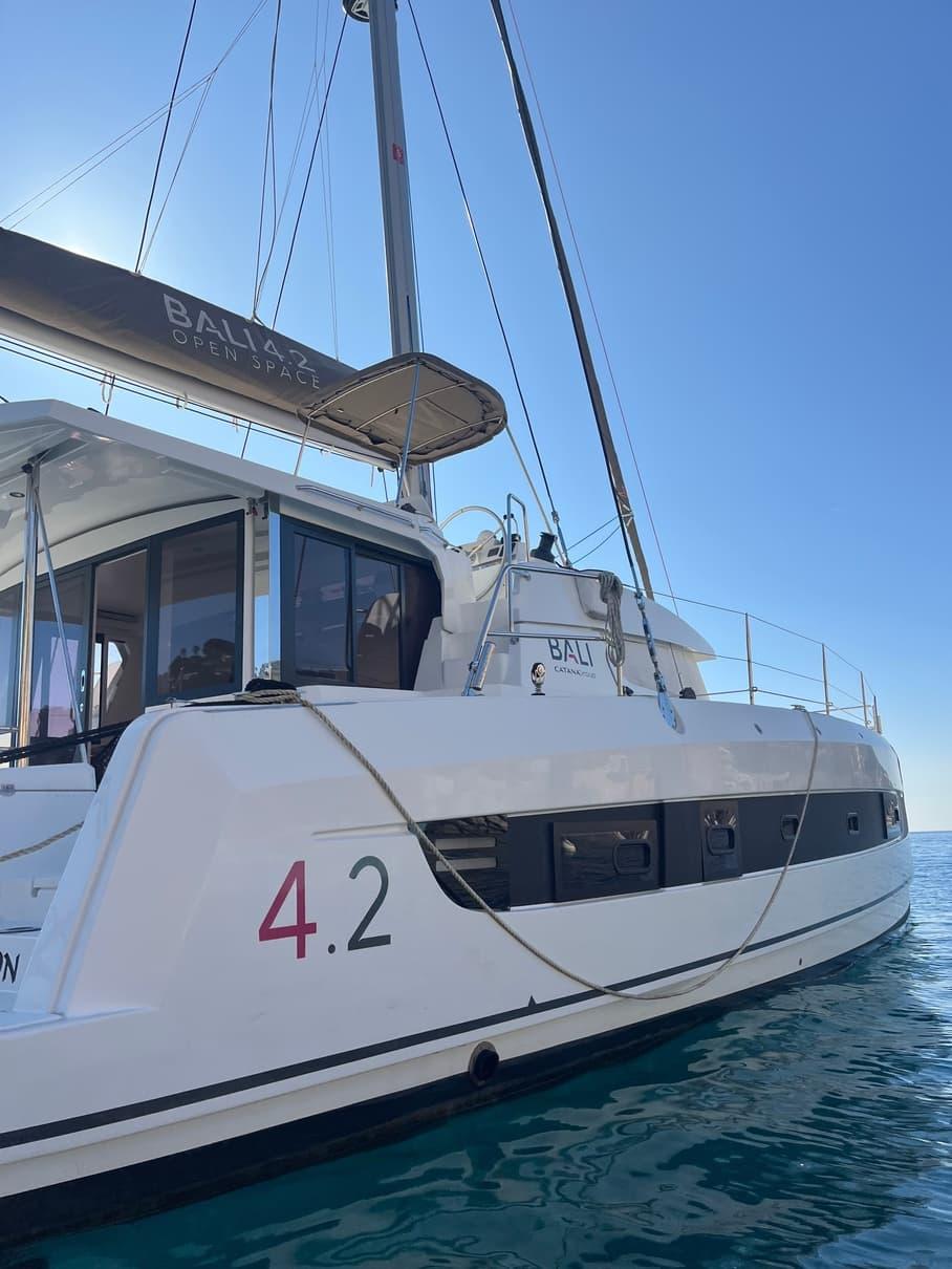 The Bali 4.2 owner version embodies elegance and independence at sea, combining space and autonomy for uncompromising navigation. Designed for comfort, it offers a refined interior with a master suite, modern amenities, and a kitchen equipped like at home. Its energy and fresh water autonomy allows for exploration without constraints, while its efficient rigging and advanced electronics ensure smooth and safe navigation.