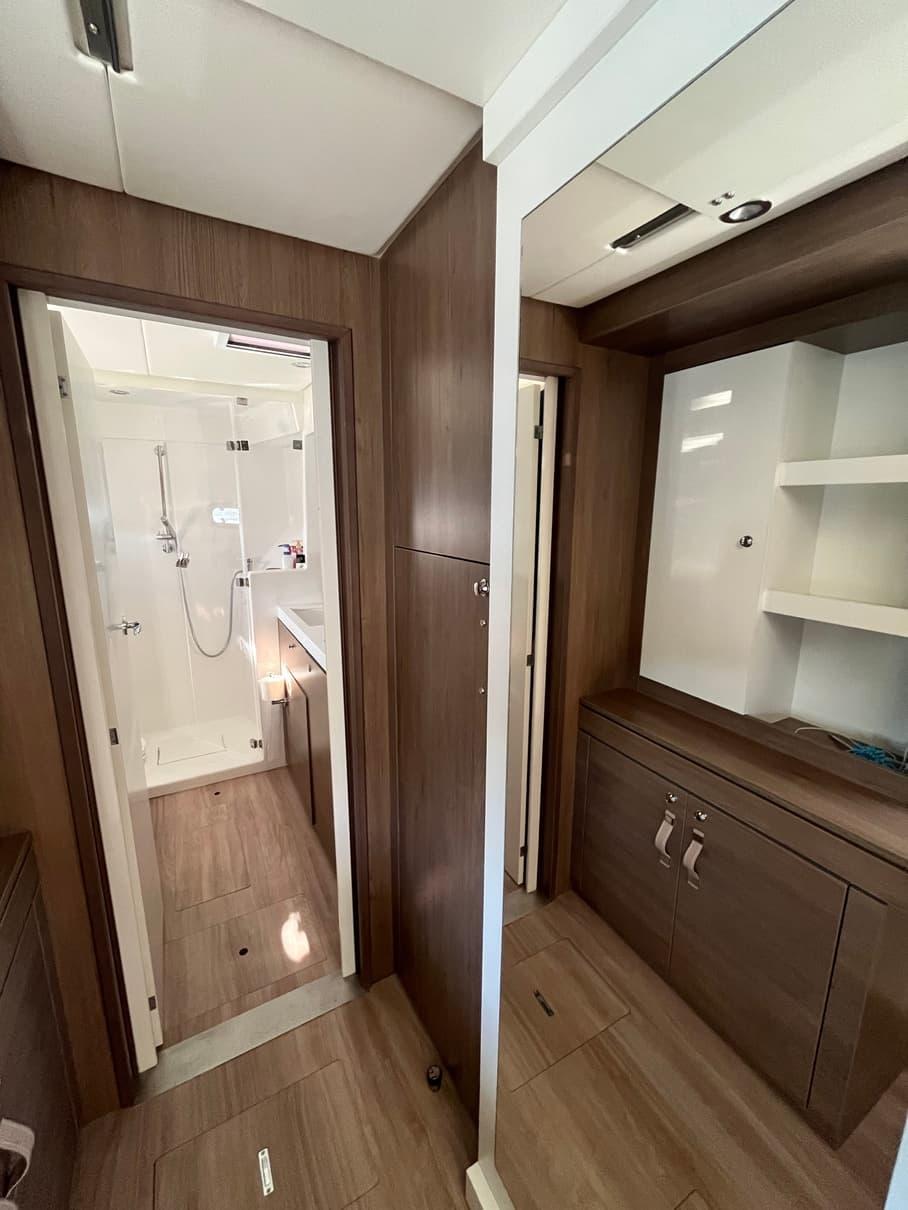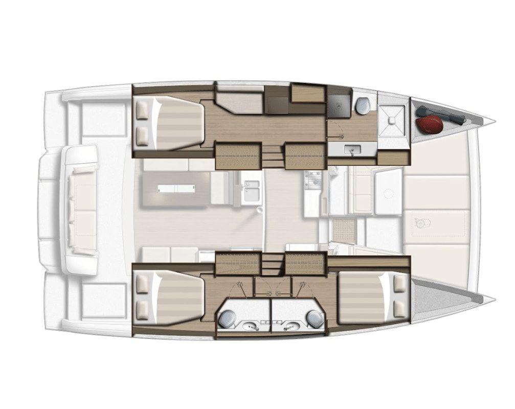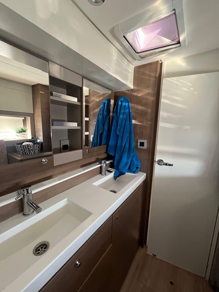 The Bali 4.2 owner version embodies elegance and independence at sea, combining space and autonomy for uncompromising navigation. Designed for comfort, it offers a refined interior with a master suite, modern amenities, and a kitchen equipped like at home. Its energy and fresh water autonomy allows for exploration without constraints, while its efficient rigging and advanced electronics ensure smooth and safe navigation.