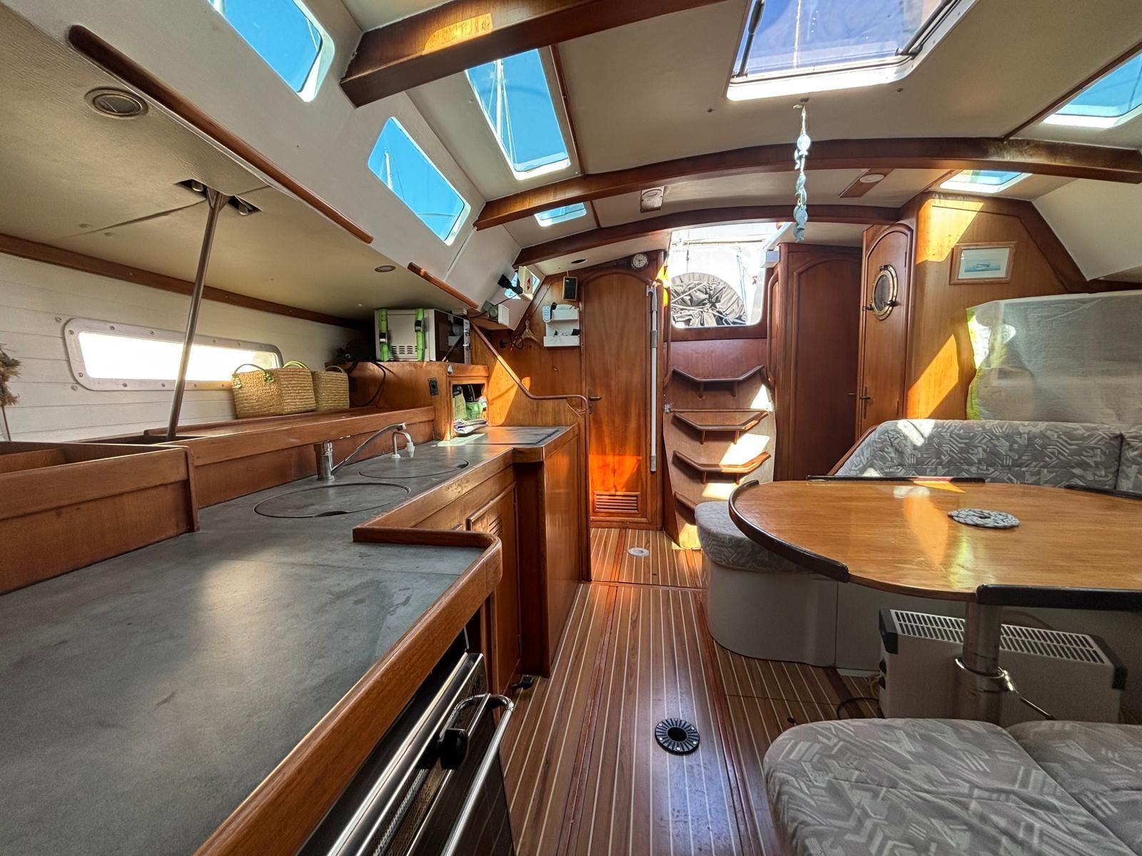 Vous profiterez d’un équipement électronique complet pour naviguer sereinement. L’intérieur propose 4 cabines confortables ainsi qu’un carré lumineux et bien agencé, idéal pour la vie à bord. Des panneaux photovoltaïques assurent une bonne autonomie énergétique.
