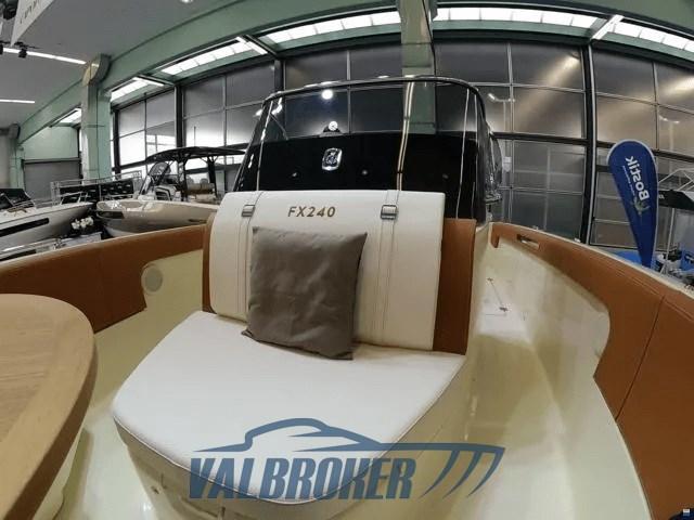 FX 240 offers its guests elegance and versatility, thanks to the bow area that can accommodate a comfortable sofa leaning against the bulwark, or remain free for the most passionate fishermen. The console and driver's seat are designed in detail to be totally integrated and usable.