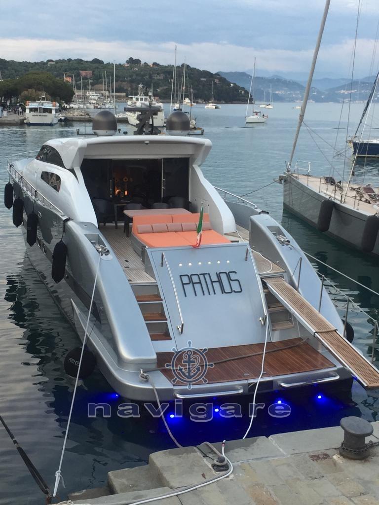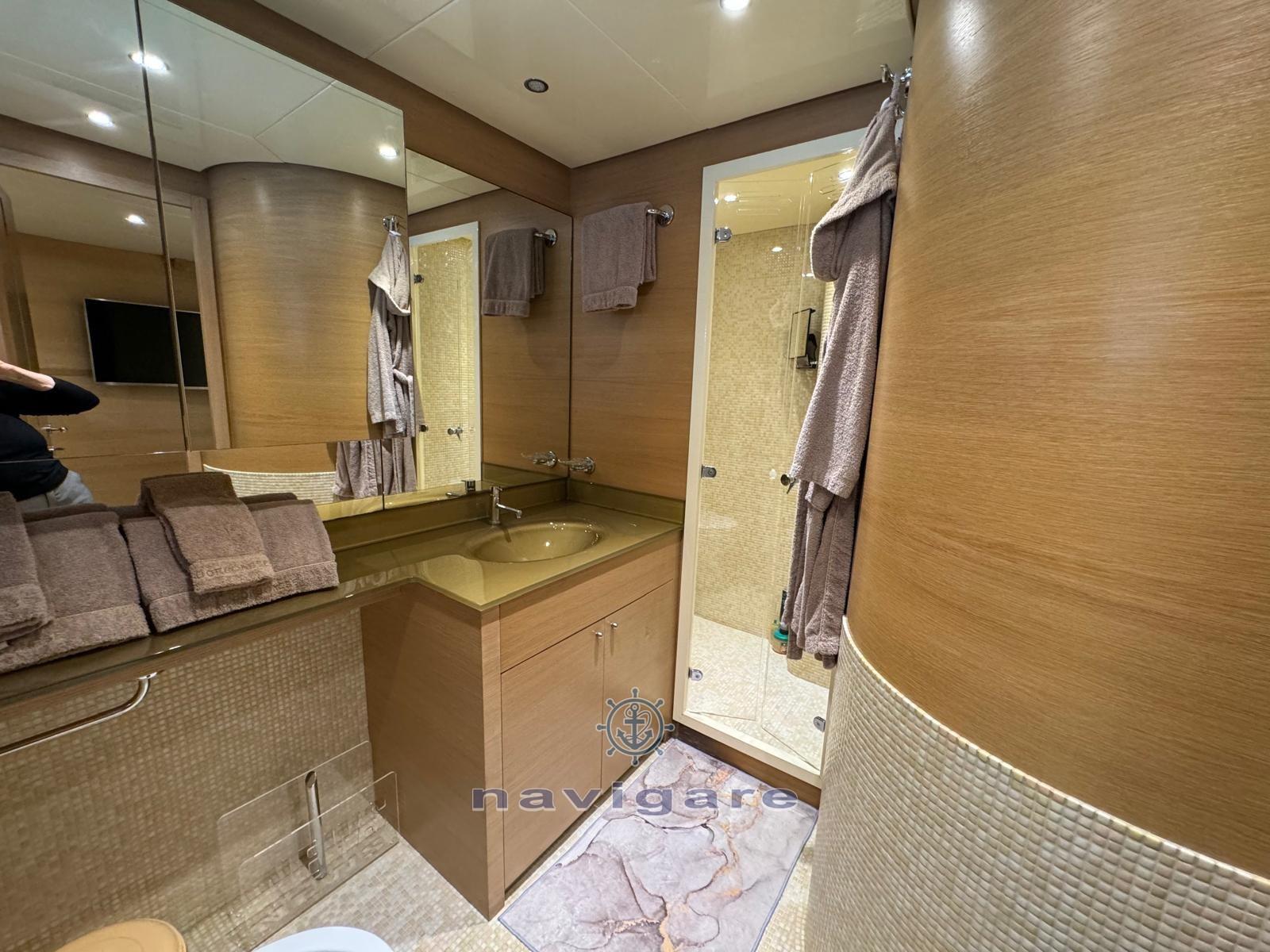 Engine Alarm, Water pressure pump, 2 Battery charger, Deck Shower, Hydraulic Flaps, Tender Garage, Hard top, Fire Extinguishing System, Courtesy Lights, Gangway, Automatic Bilge Pump, Entry door, Teak Cockpit (CAMMINAMENTI LATERALI IN TEAK), Shorepower connector, Water harbor connector system, Electric Windlass, swimming ladder, Tender (con motore fuoribordo 20 CV), Horn, 2 Stern Winches.