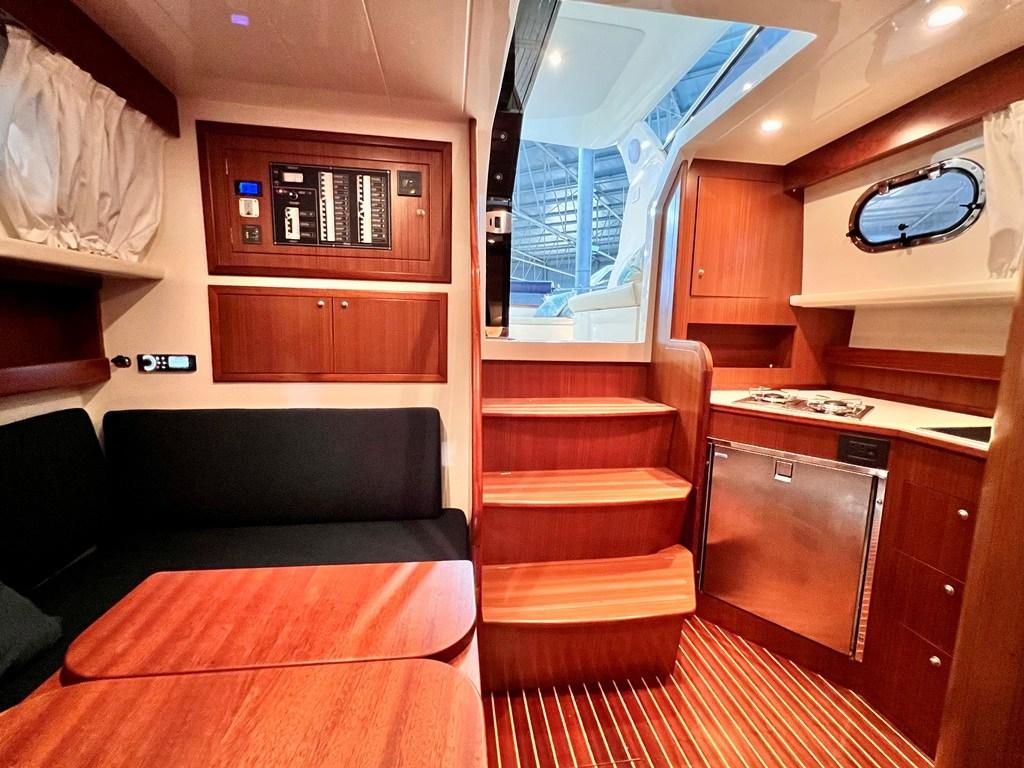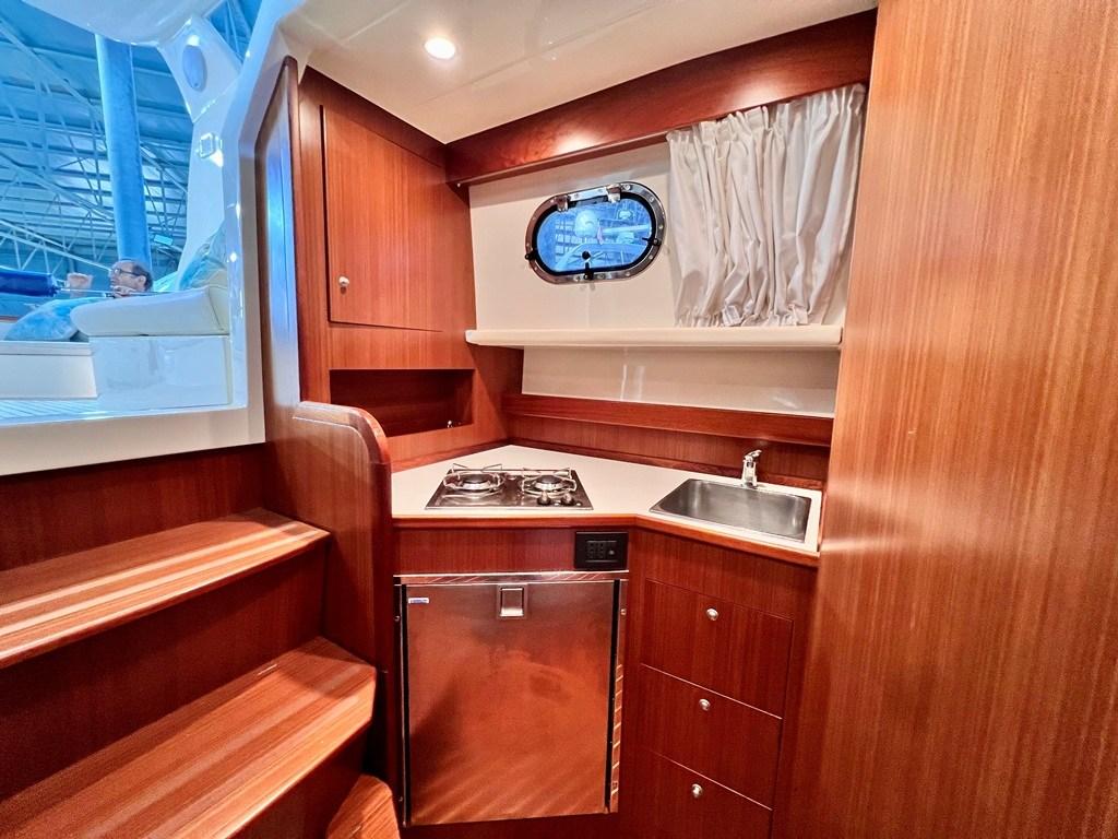 The galley immediately to the left upon entering, although below deck, is visible from the cockpit and is actually adjacent and communicates with the outside.