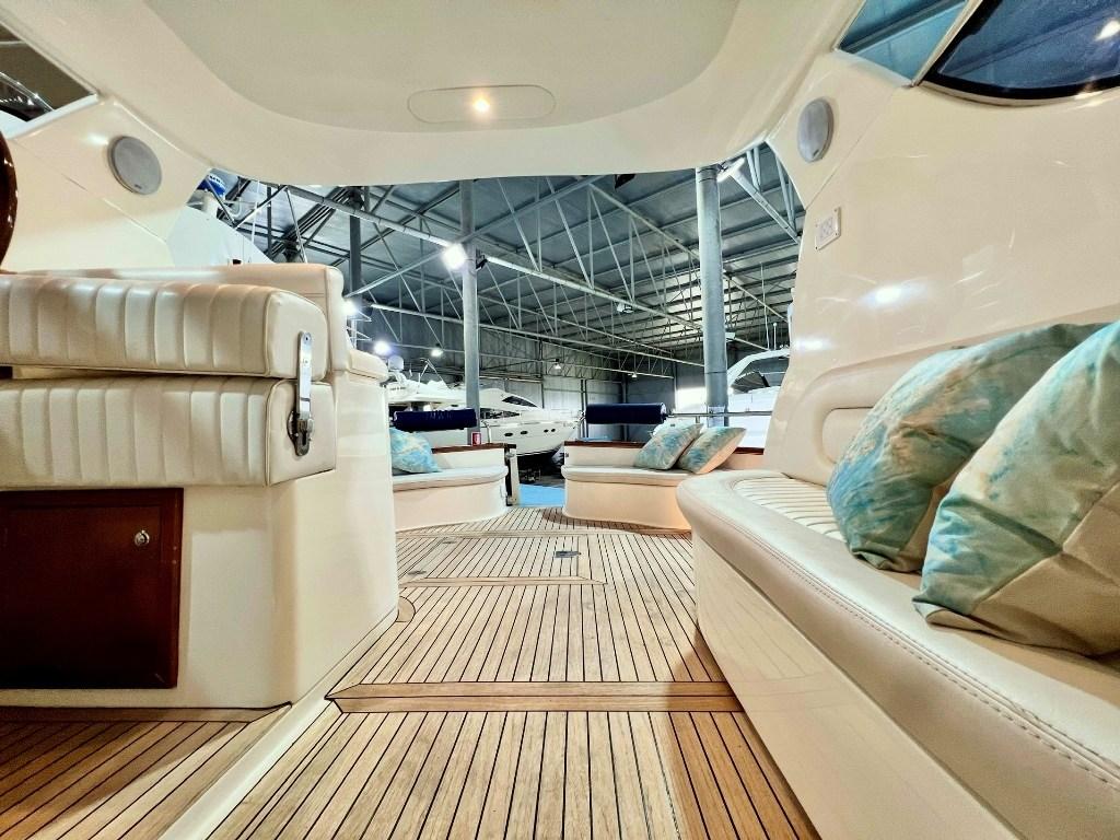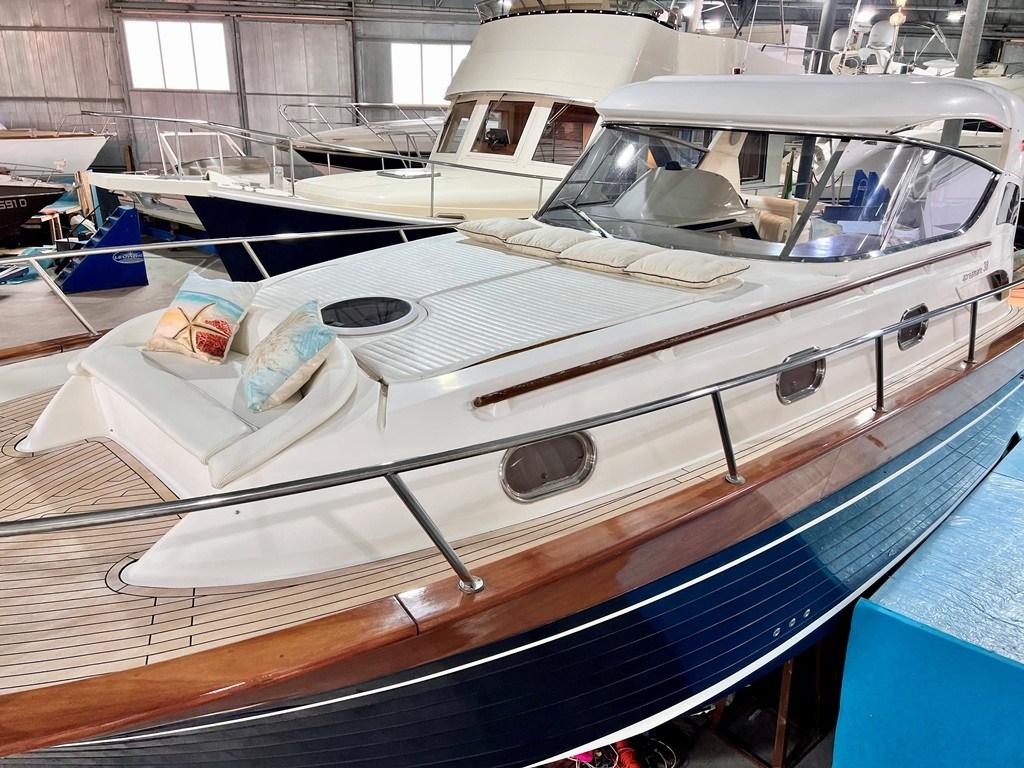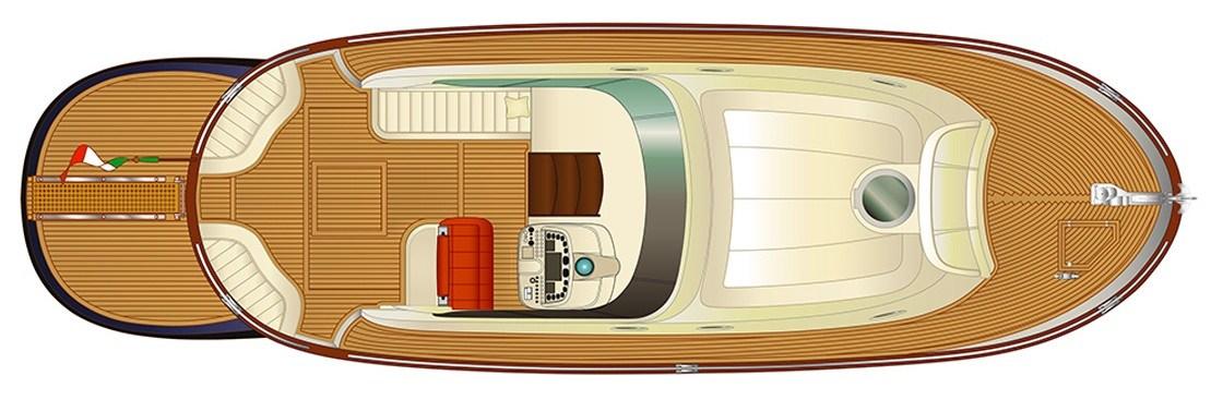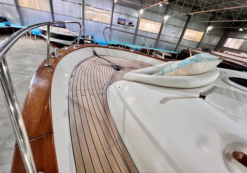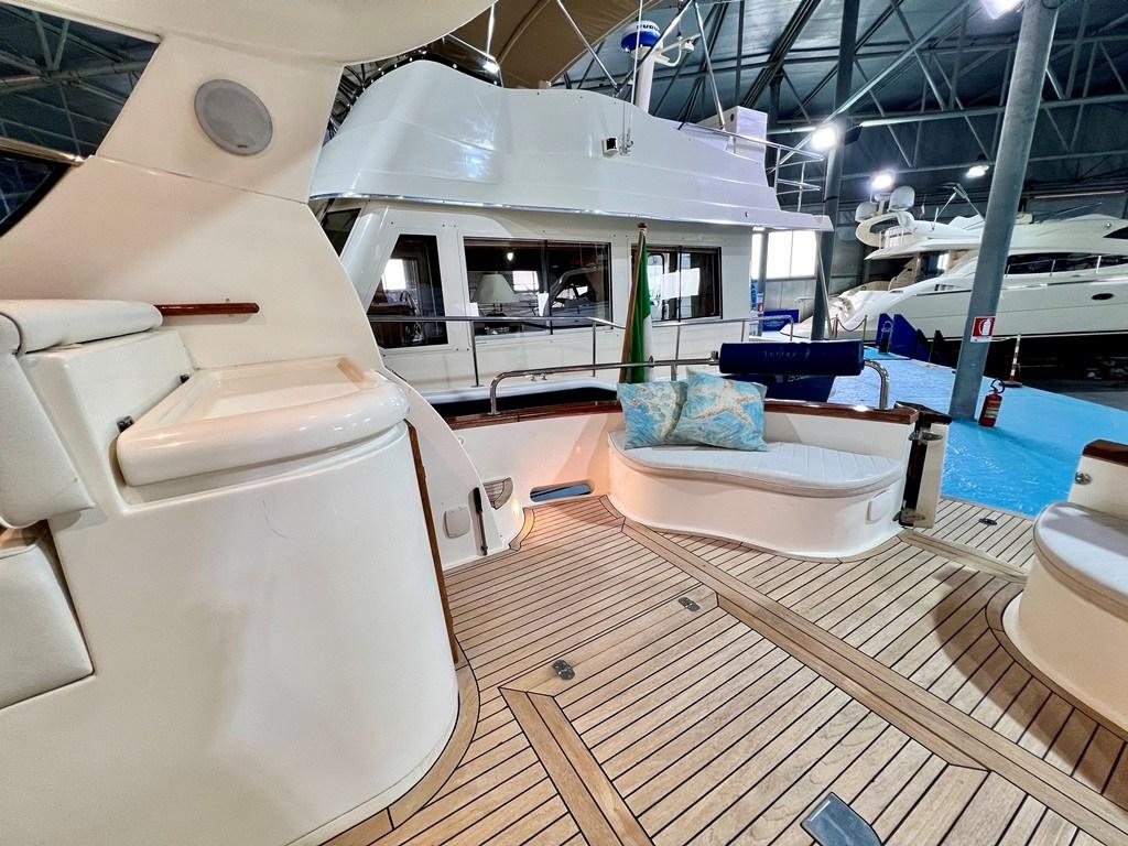 Water pressure pump, Special Colour (Fiancate Blu Navi), Deck Shower, Electric Flaps, Hard top (Apribile), Fire Extinguishing System, Platform (con calpestio in teach), Automatic Bilge Pump, Teak deck, Entry door, Teak Cockpit, Shorepower connector, Electric Windlass, cockpit table, Living Room Foldable Table (trasfromabile in cuccetta), Bow Winches.