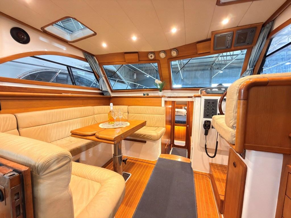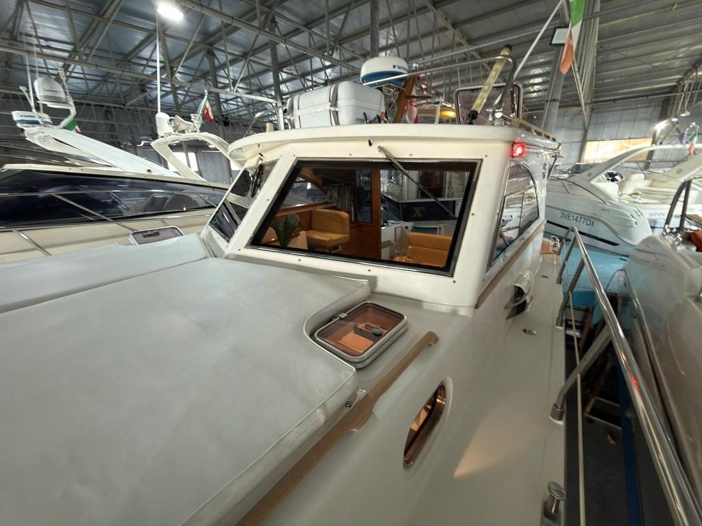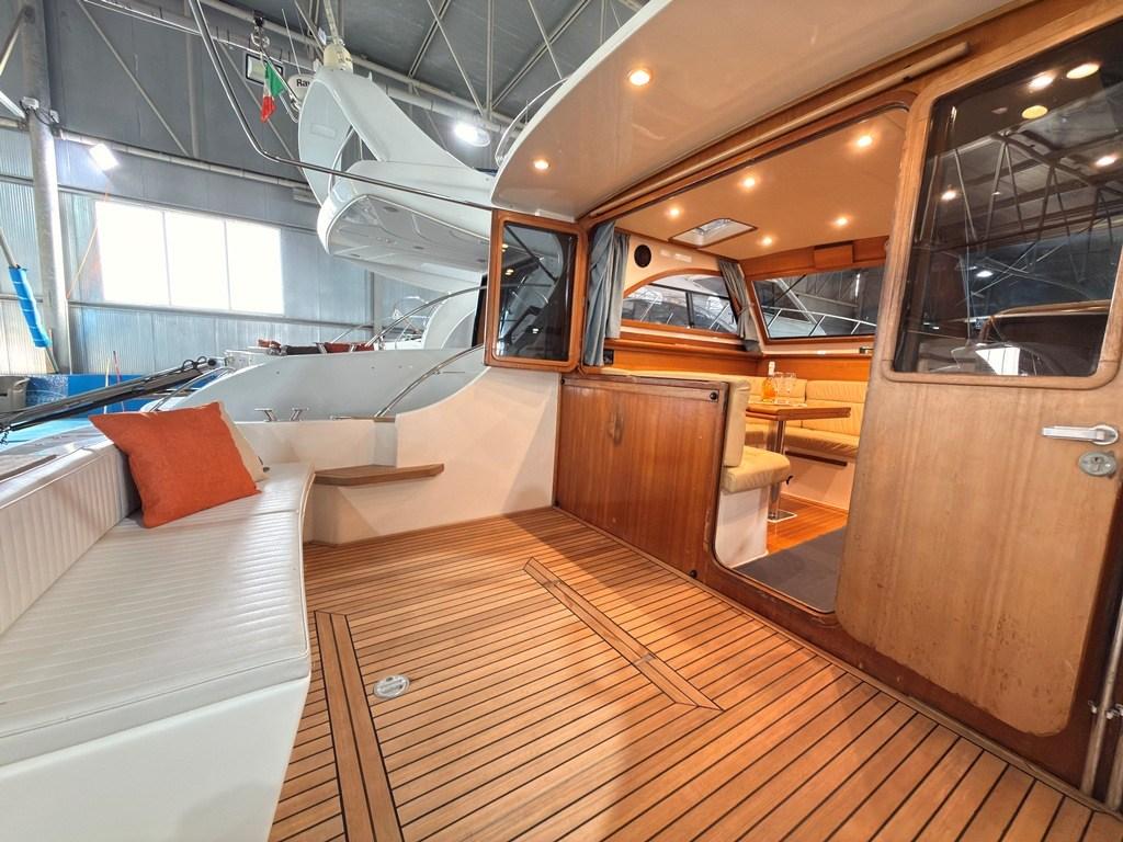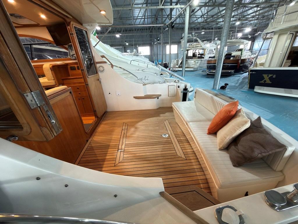 Auto Dynamic Trim Interceptor (Zipwake), Gangway (Idraulica), Platform (con fondo in teak), Seawater Pump, Entry door (in legno), Teak Cockpit, Shorepower connector, Electric Windlass, Living Room Foldable Table, Bow Winches.