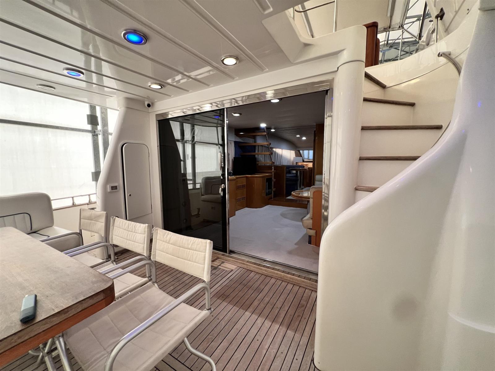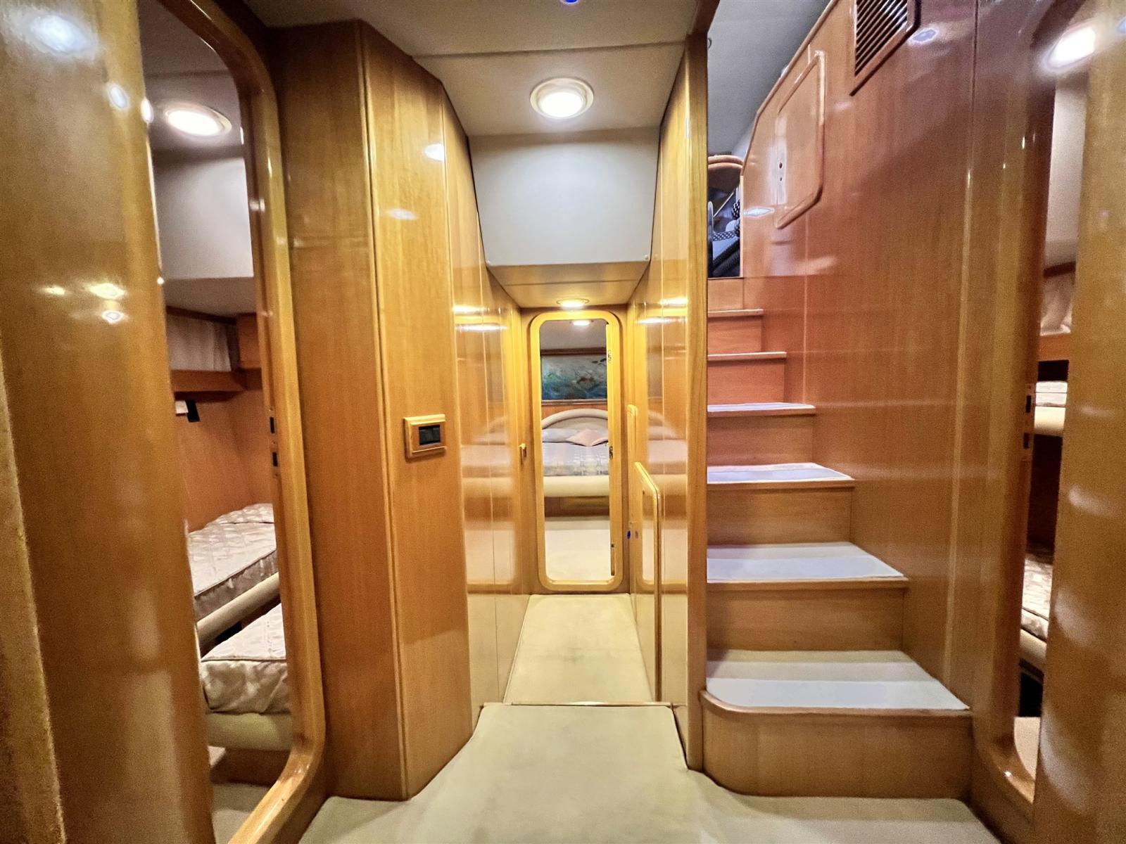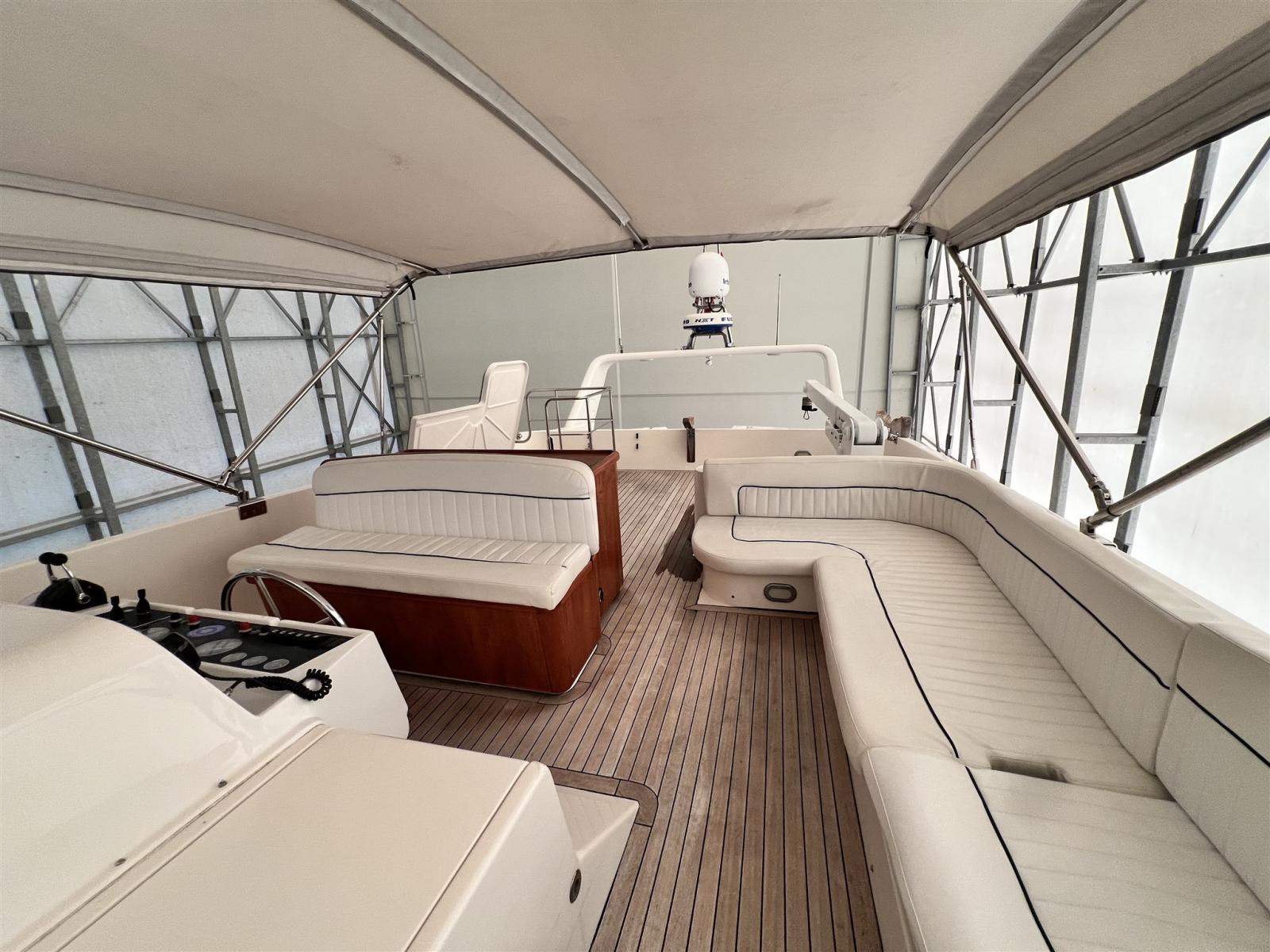 Engine Alarm, 2 Spare shaft, Water pressure pump, Batteries (2022), Teak Side Decks, 2 Battery charger (2022), Deck Shower, Stern Thruster (revisionata), Bow Thruster (revisionata), Directional Spotlight, Hydraulic Flaps, Fire Extinguishing System, Flaps Indicators (con impianto nuovo 2022), Courtesy Lights, Gangway (telescopica), Platform, Automatic Bilge Pump, Manual Bilge Pump, Teak Cockpit, Shorepower connector, 2 Voltage Rectifier (2022), Rollbar (con fari nuovi), Electric Windlass (revisionato con catena nuova), swimming ladder, cockpit table, Tender, 3 Winch.