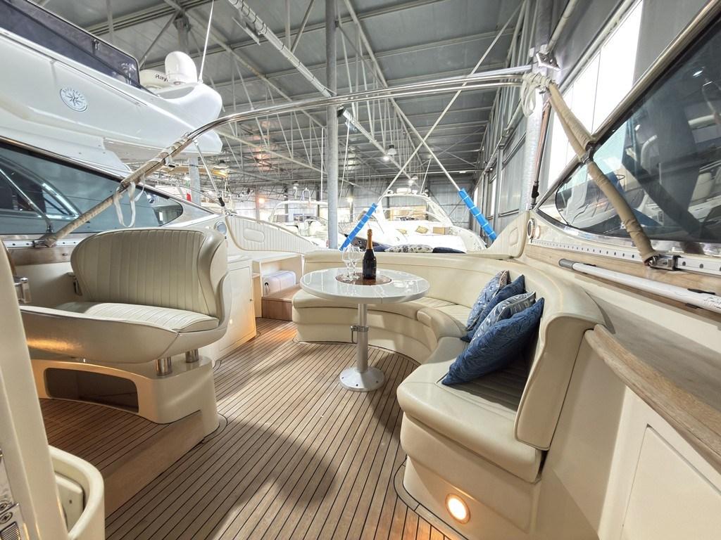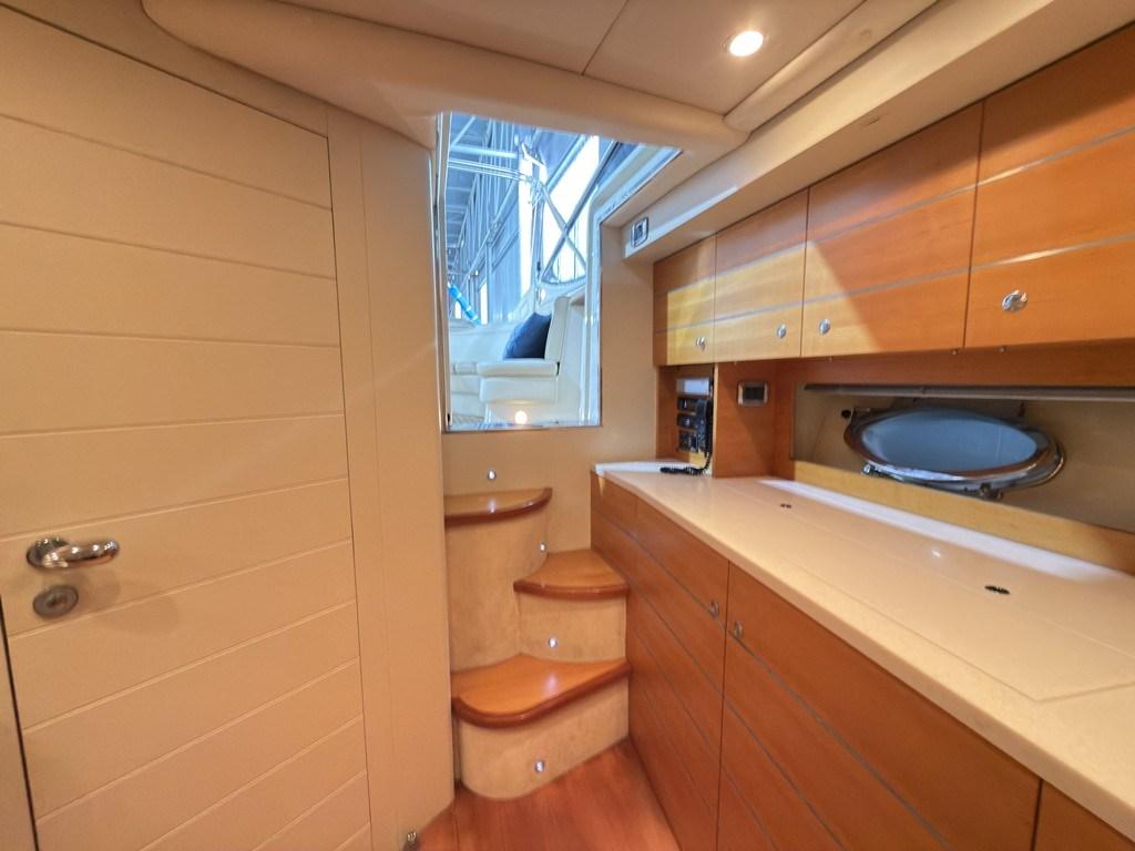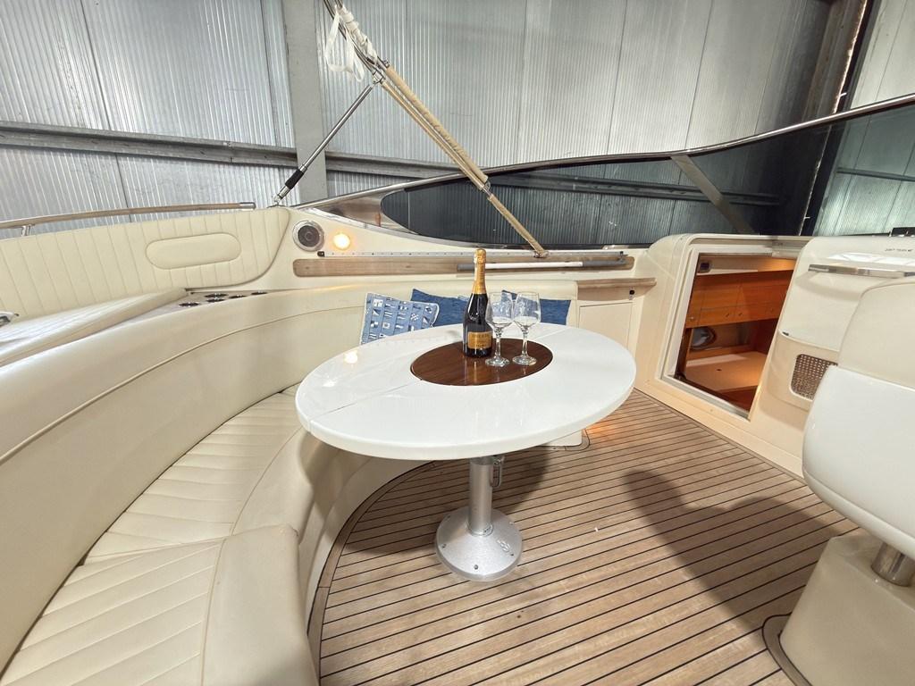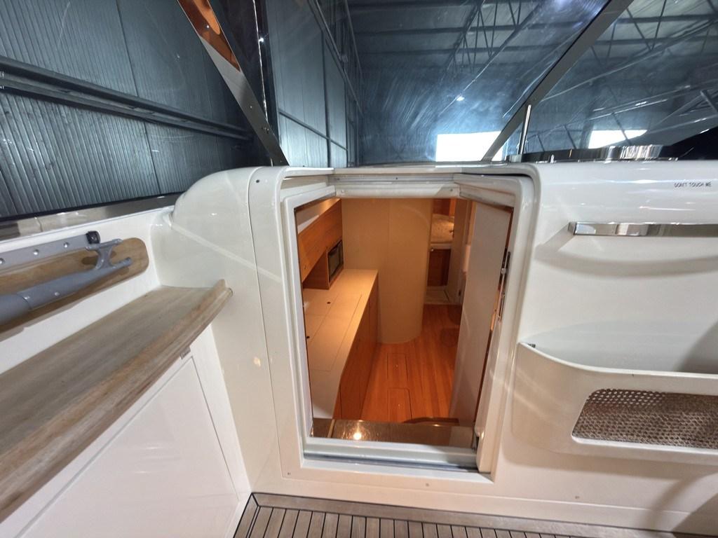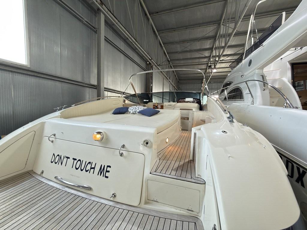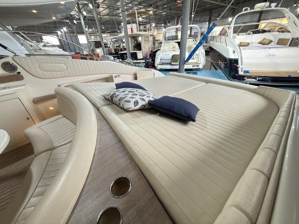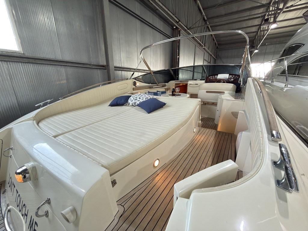 Water pressure pump, Shore power cable, Special Colour (Fascia blu nelle fiancate), Deck Shower, Electric Flaps, Washbasin in the cockpit, Courtesy Lights, Gangway (a scomparsa), Teak Cockpit, Shorepower connector, Electric Windlass.