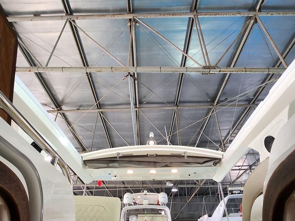 Engine Alarm, Water pressure pump, Deck Shower, Electric Flaps, Hard top, Fire Extinguishing System, Courtesy Lights, Gangway (idraulica), Platform, Entry door, Teak Cockpit, Water harbor connector system, Electric Windlass, swimming ladder.