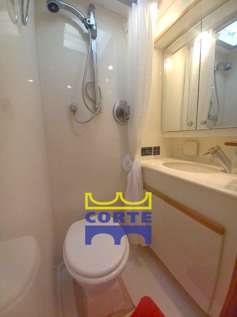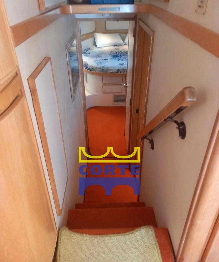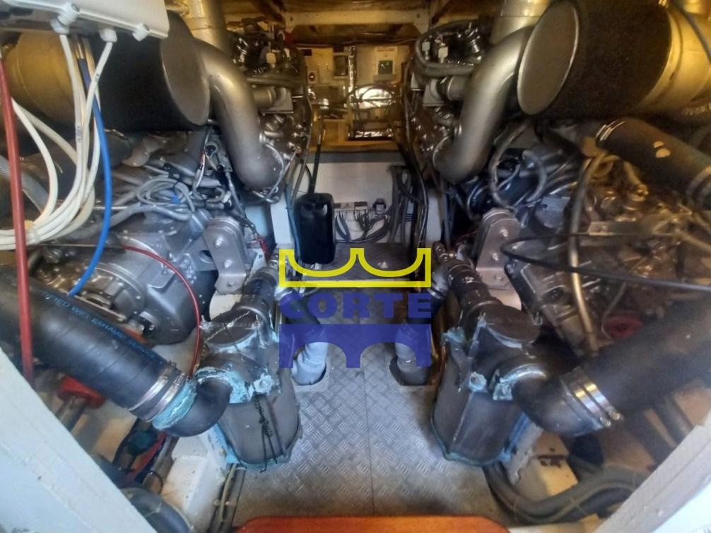 Fume/Gas Detector, Engine Alarm, Bilge Alarm, Water pressure pump, Batteries (servizi e motori (2023)), Deck Shower, Twin Steering (fly e pozzetto), Headlights fixed on the stem, Hydraulic Flaps, Fire Extinguishing System, Washbasin in the cockpit, Courtesy Lights, Underwater lights, Gangway (elettroidraulica), Platform (di poppa con piano in teak), Automatic Bilge Pump, Entry door, Teak Cockpit, Shorepower connector, Water harbor connector system, Voltage Rectifier, Electric Windlass, Manual Windlass, swimming ladder, Horn, Stern Winches, Bow Winches.