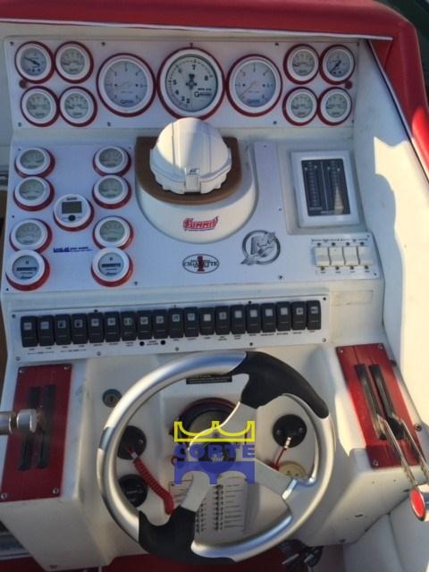 Engine Alarm, Bilge Alarm, Water pressure pump, Special Colour, Deck Shower, Headlights fixed on the stem (spiaggetta poppa), Hydraulic Flaps, Fire Extinguishing System, Flaps Indicators, Courtesy Lights, Automatic Bilge Pump, Entry door, Shorepower connector, swimming ladder.
