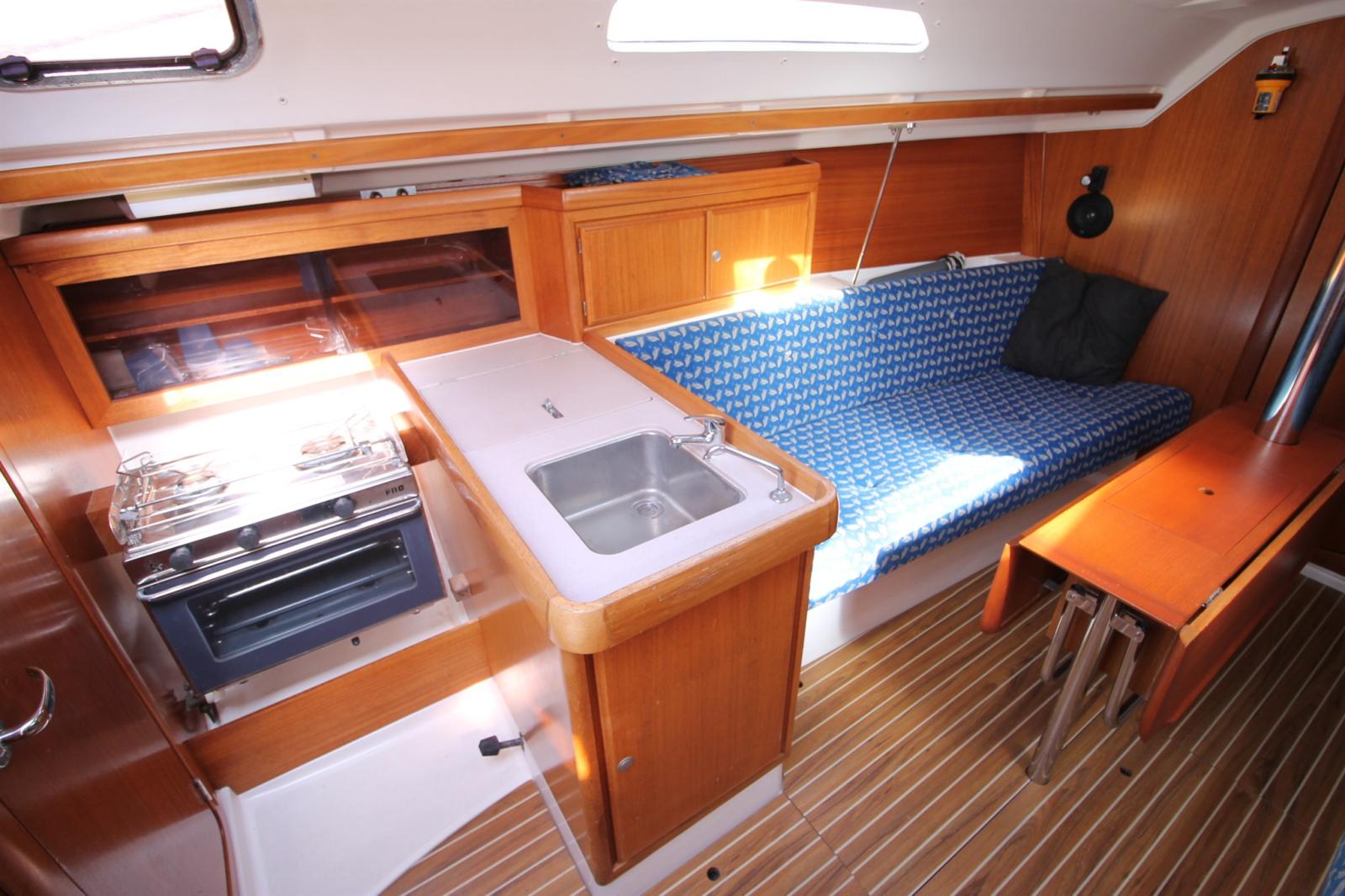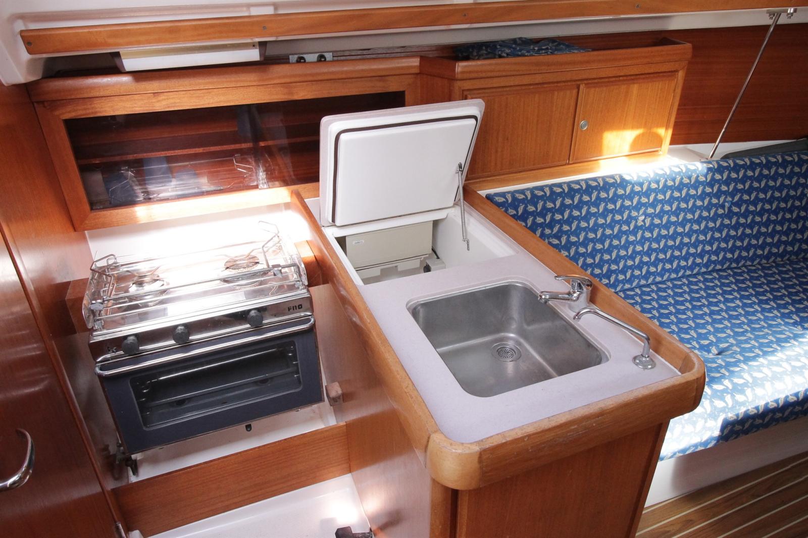 Galley, Burner ((gazinière 2 feux + four )), Mechanical Refrigerator.