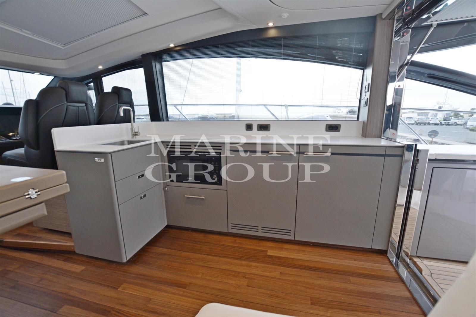 Seakeeper NG9 stabilizer - Volvo Penta joystick - Variable speed stern and bow thruster - Exterior cabinet with BBQ, fridge, ice maker and sink - Crew cabin equipment