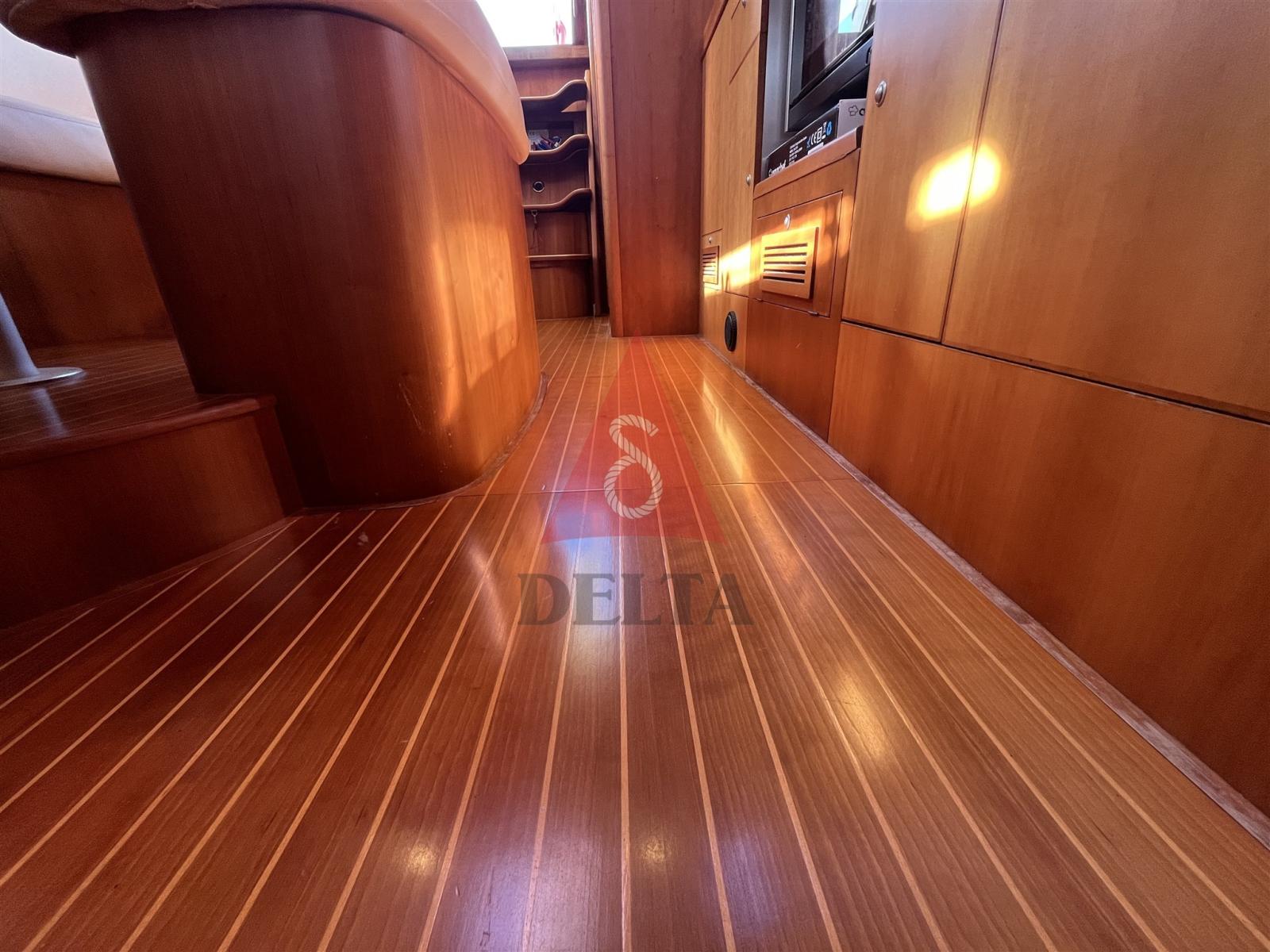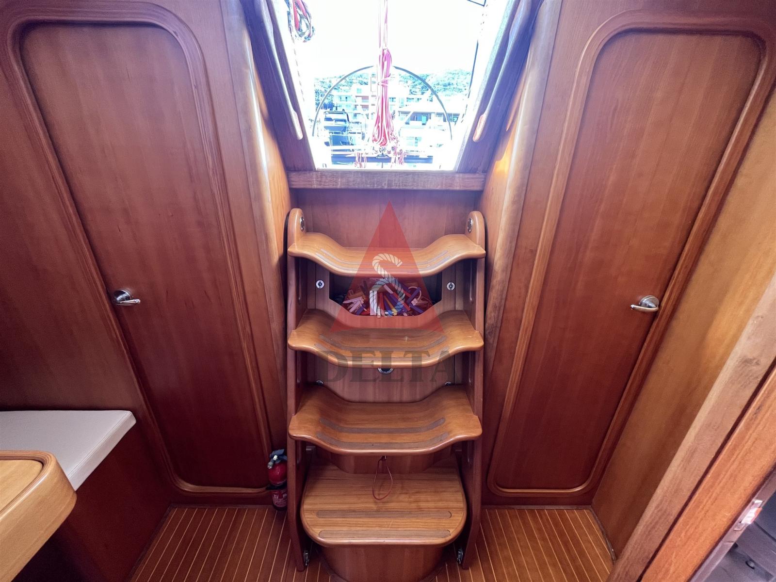 Anchor (Delta 16 Kg), Water pressure pump, 3 Batteries, Teak Side Decks (Teak da Sostituire), Battery charger (40 amp), Deck Shower (calda/fredda), Outboard Crane, Anchor Chain Washdown, Gangway (in carbonio con fuzione seduta), Manual Bilge Pump, Seawater Pump, Teak Cockpit (da sostituire), Shorepower connector, Electric Windlass (1000W con telecomando), Strand rigging, swimming ladder, Outboard Engine Support Bracket, 5 Winch (Harken 2x40.2ST - 1x44.2ST- 2x48.2ST), Winch Electric (1x44.2 ST), Windex.