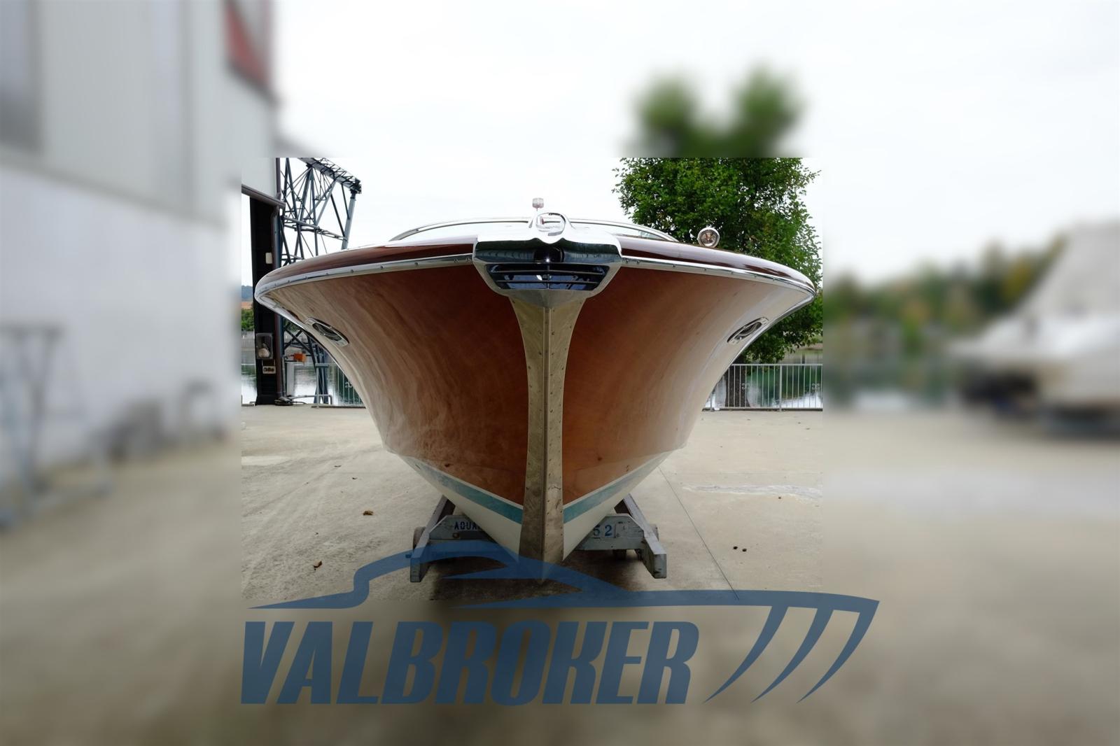 Fantastic specimen, used only fresh water. Only 269 hours of motorbike on Lake Geneva and Lake Maggiore. It has never gone to sea, it has always been put away after each use. Year of construction 1985, first put into the water in 1987. Third series with instrumentation (cleats, headlights, accessories) from the second series. Perfect engines. Serial number visible during the visit (approximately 750). FIXED PRICE. BOAT FOR CONNOISSEURS. NO NEGOTIATIONS ON THE PRICE THANKS.