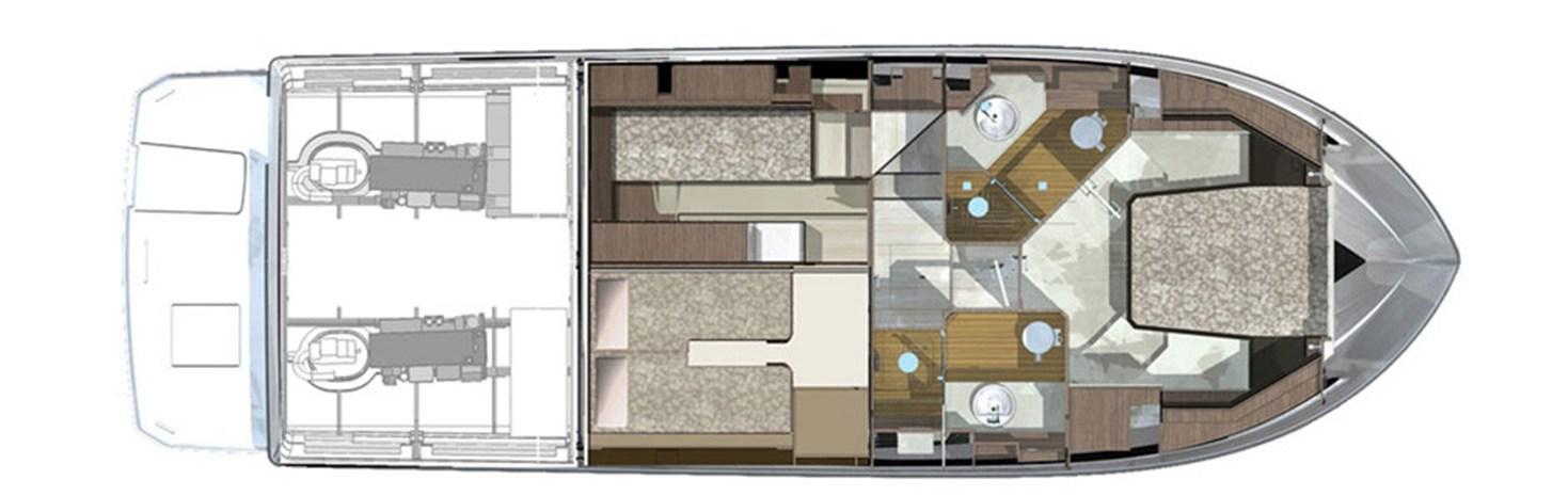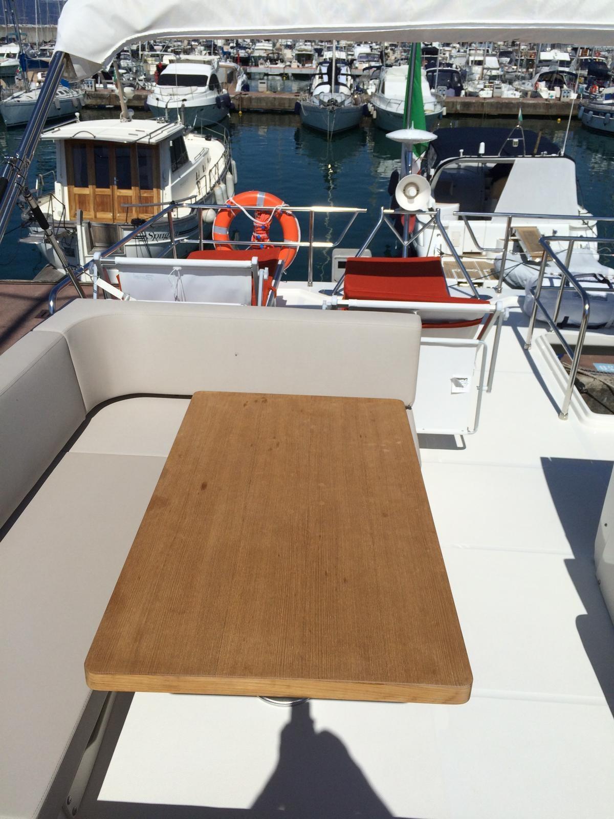 • A generous flybridge, ideal for steering the boat, cooking, sunbathing and convivial moments.