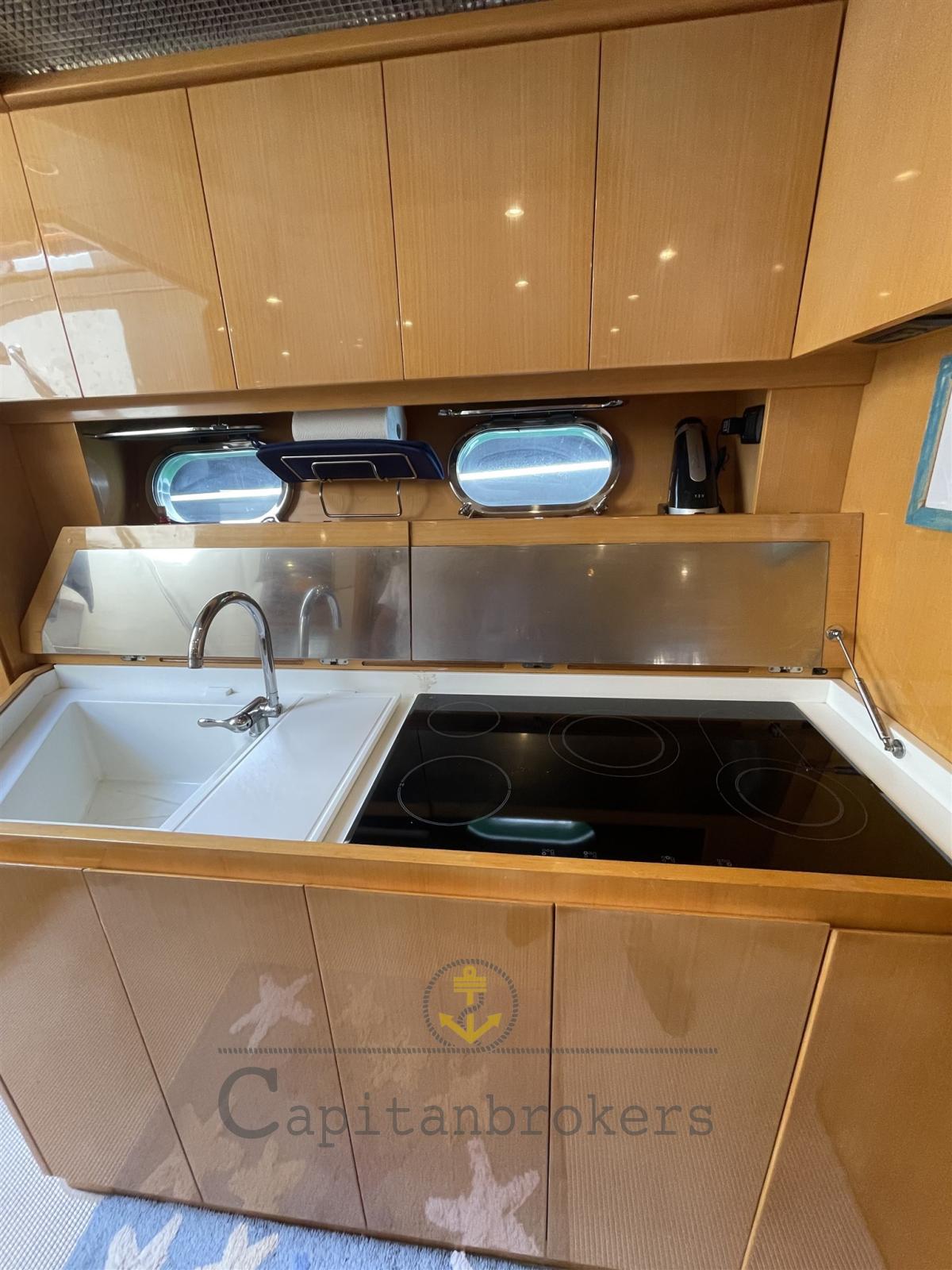 Galley (piastra a induzione 2019), Deck Refrigerator (2018 in acciaio inox , in pozzetto), Washer dryer, Electric hot plate (pozzetto).
