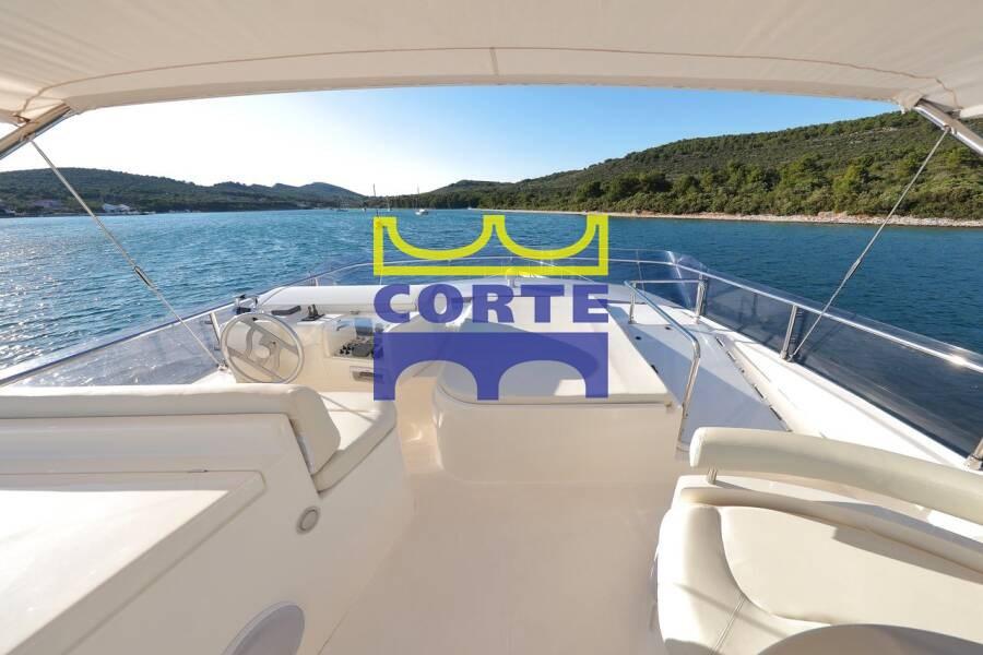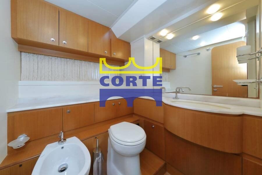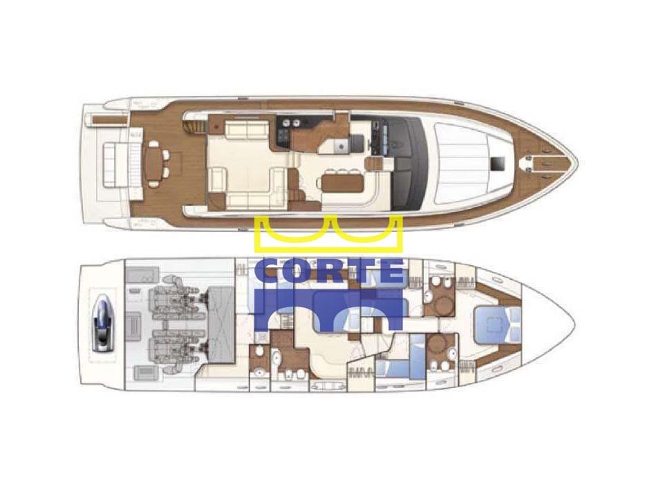 Fume/Gas Detector, Engine Alarm, Bilge Alarm, Water pressure pump, Draining System, Teak Side Decks, Deck Shower, Twin Steering, Directional Spotlight, 2 Hydraulic Flaps, Davits for tender on fly, Fire Extinguishing System, Washbasin in the cockpit, Courtesy Lights, Gangway (elettroidraulica), Platform (di poppa apribile elettricamente con gavone), Automatic Bilge Pump, Manual Bilge Pump, Entry door, Side door, Teak Cockpit, Shorepower connector, Rollbar, 2 Electric Windlass, swimming ladder, cockpit table (in legno), Horn, 2 Stern Winches, 2 Bow Winches.