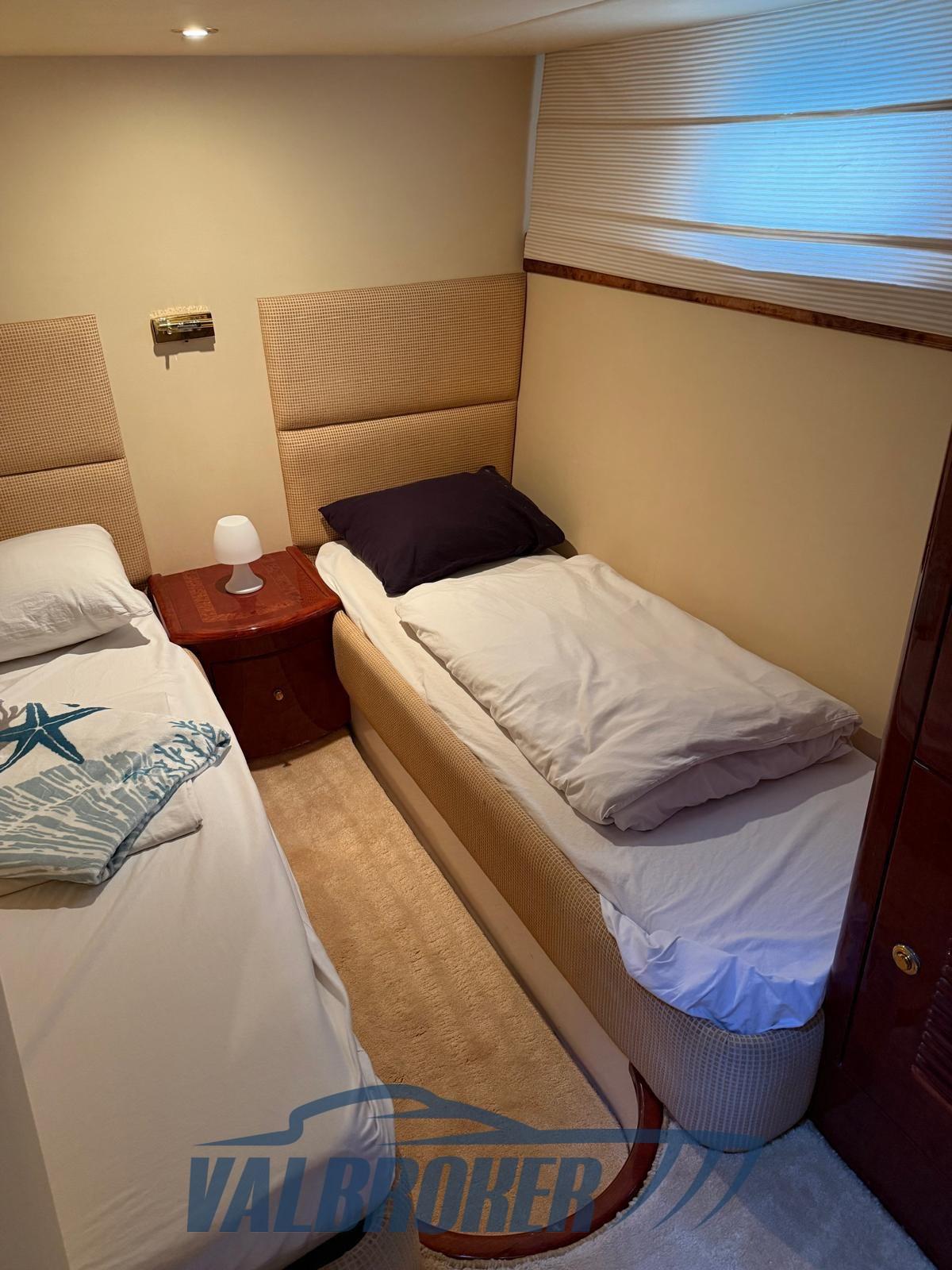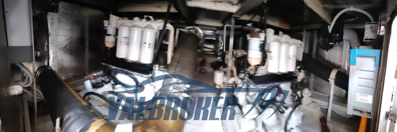 Modern flybridge with large windows. Boat equipped with two excellent Volvo Penta D9 common rail engines in shaft line. Three double cabins and crew cabin.