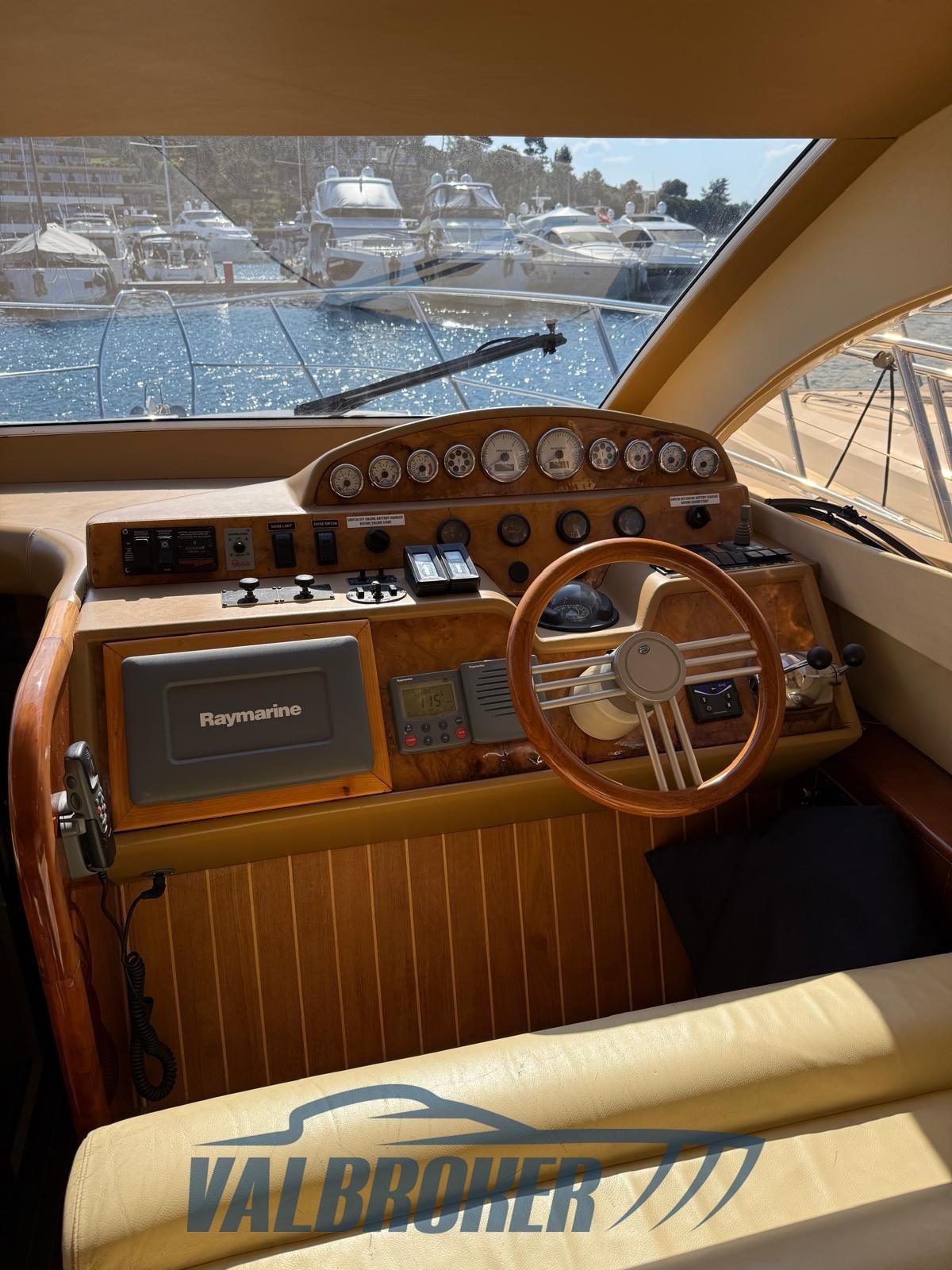 Water pressure pump, Deck Shower, Directional Spotlight (con comando a distanza), Flaps Indicators, Gangway, Platform, Entry door, Teak Cockpit, Rollbar, Electric Windlass, cockpit table (teak).