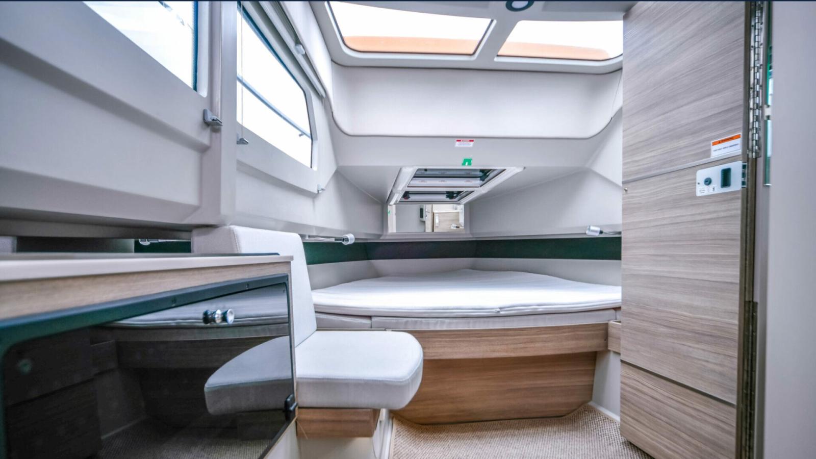 Rudder angle indicator, On-Board Computer (Mercury), Chain counter, Odometer (Simrad), Display (Simrad), Depth Sounder (Simrad), GPS (Simrad), Chartplotter (Simrad), Control panel, VHF Radio (Simrad), 2 Co-pilot seat.