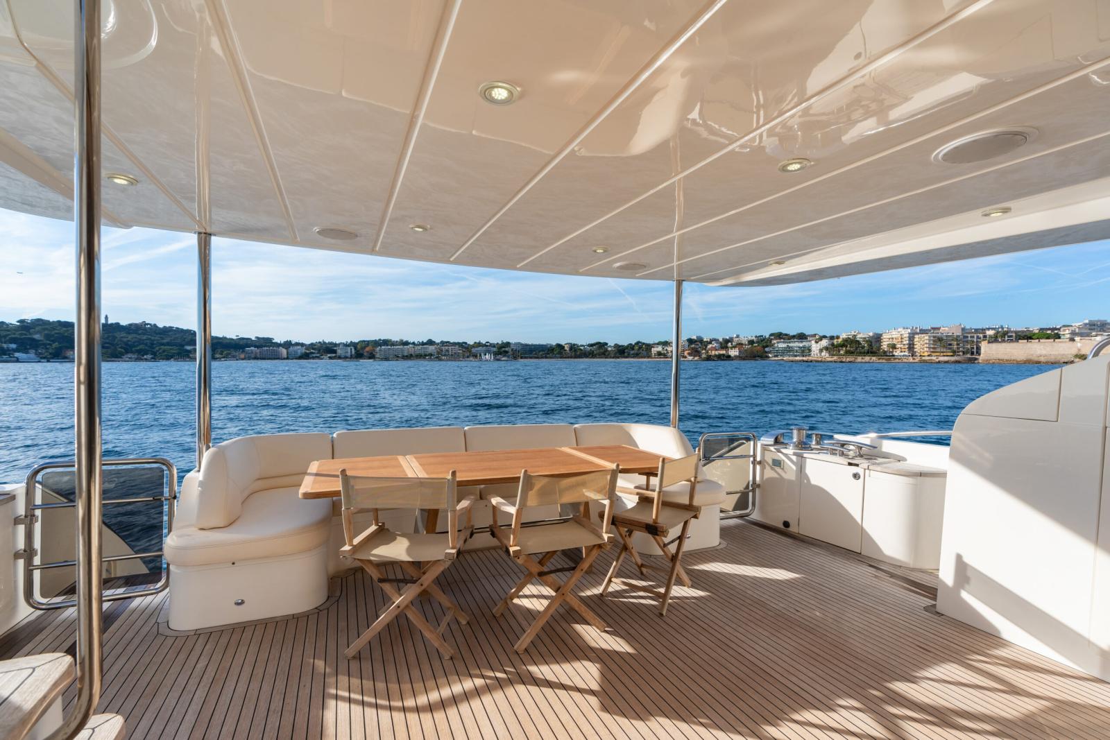 Step aboard the Princess 85, a 25.90-metre British motor yacht built by Princess Yachts (2010), available for crewed charter throughout the Mediterranean. Fitted with an active stabiliser system, she delivers outstanding comfort underway in all sea conditions — perfect for a private yacht cruise along the French Riviera, from Monaco to Portofino, or across to Corsica and Sardinia.