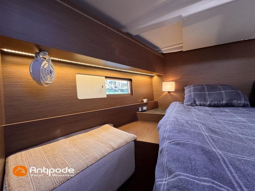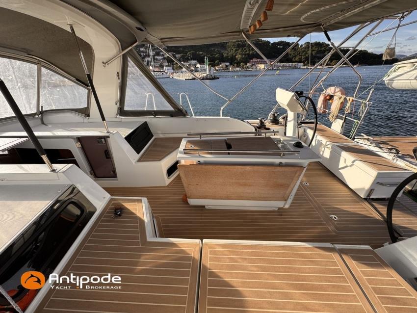 OCEANIS 51.1, 2023, first hand, never chartered, no accident, Yanmar 4JH110, 110 hp (350 hrs), Bow thruster, Family Version, Woodwork - Alpi Noyer, Interior layout version 1 forward cabin, 2 aft cabins, Crew cabin in front peak(without toilets), Saloon table convertible in double bed, Offshore pack incl. large wheel stations, Upwind and downwind package, 2 electric roof winches for adjustment and sail handling - Harken 46, GRP cockpit arch for main sail sheet system, Main sail sheet - German system, Deck passageway - Flexiteek, Slatted cockpit floor - Flexiteek, Cockpit seats - Flexiteek, Cockpit table (wood) with 2 folding leaves, liferaft storage, Wheel steering system, 2 wheels, XXL 900 mn, leather covered, Fully opening transom, convertible to bathing platform, electrically operated, Cockpit sprayhood, Cockpit bimini top, Cockpit seat and back cushions , Sun bathing mastresses, Cockpit electric windlass remote control, Opening life lines port and starboard, S/S bow protection, Aft stainless steel arch, including davits and supports for solar panels, Deck stepped classic mast , Semi full batten main sail, Main sail lazy bag, Furling genoa 110 % (in replacement of standard self tacking jib), Raymarine in board autopilot - P705, Autopilot remote control, 2 cockpit displays - Raymarine 170 S, 2 X GPS and chartplotter (cockpit) - Raymarine Axiom 9, AIS Transponder CLASS B (emission and reception) - Raymarine AIS 700, VHF at chart table - Raymarine RAY 73, Dual VHF station RAY 90, FUSION audio sound system , Fridge unit 12 V (top opening door), Fridge unit 12 V (front opening door) - 130 l, Freezer 12 V - 85 l, Cockpit gaz plancha, Washing machine and dryer 220 V, 220 V shore power + battery charger - Cristec 60 amp, Engine alternator 125 amp, Service batteries - 2 X AGM 140 amp, Extra service batteries - 3 X AGM 100 amp, 12 V to 220 V Inverter - 2000 VA, USB sockets - X 6 , WEBASTO heating system (2 units), Cabins and saloon fans, Electric toilets X 2 (fresh and sea water), Solar panels - 2 X 375 W, Extra fresh water tanks 2 X 165 liters (730 liters in total), Extra fuel tank 200 liters (400 liters in total), Leds navigation lights, Dinghy - 3D TENDER, Outboard engine - Yamaha 15, Located French Mediterranean. For more information or to make an appointment for a visit, contact : Jérôme Le Joubioux +33 6 07 45 71 73 - jerome@antipode-yachts.com