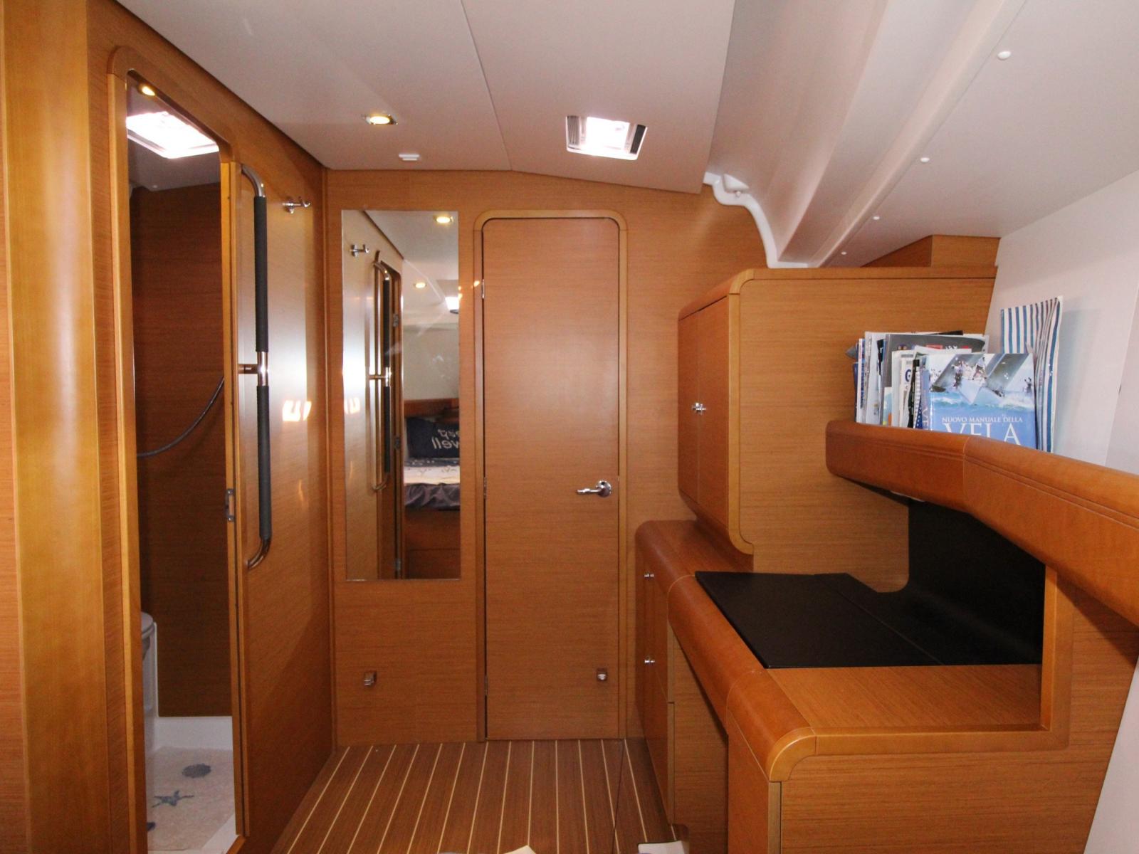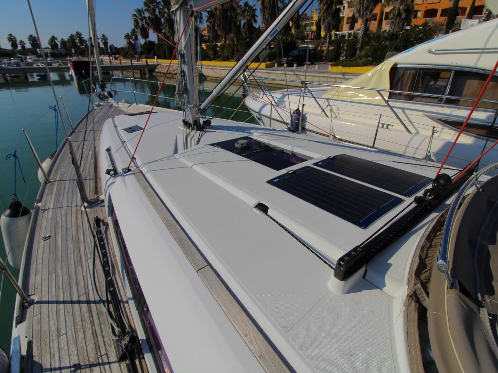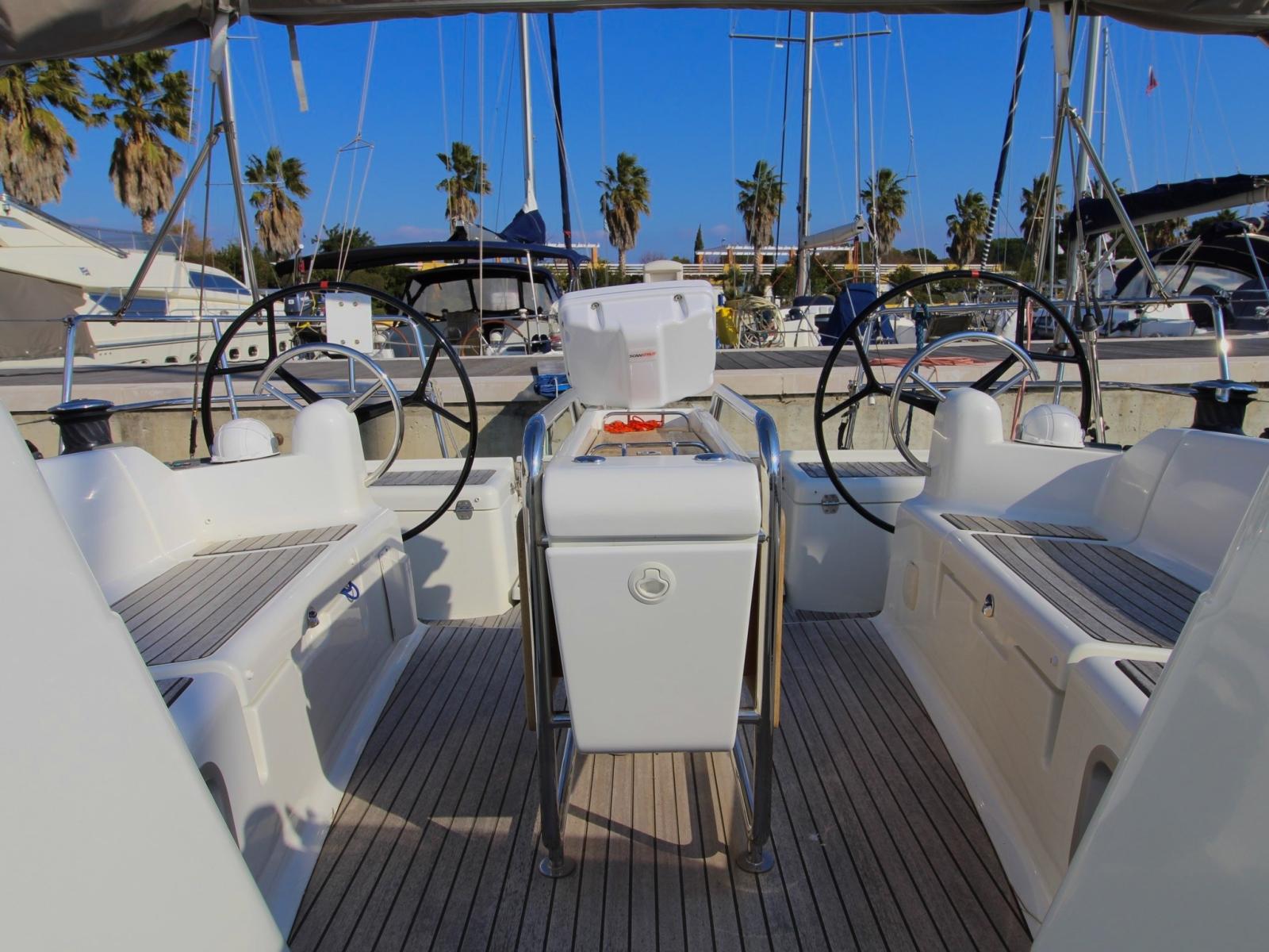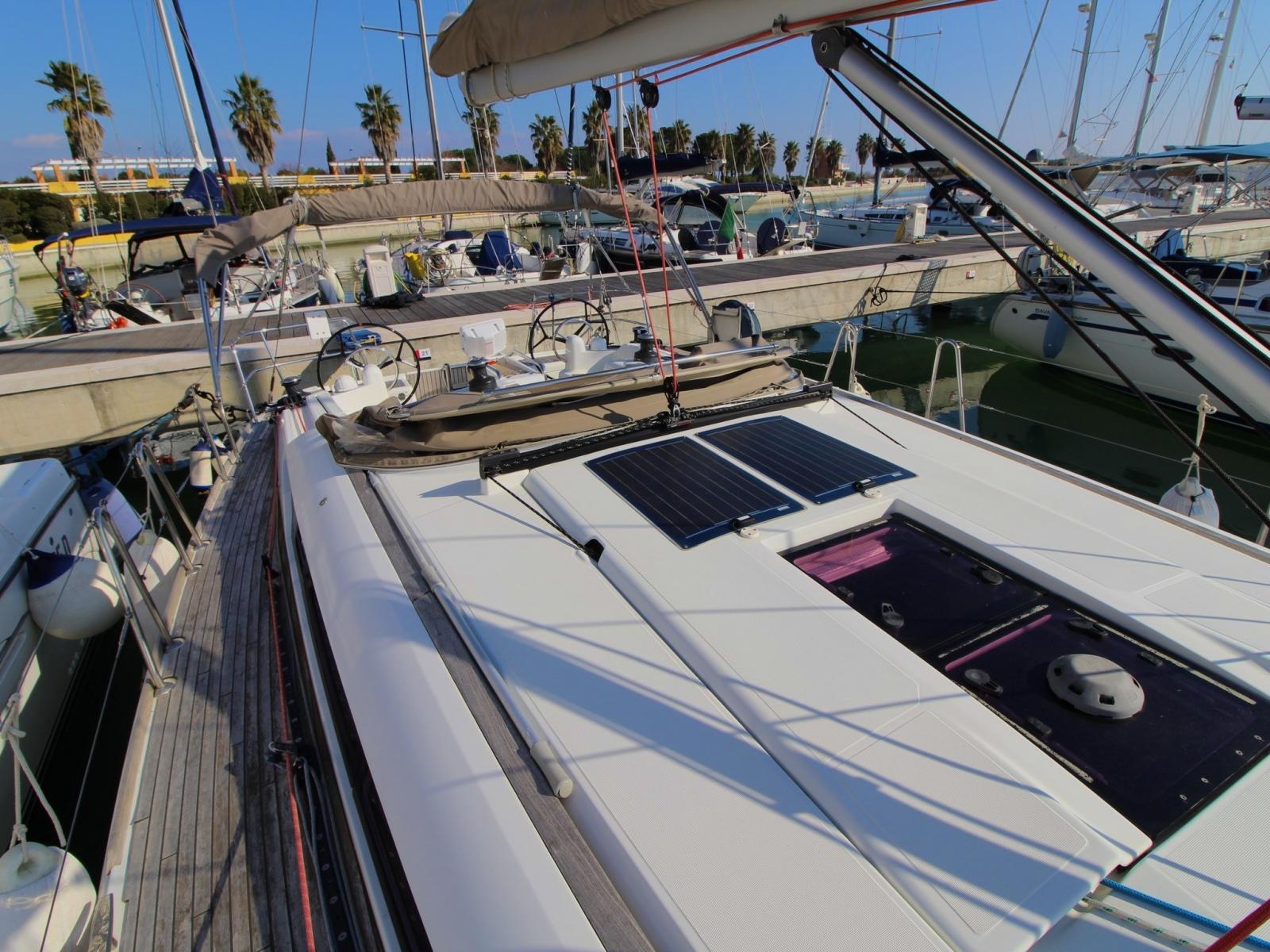 Anchor (DELTA), Water pressure pump, 5 Batteries (NEPTUNE AGM 125 AH (1 MOTORE + 3 SERVIZI + 1 ELICA DI PRUA) 2020), Teak Side Decks, Shore power cable, Deck Shower, Twin Steering (CARBON), Fenders, Gangway (CARBONIO), Platform, Manual Bilge Pump, Entry door, Teak Cockpit, Shorepower connector, Electric Windlass (CON CONTAMETRI), Strand rigging, cockpit table, Living Room Foldable Table, 3 Winch (HARKEN), Winch Electric (HARKEN).