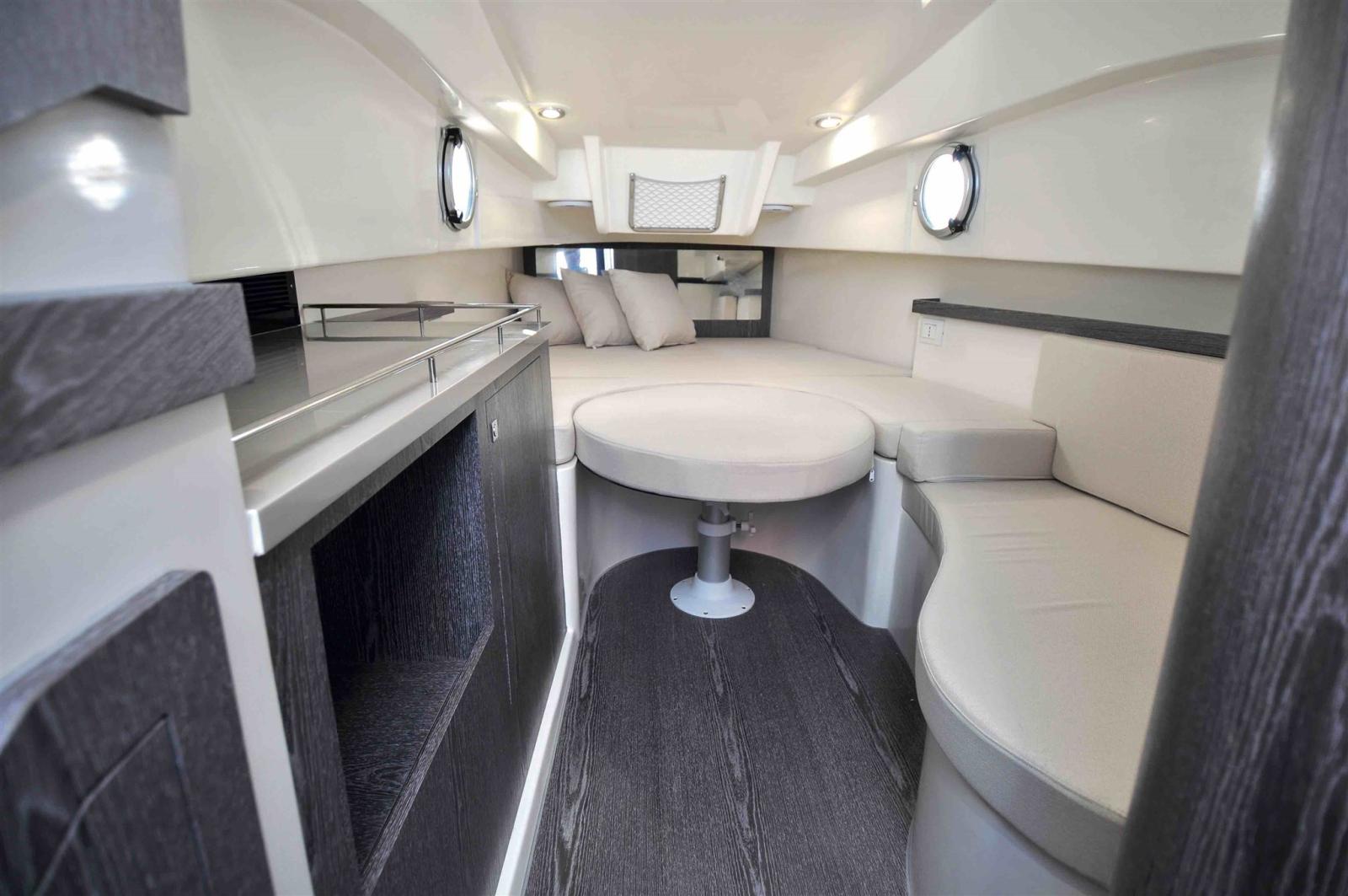 Complete Luxury cabin set-up with separate bathroom with shower and toilet, furnishings, furniture and cushions