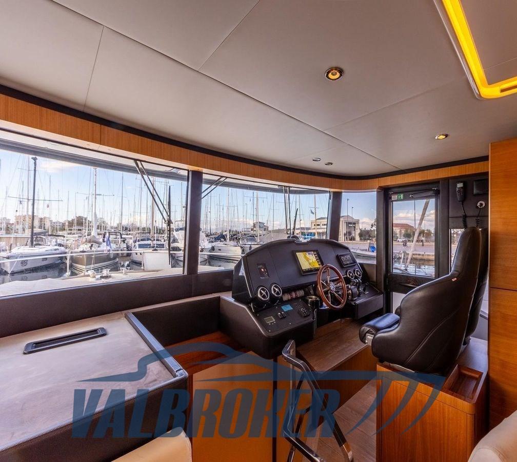 Rudder angle indicator, Chain counter, GPS (Garmin), Joystick, VHF Radio (Raymarine), Co-pilot seat.